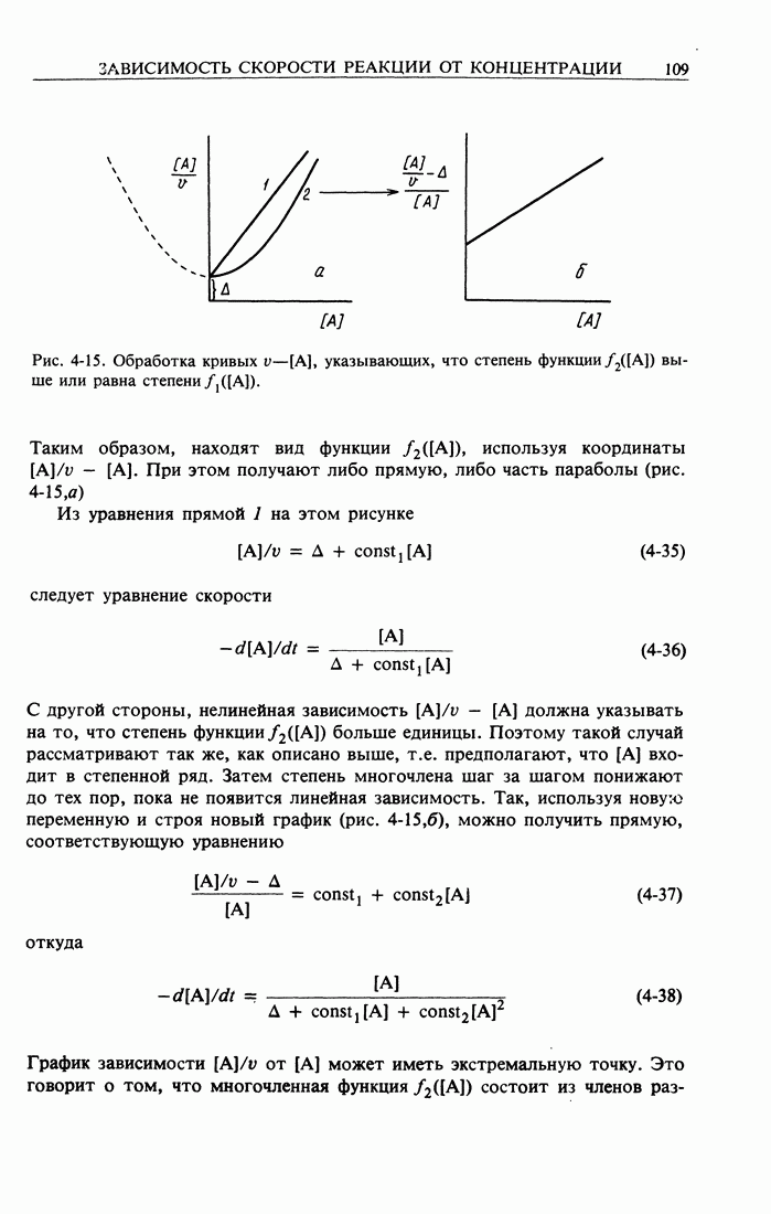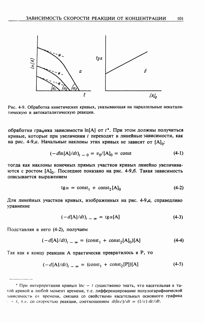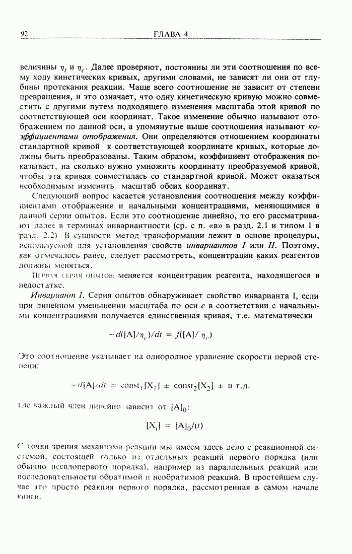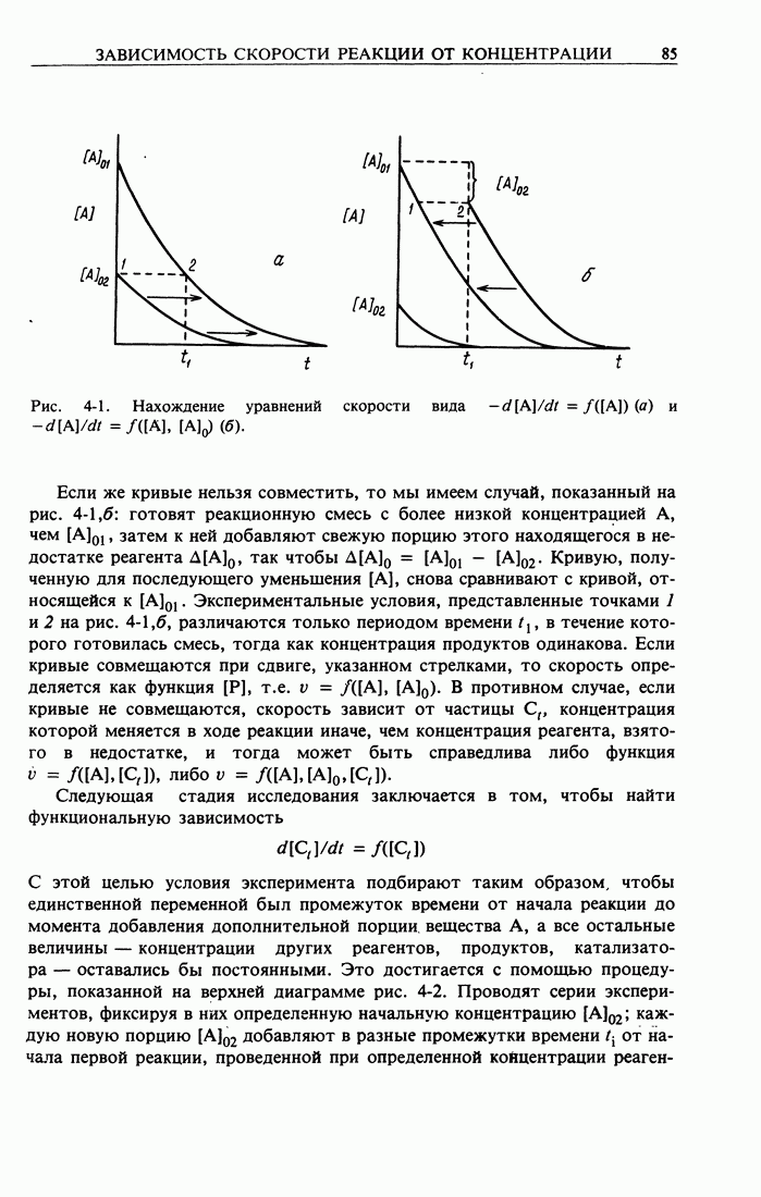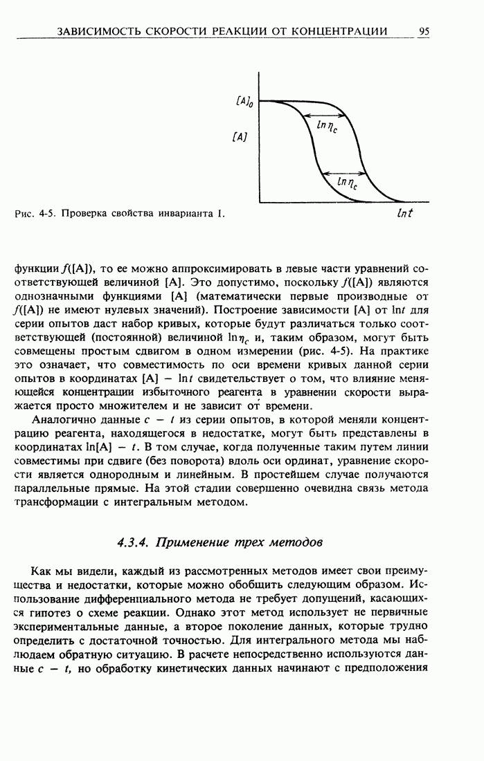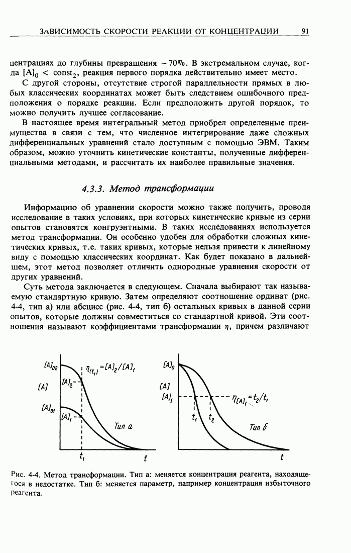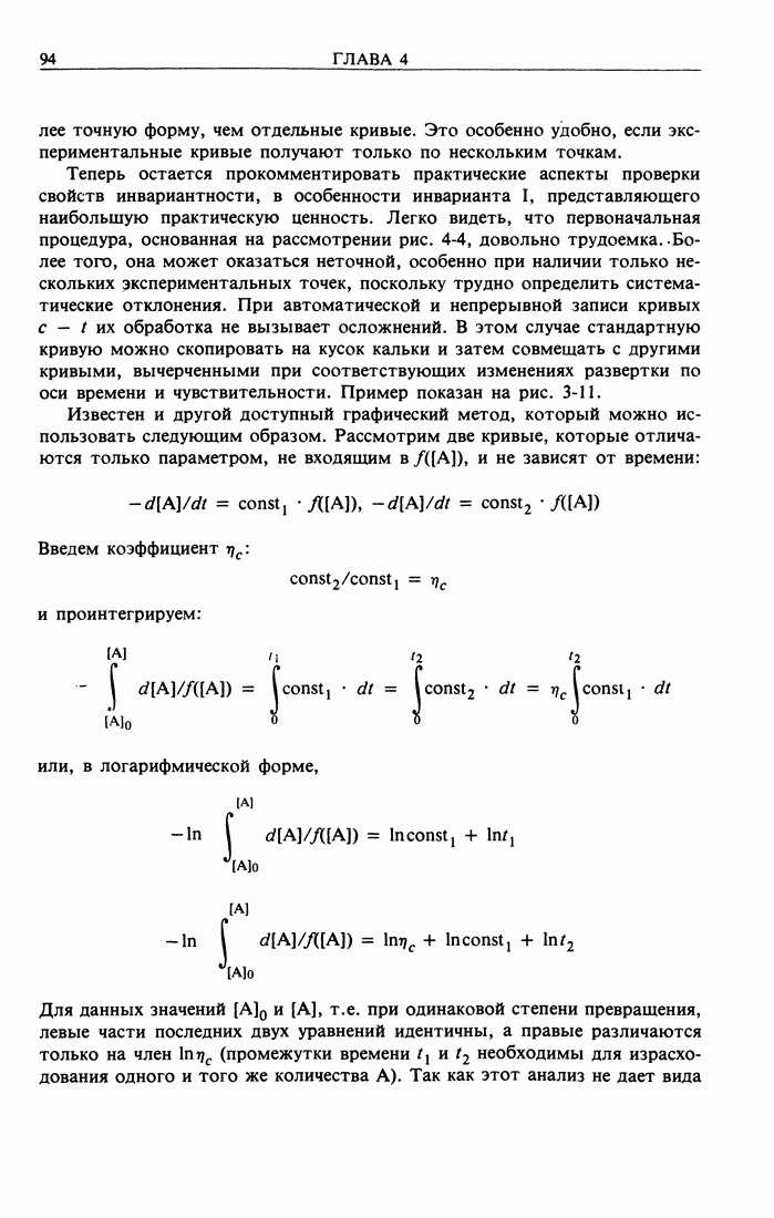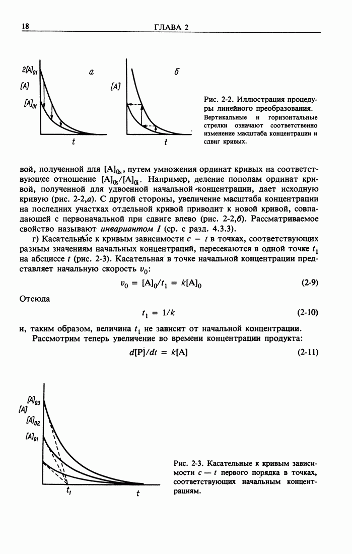 Рис. 2-2. Иллюстрация процедуры линейного преобразования. Вертикальные и горизонтальные стрелки означают соответственно изменение масштаба концентрации и сдвиг кривых. кривой, полученной для г) Касательное к кривым зависимости