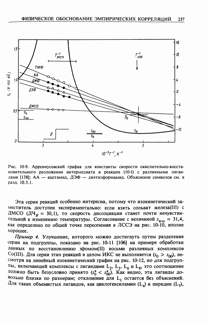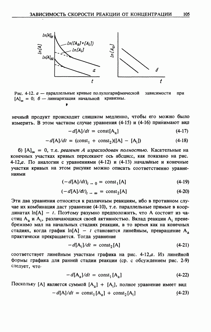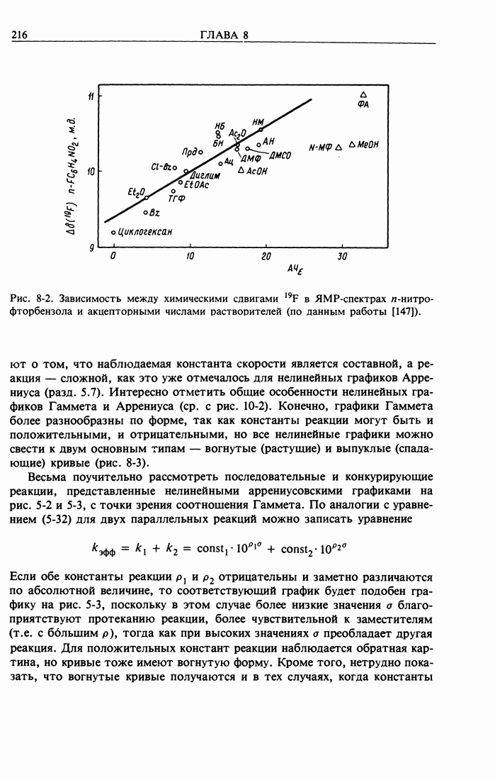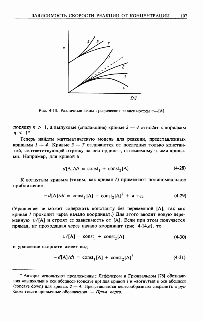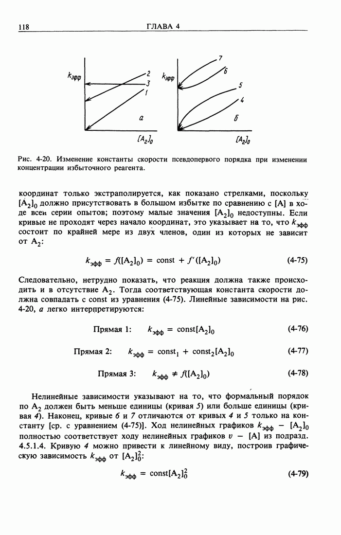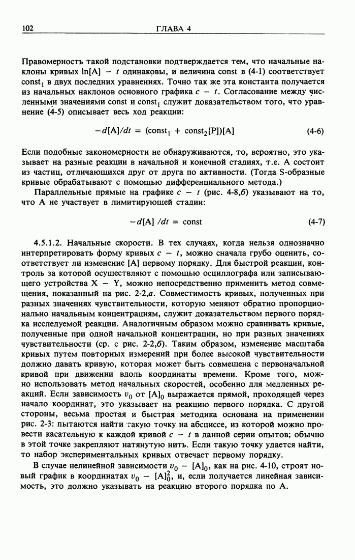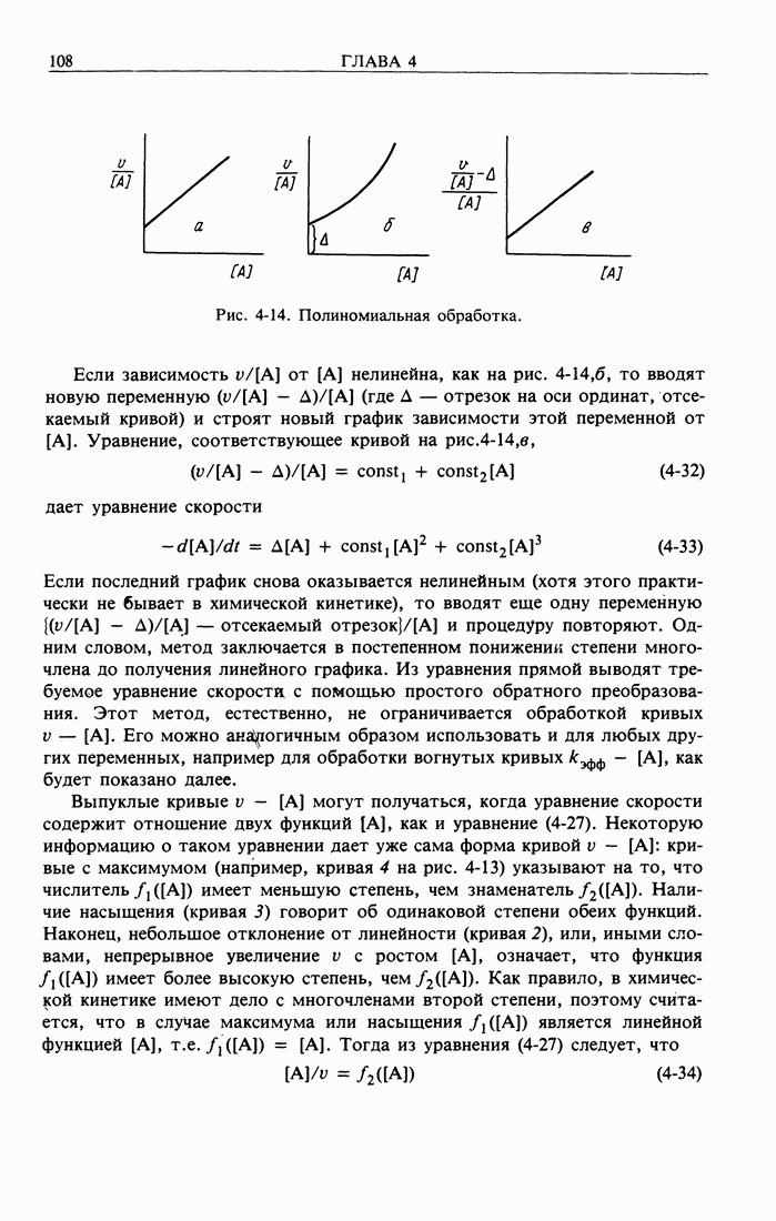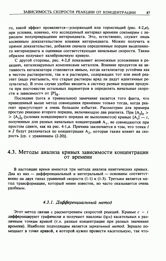 Рис. 2-2. Иллюстрация процедуры линейного преобразования. Вертикальные и горизонтальные стрелки означают соответственно изменение масштаба концентрации и сдвиг кривых. кривой, полученной для г) Касательное к кривым зависимости