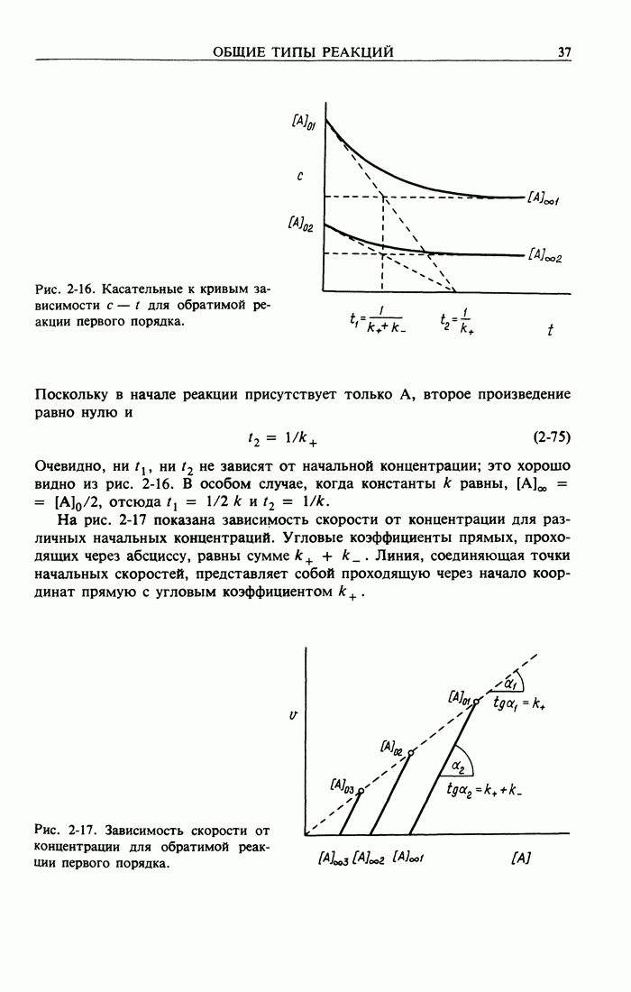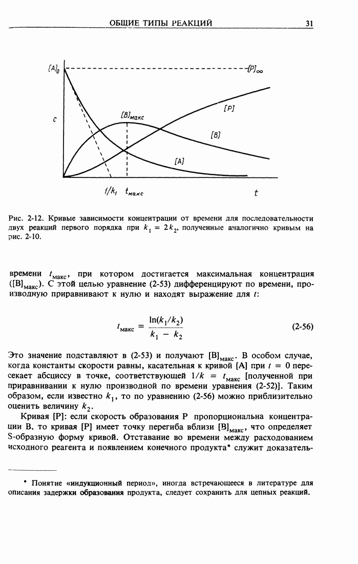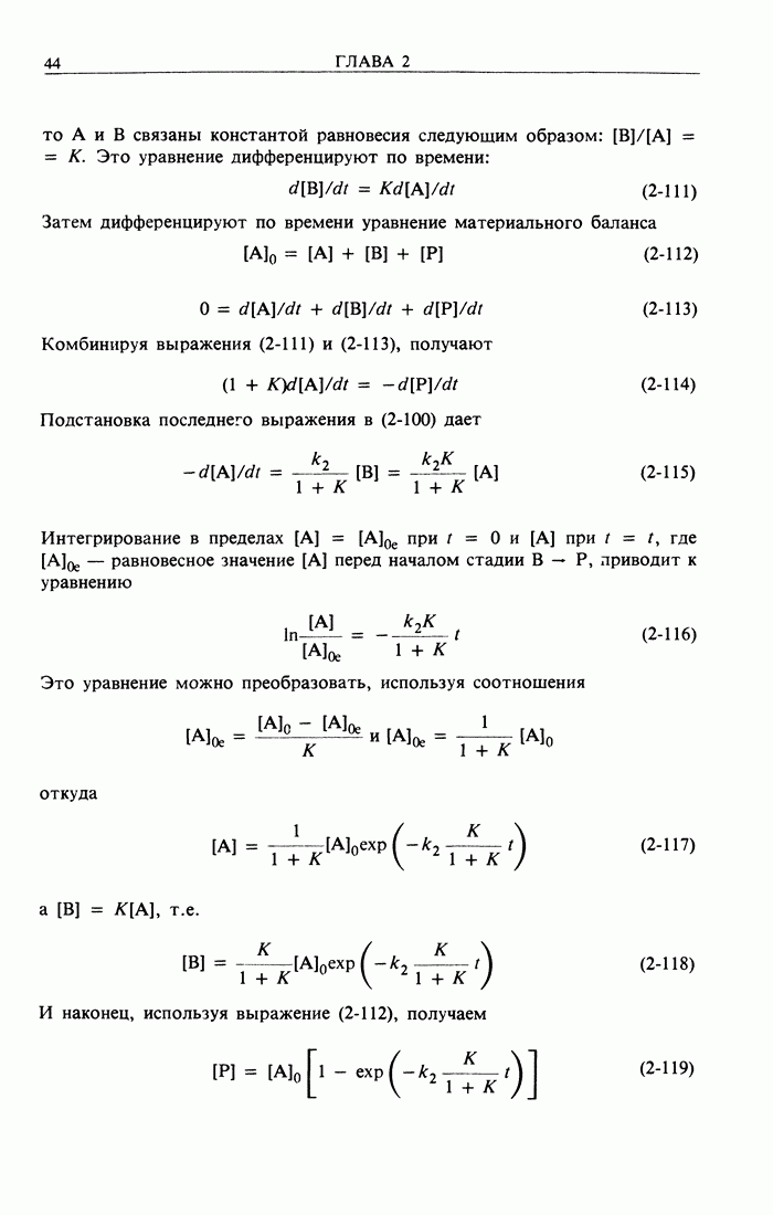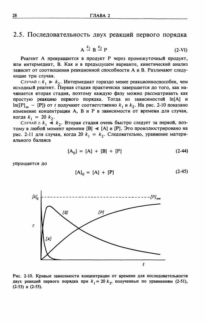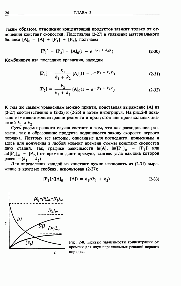 Рис. 2-4. Изменение во времени концентраций Интегральнее уравнение нетрудно получить из уравнения