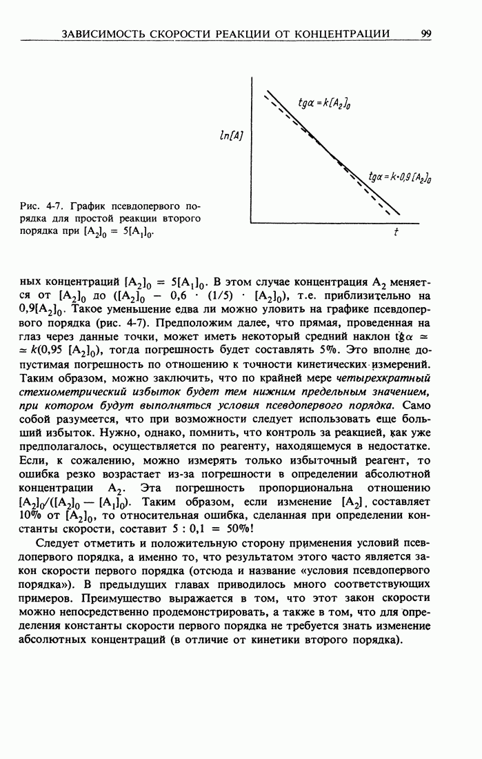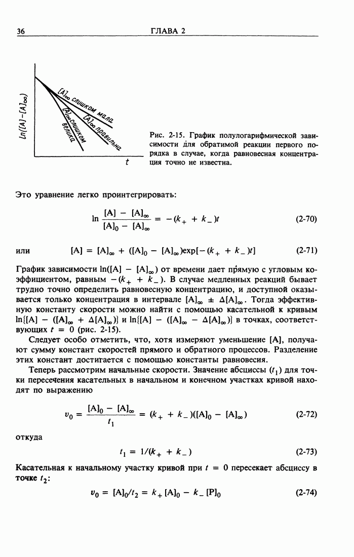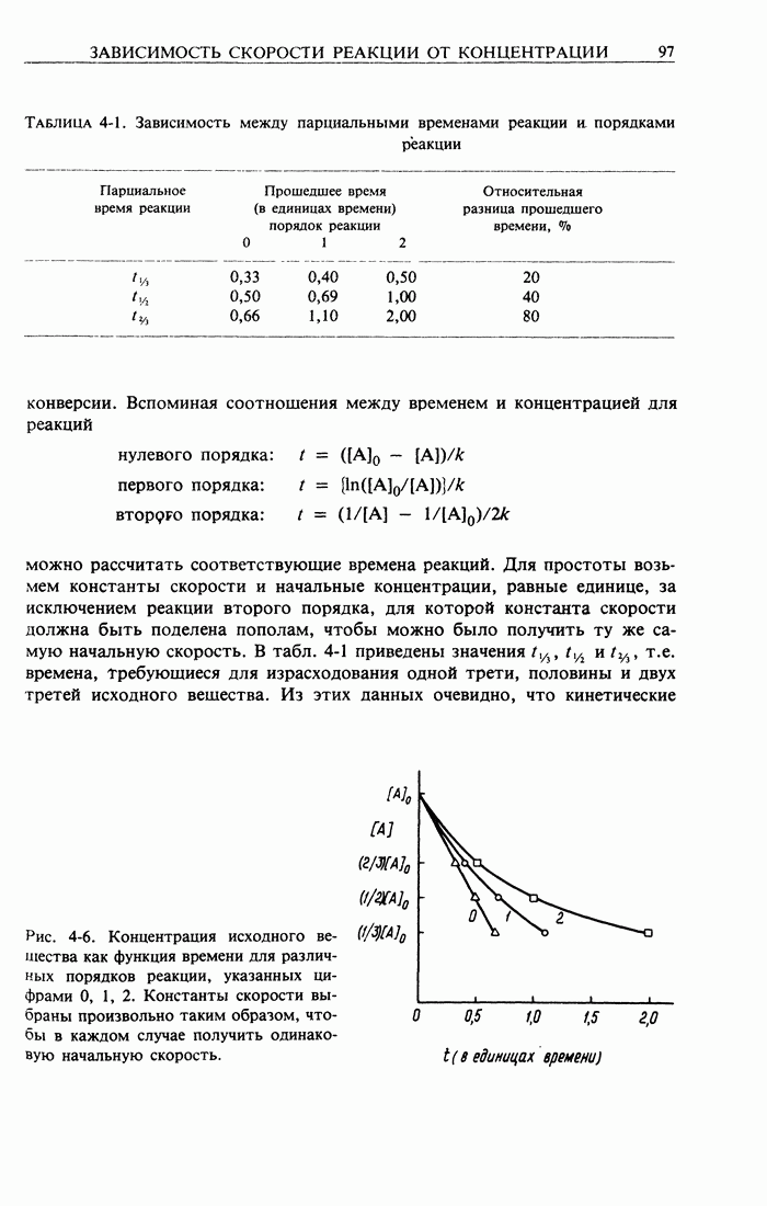 Рис. 2-1. График реакции первого порядка. Таким образом, для оценки к необязательно знать начальную концентрацию. Далее, кинетическая кривая первого порядка инвариантна при линейном преобразовании концентрации. Это видно из простой операции замещения