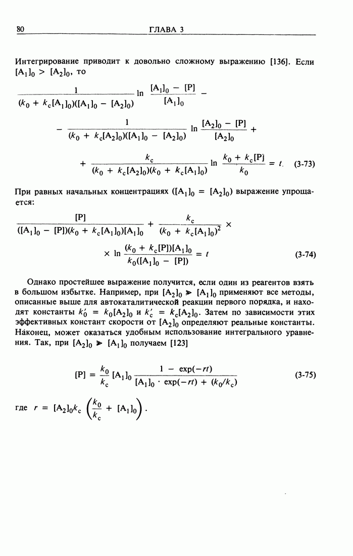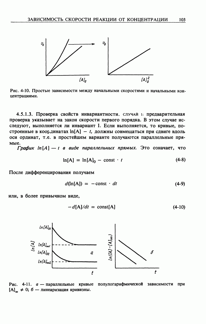 и затем сократить. Это означает, что кинетическое уравнение остается неизменным при умножении а) Для оценки к вместо концентрации можно использовать любую другую, пропорциональную ей величину, например спектральную поглощательную способность, электропроводность, объем раствора, пошедшего на титрование, и т.п. Логарифм такой величины также меняется линейно во времени, и наклон прямой соответствует - k. б) Согласно уравнению