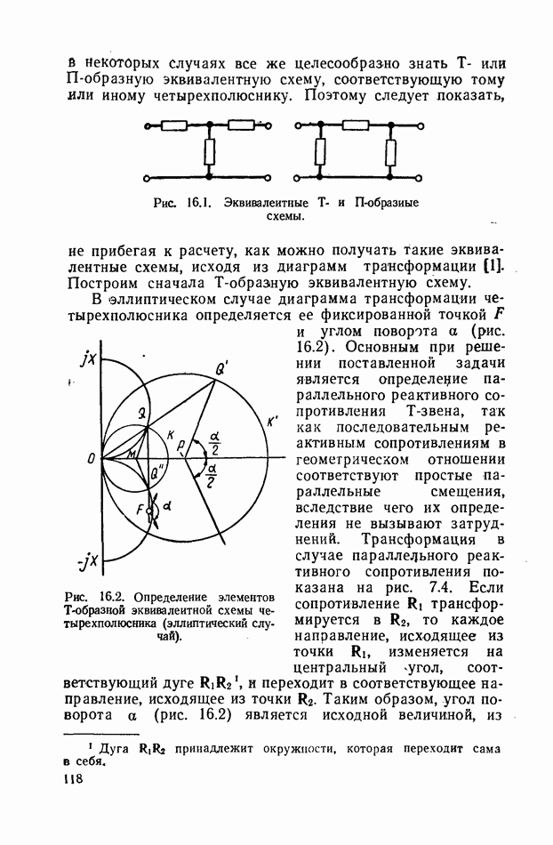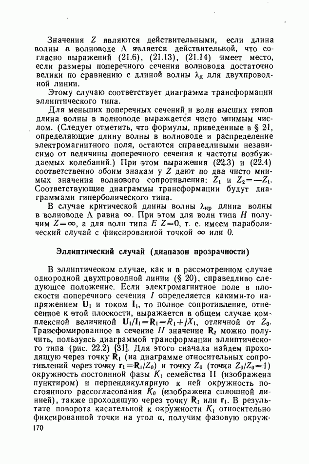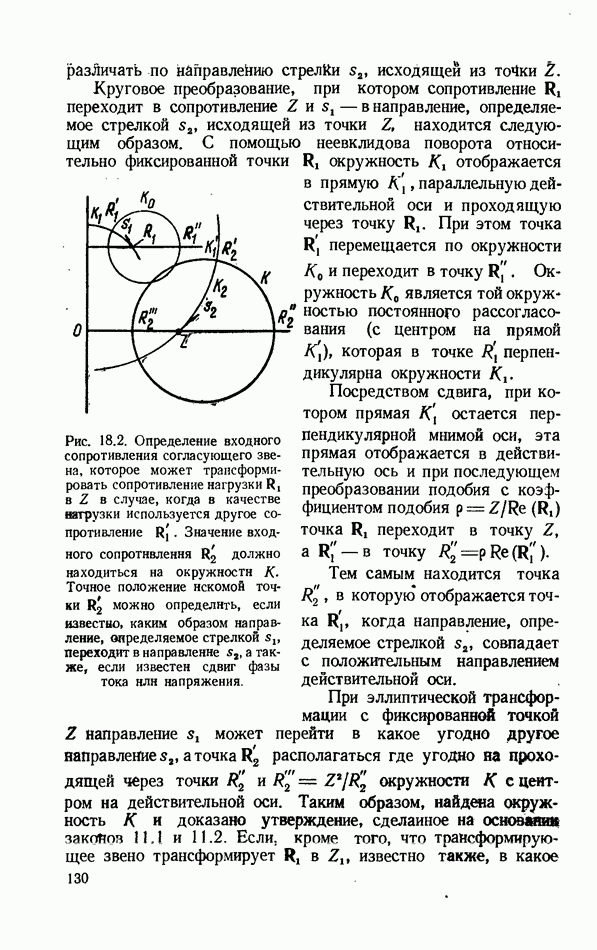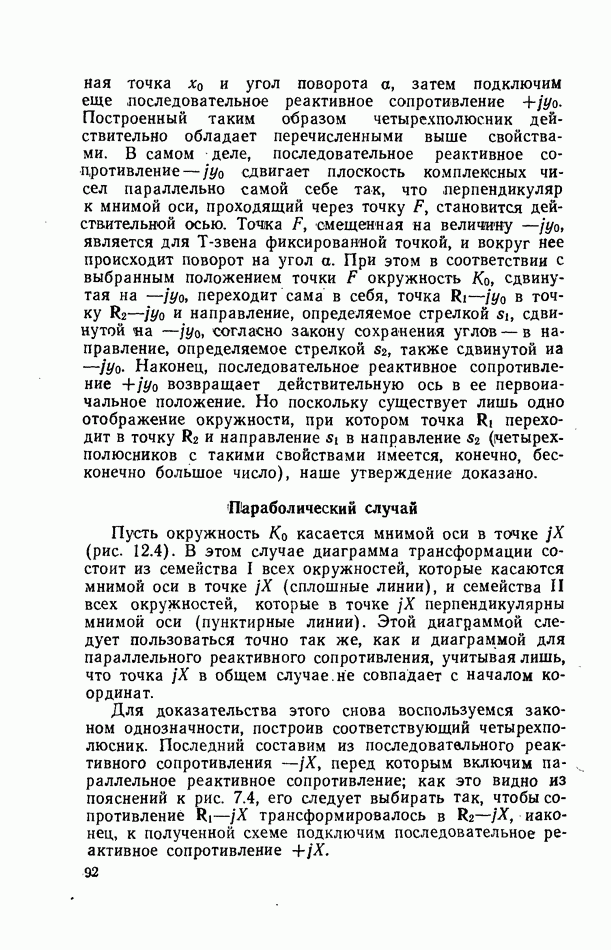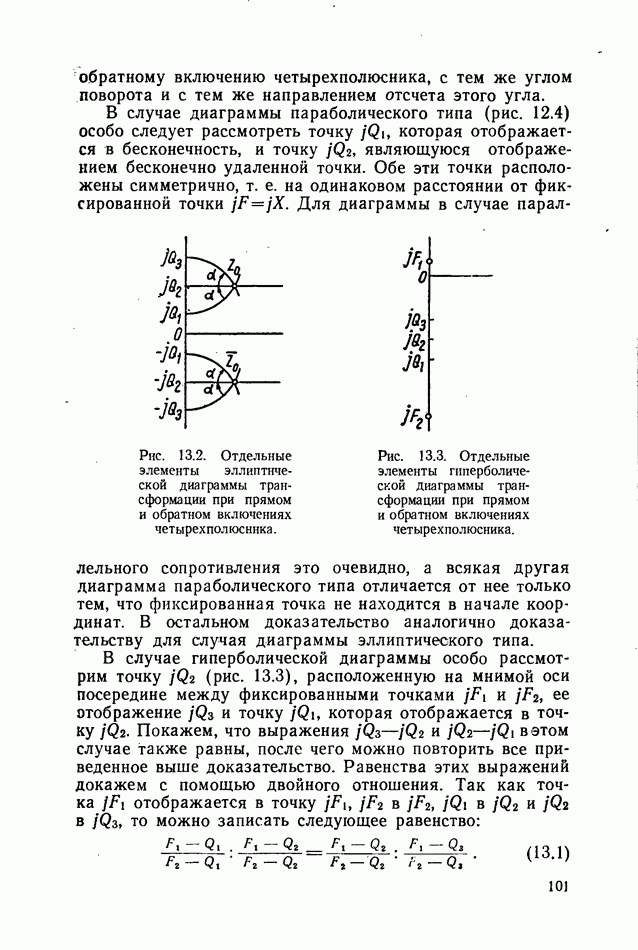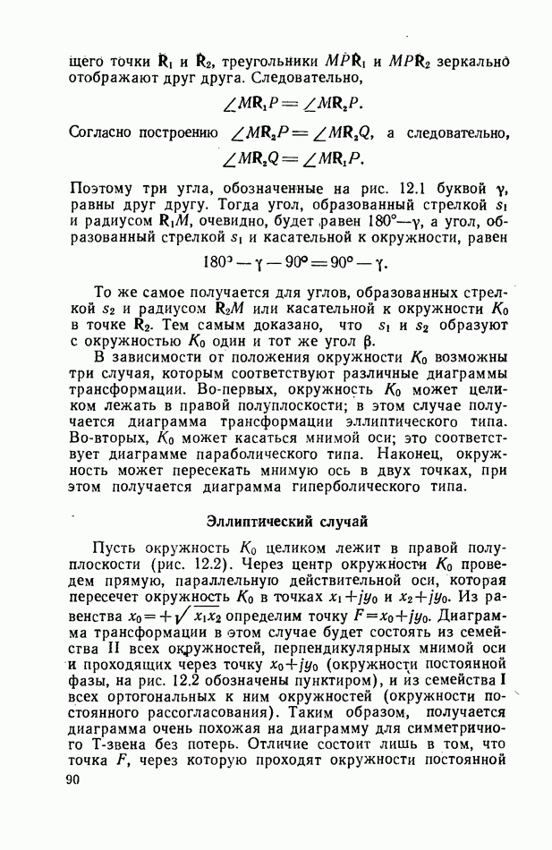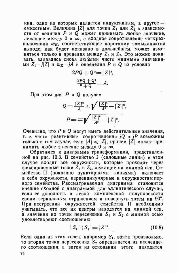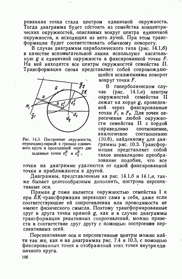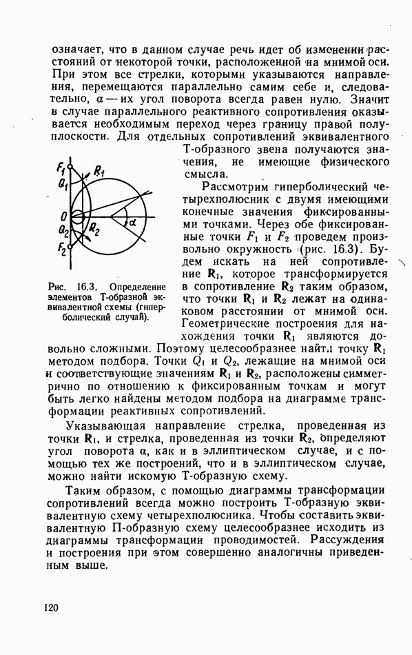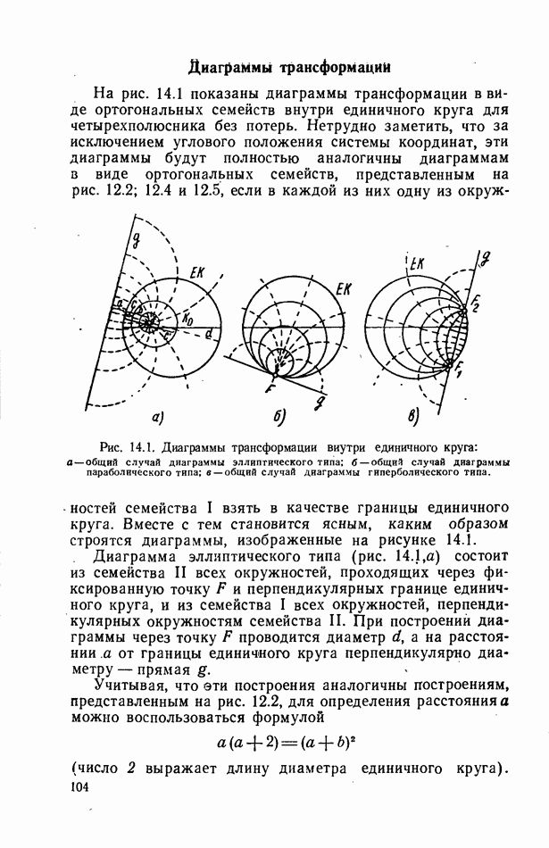четырехполюсника на данной частоте. Для определения трансформирующих свойств четырехполюсника нет необходимости, конечно, каждый раз строить всю диаграмму, а достаточно в эллиптическом случае, например, задать фиксированную точку и угол поворота, а в параболическом и гиперболическом случаях построить фиксированные точки и диаграмму трансформации реактивных сопротивлений