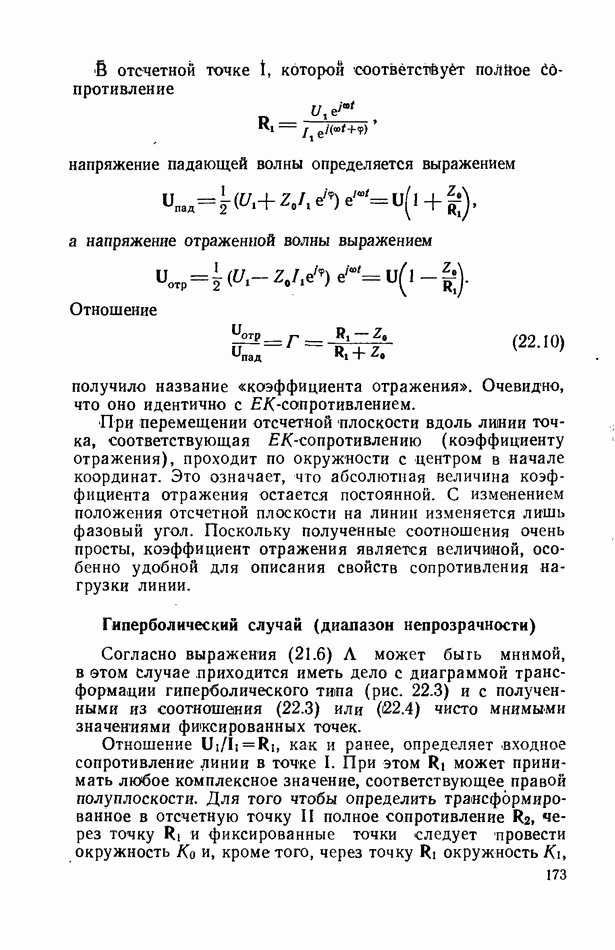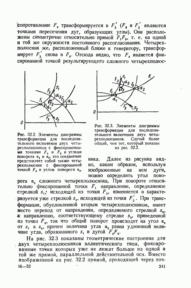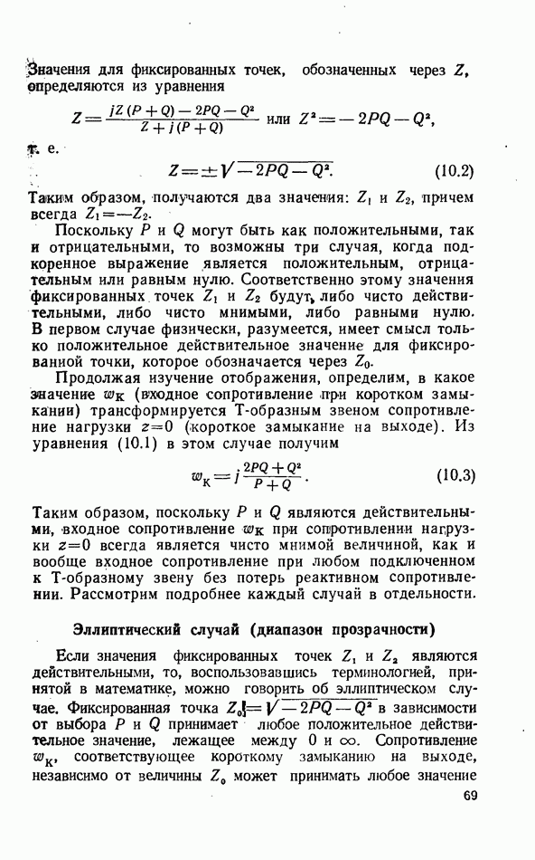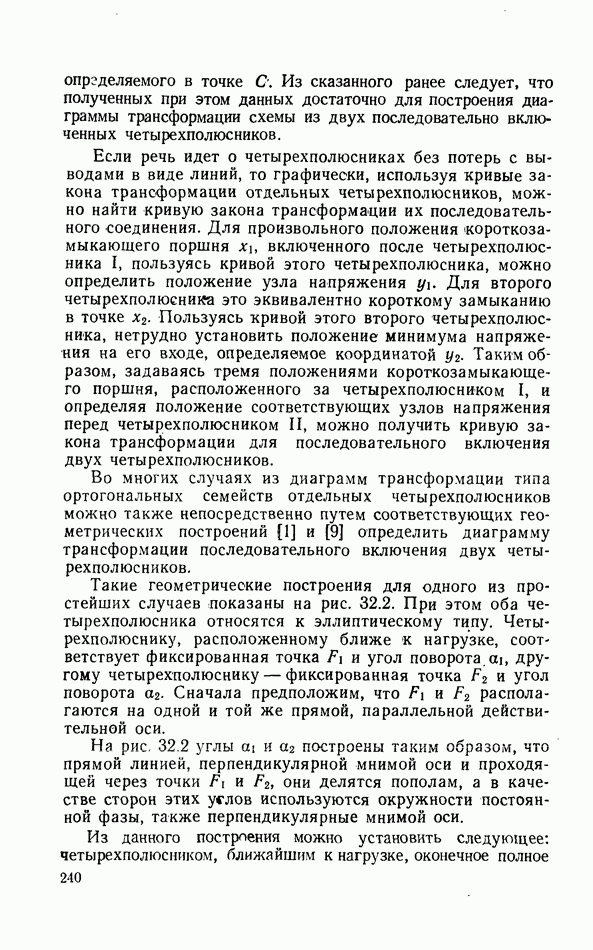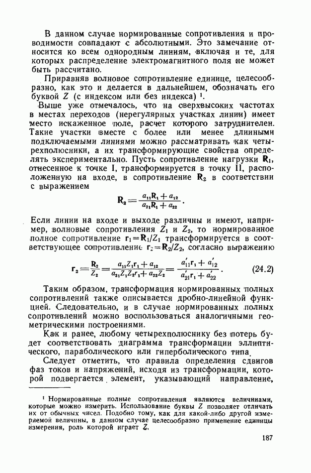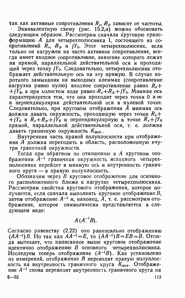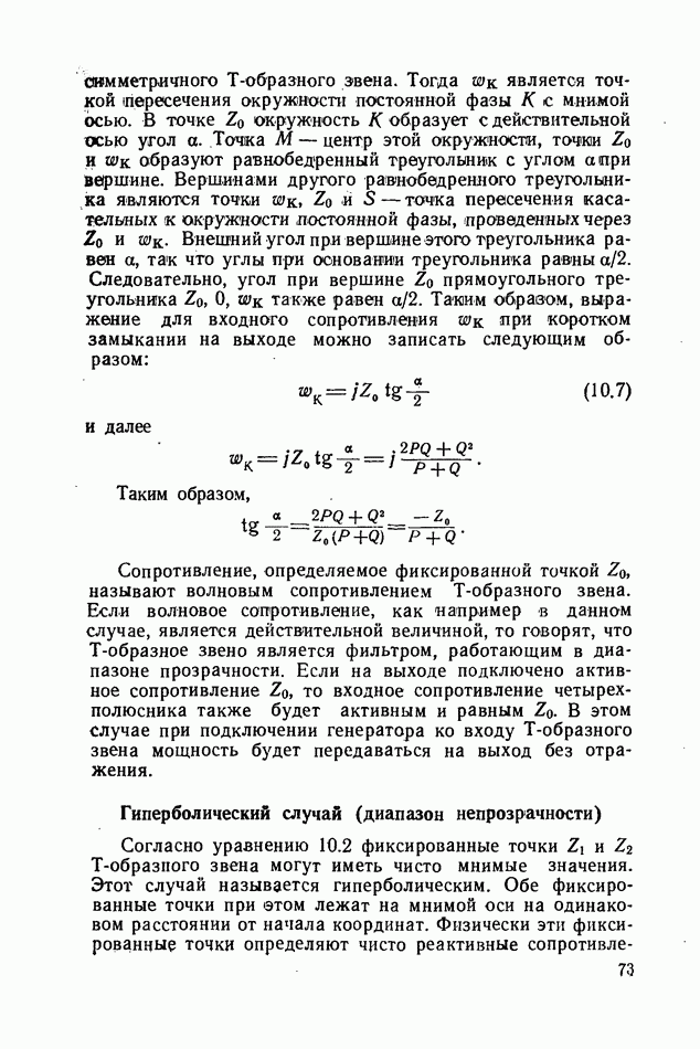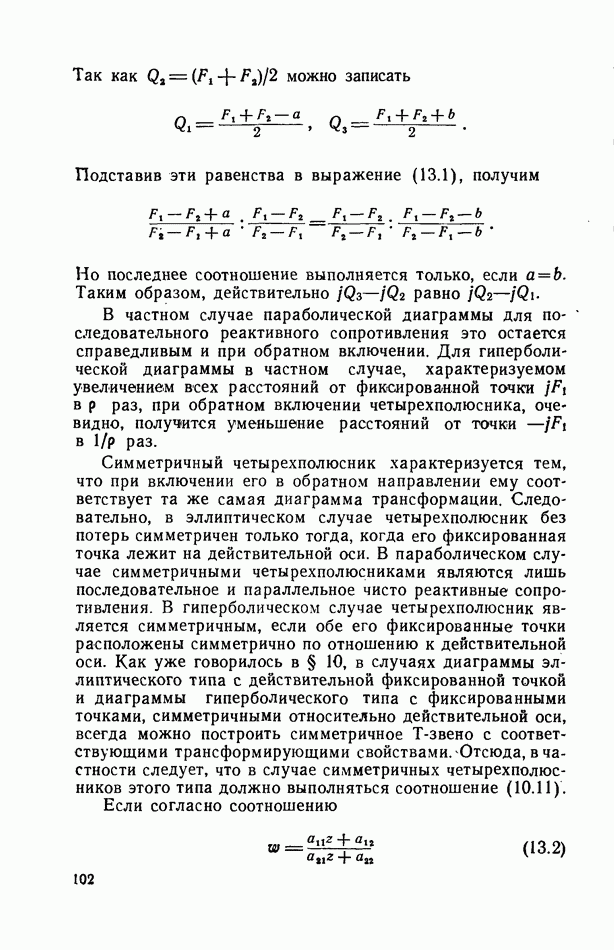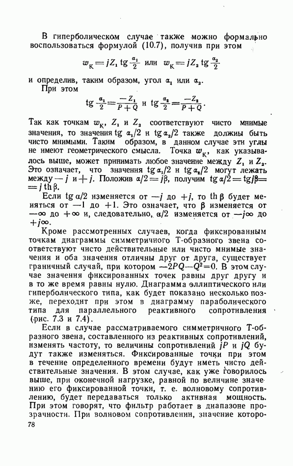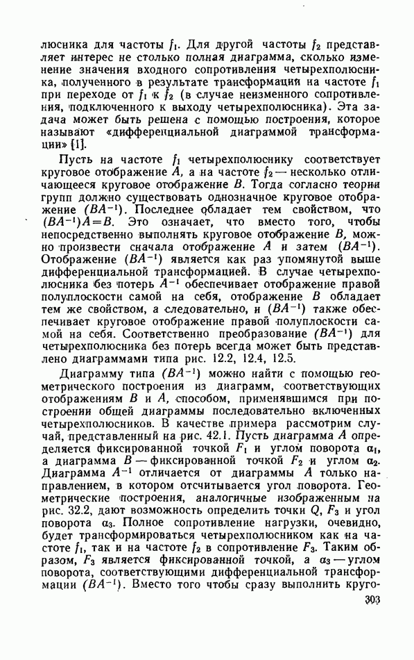 четырехполюсника на данной частоте. Для определения трансформирующих свойств четырехполюсника нет необходимости, конечно, каждый раз строить всю диаграмму, а достаточно в эллиптическом случае, например, задать фиксированную точку и угол поворота, а в параболическом и гиперболическом случаях построить фиксированные точки и диаграмму трансформации реактивных сопротивлений