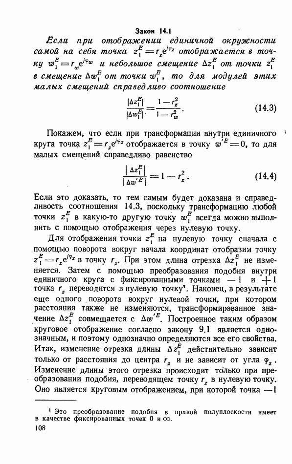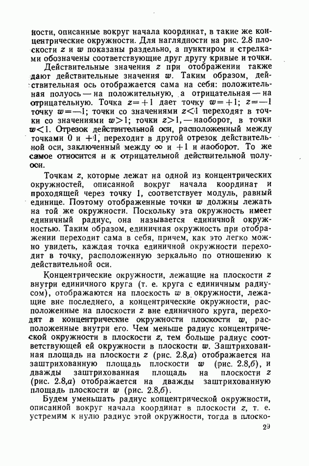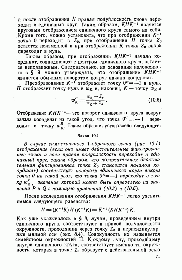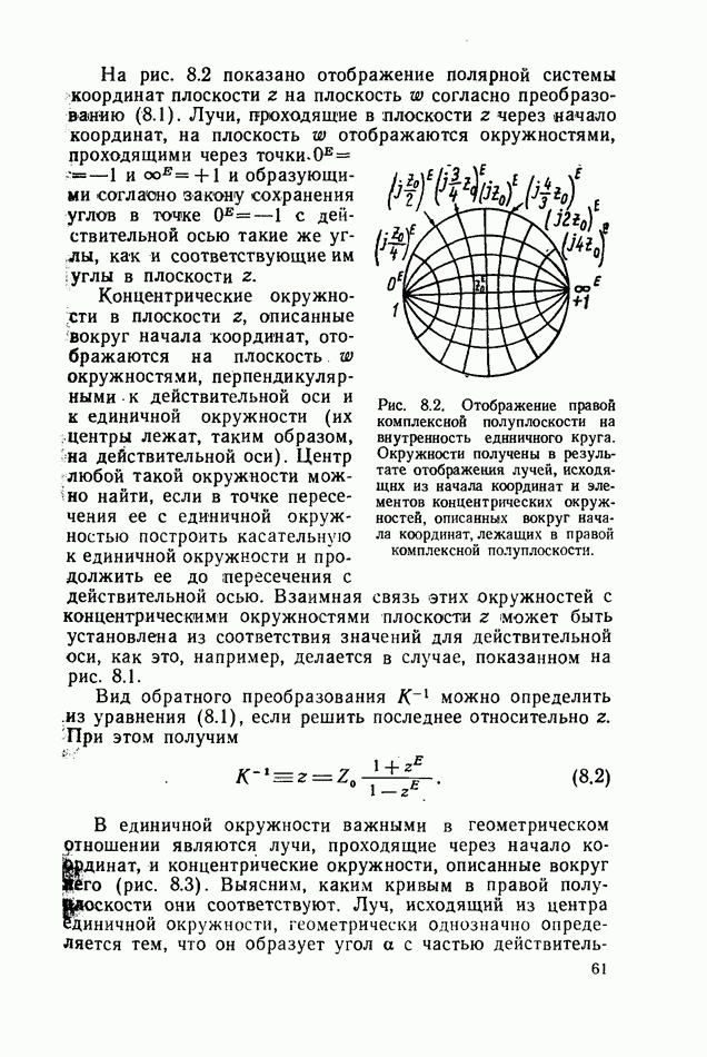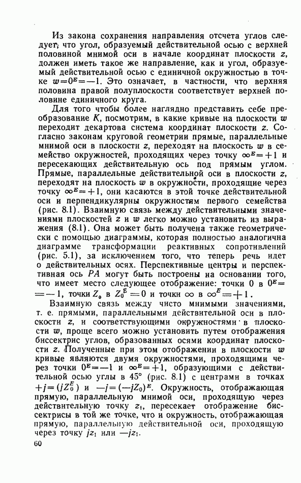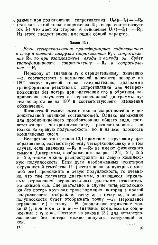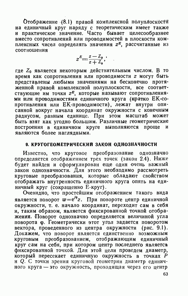 В случае диаграммы трансформации эллиптического типа с действительной фиксированной точкой, особенно в случае нормализованной диаграммы, когда значение фиксированной точки равно единице (рис. 12.7), переход от полных сопротивлений к проводимостям и обратно очень прост. Действительно, во-первых, в результате такого перехода получается идентичная диаграмма с той же фиксированной точкой и тем же углом поворота; во-вторых, для каждого значения нормированного сопротивления (или проводимости)