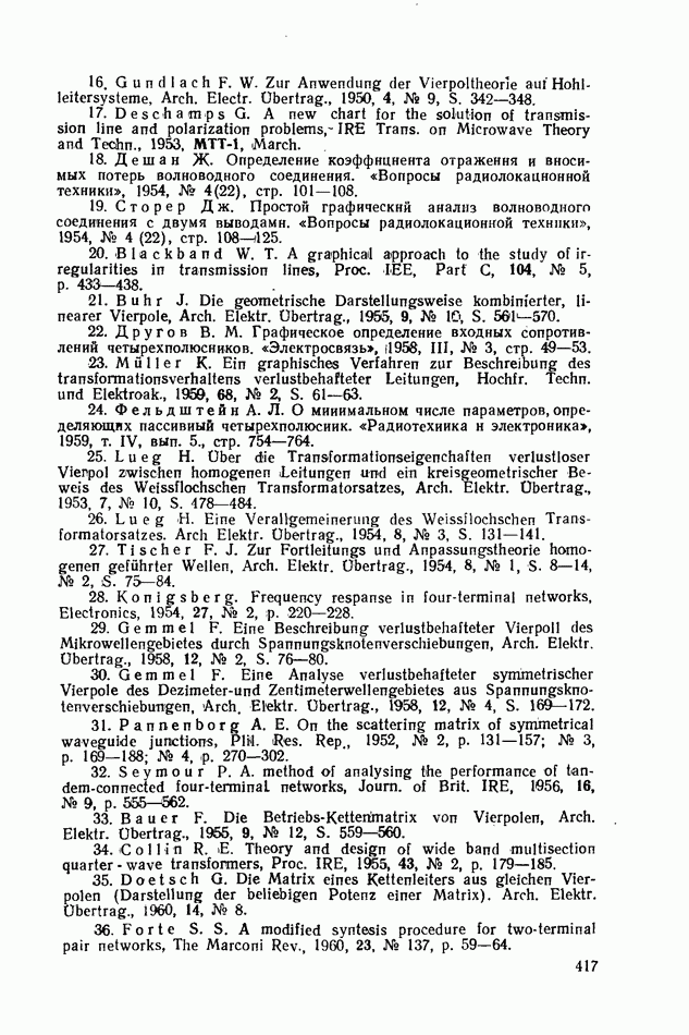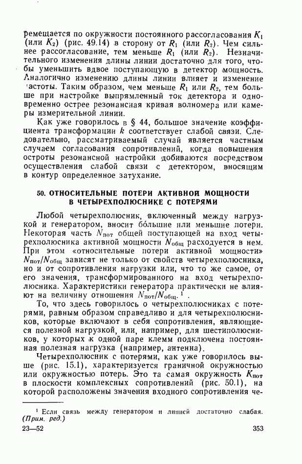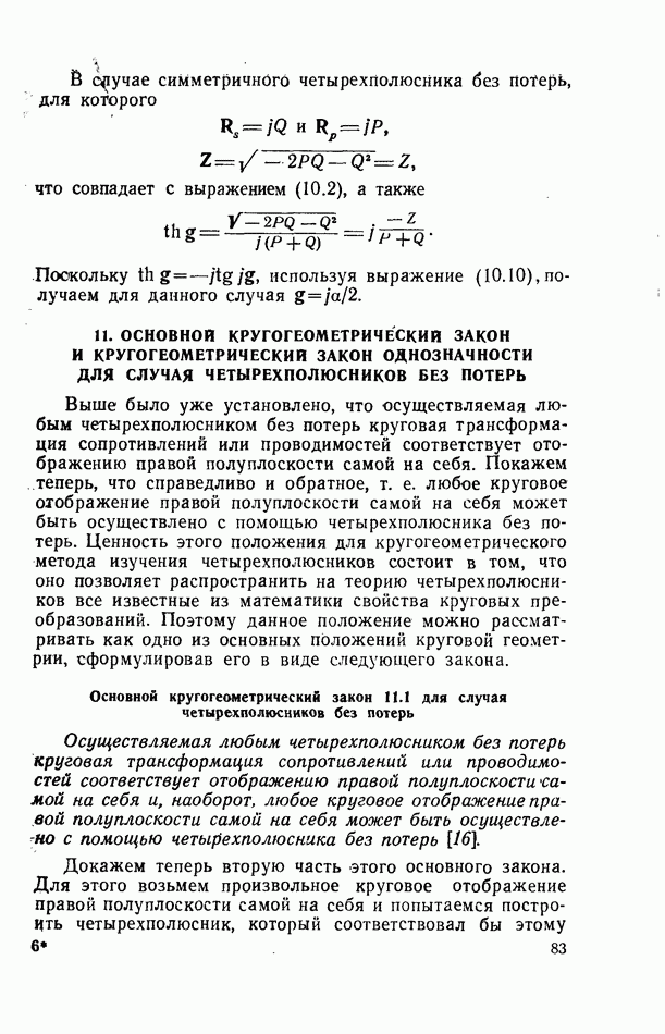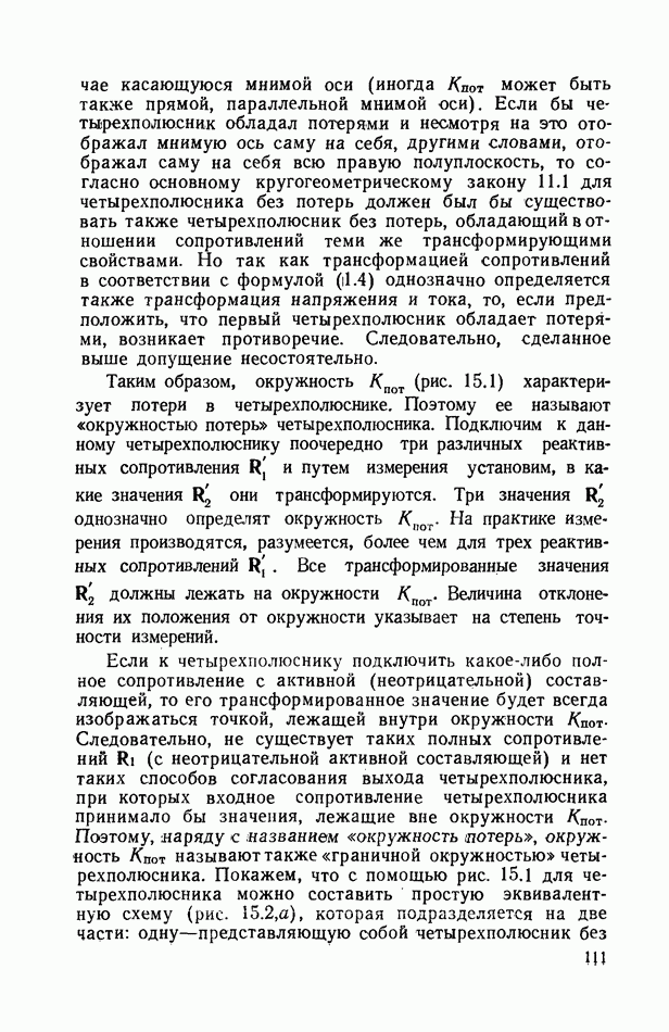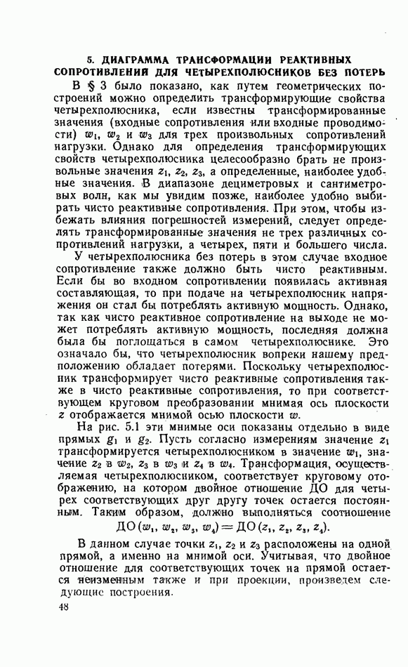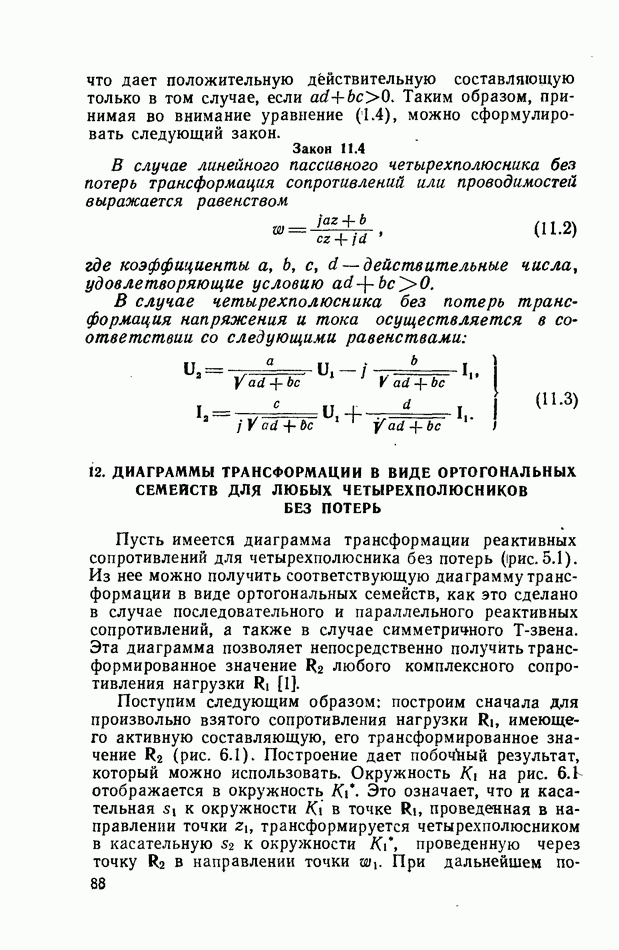 Итак, все возможные положения окружности Ко рассмотрены и соответственно исследованы все типы диаграмм для четырехполюсников без потерь. С помощью этих диаграмм можно раз и навсегда представить установленные путем измерений трансформирующие свойства любого