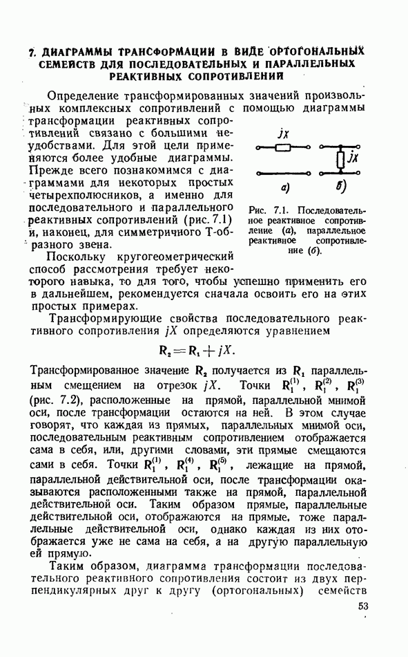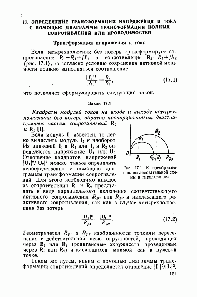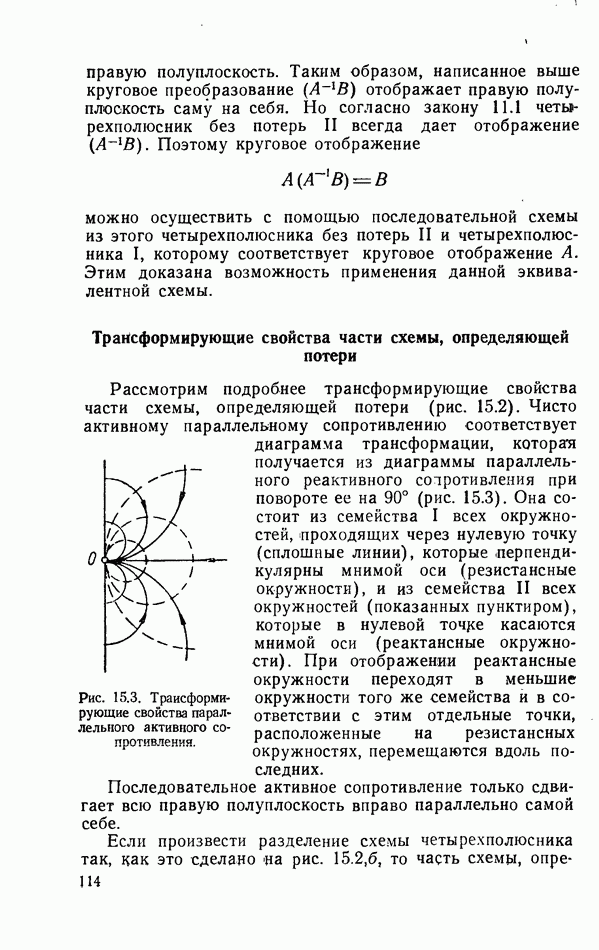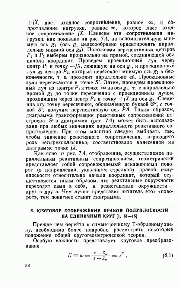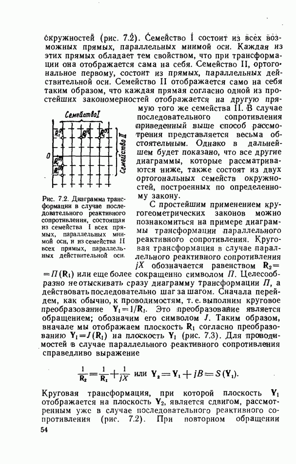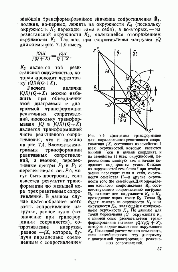 Чтобы для какой-либо окружности семейства II легко можно было найти окружность, являющуюся ее отображением и относящуюся к тому же семейству, диаграмму можно скомбинировать с диаграммой трансформации реактивных сопротивлений для четырехполюсника, как это было сделано в случае параллельного реактивного сопротивления.