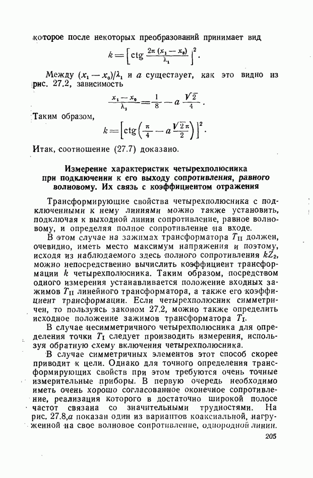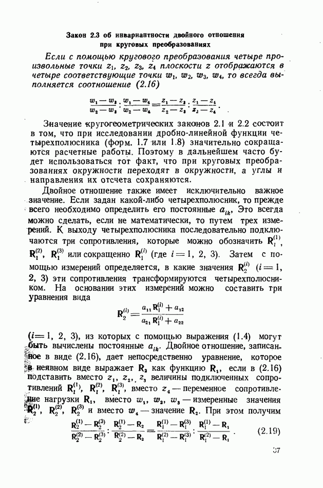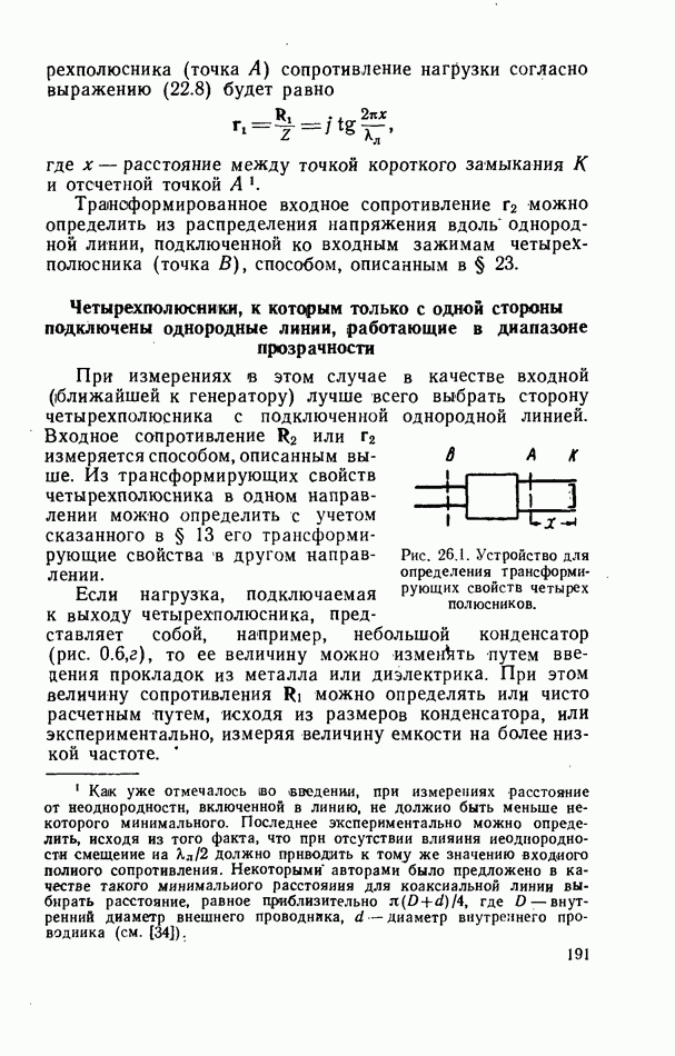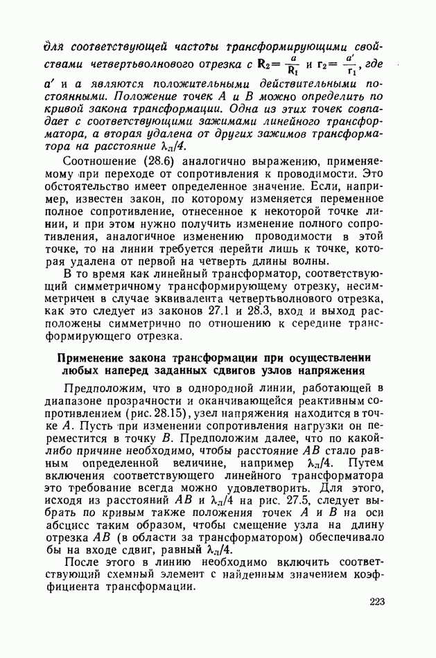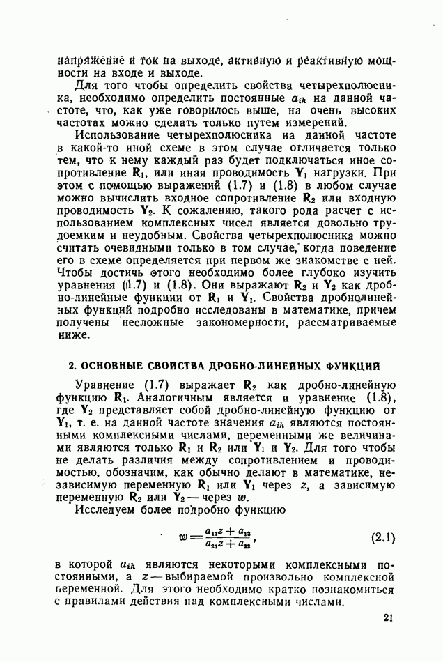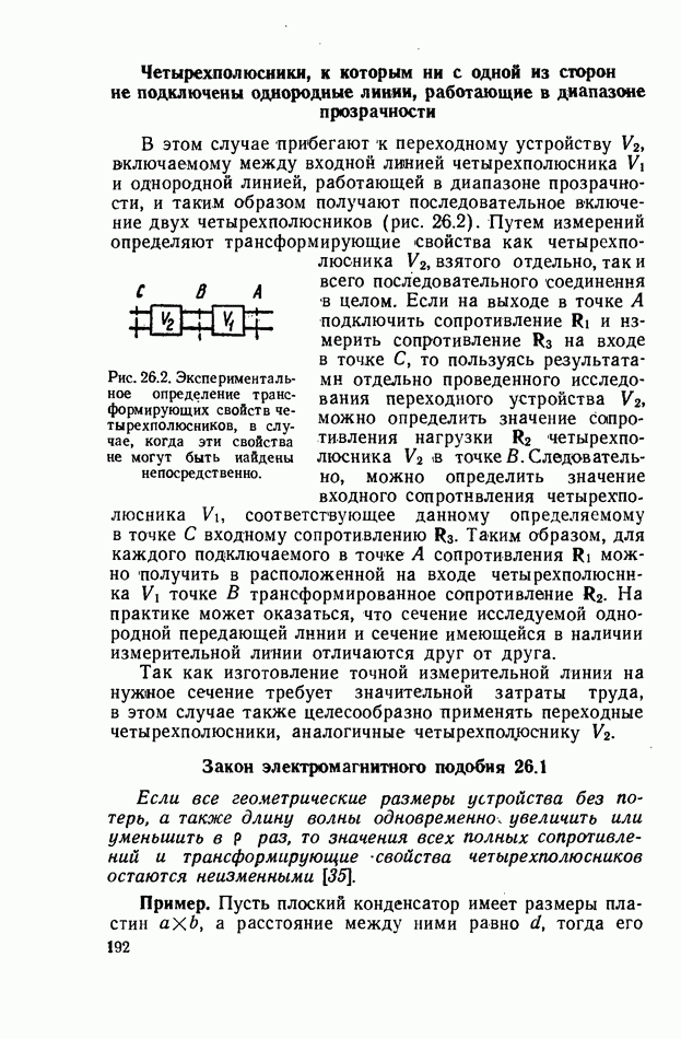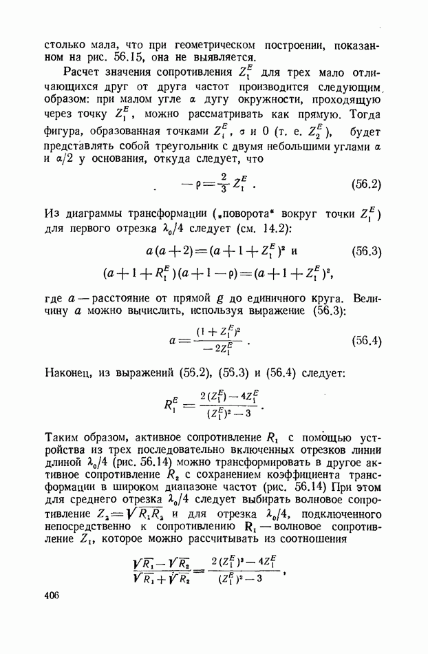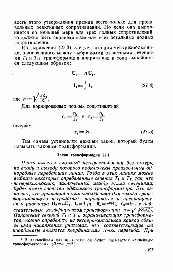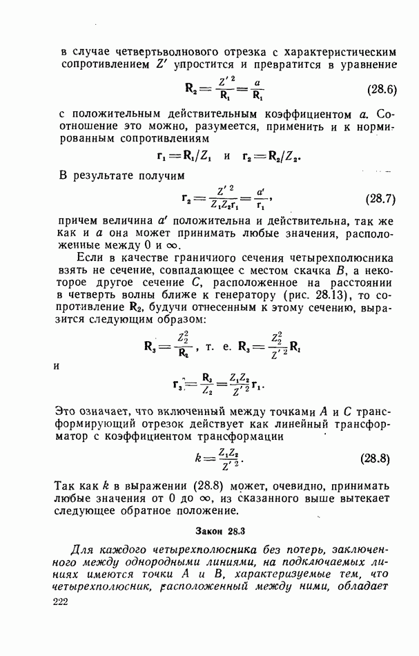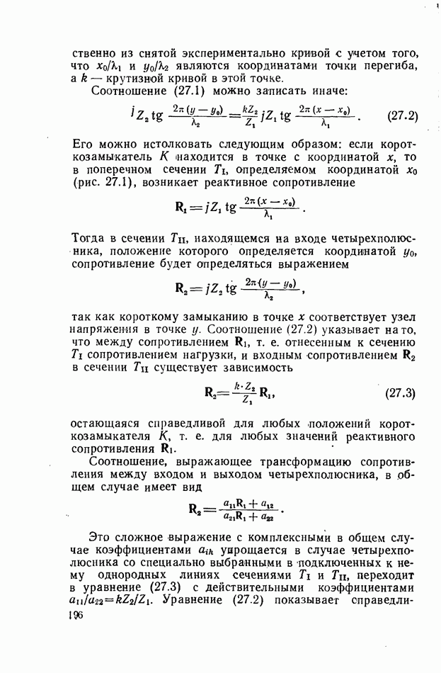 В случае четырехполюсника без потерь достаточно установить закон трансформации только для двух сопротивлений с активной составляющей. Пусть на основании измерений установлено, что четырехполюсник трансформирует сопротивление