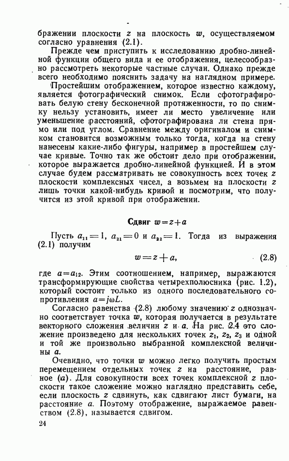 сдвигает плоскость комплексных чисел параллельно самой себе так, что перпендикуляр к мнимой оси, проходящий через точку