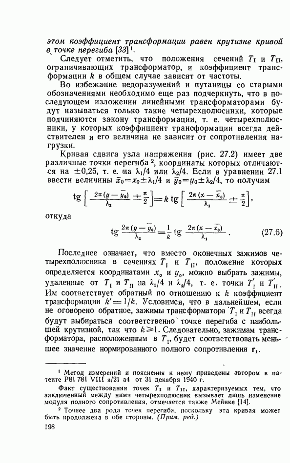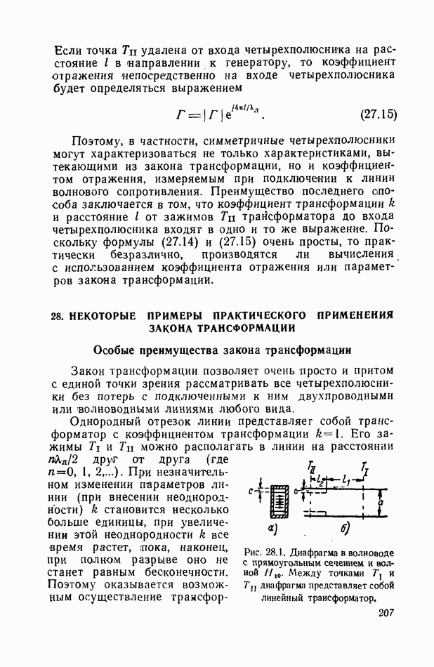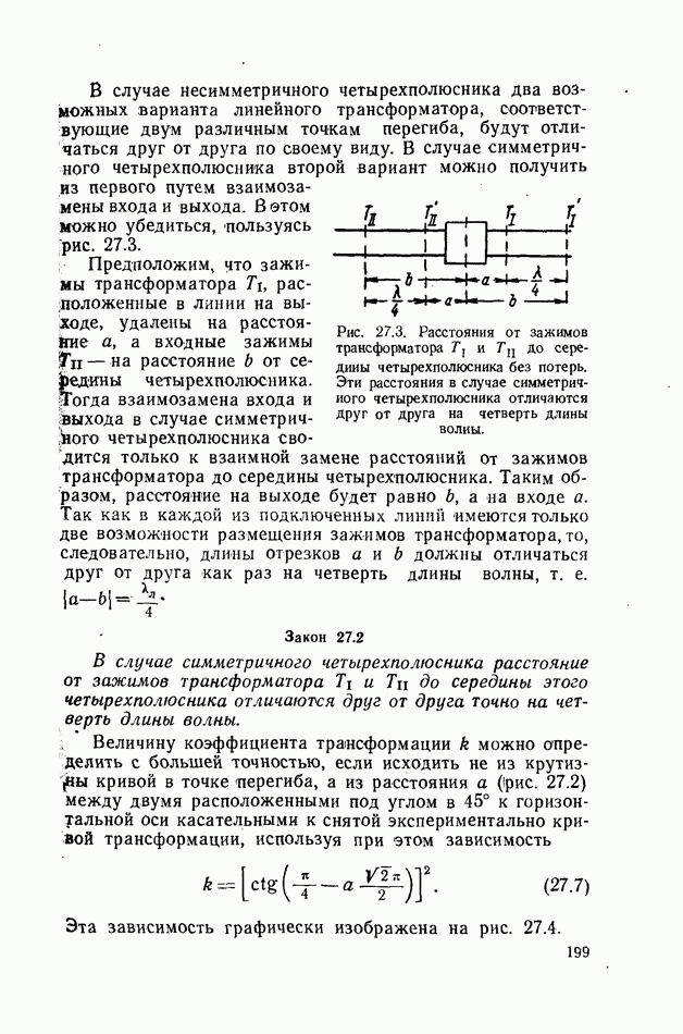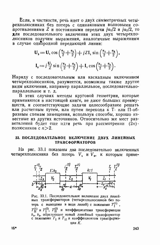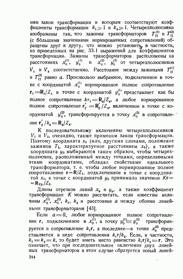 совпадает с началом координат, то очевидно, что имеем дело с диаграммой трансформации идеального трансформатора без рассеяния и без потерь. Так как диаграмма последнего выражает увеличение расстояний, то выводы для случая