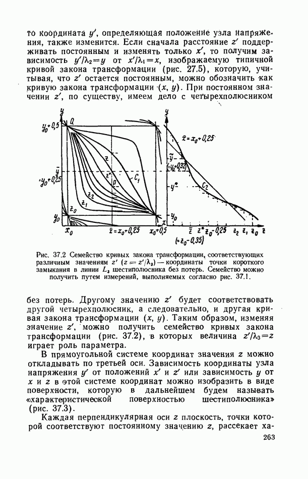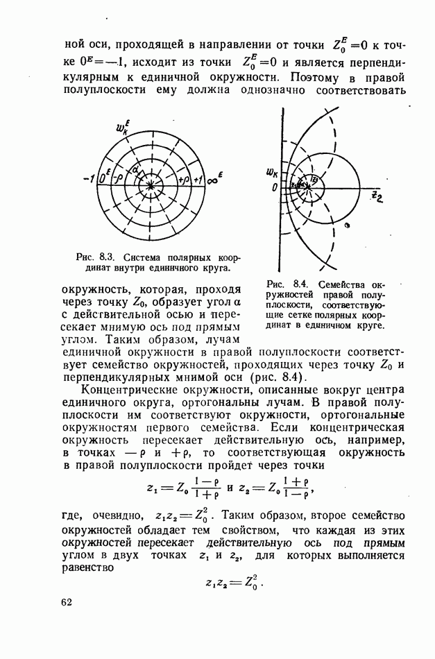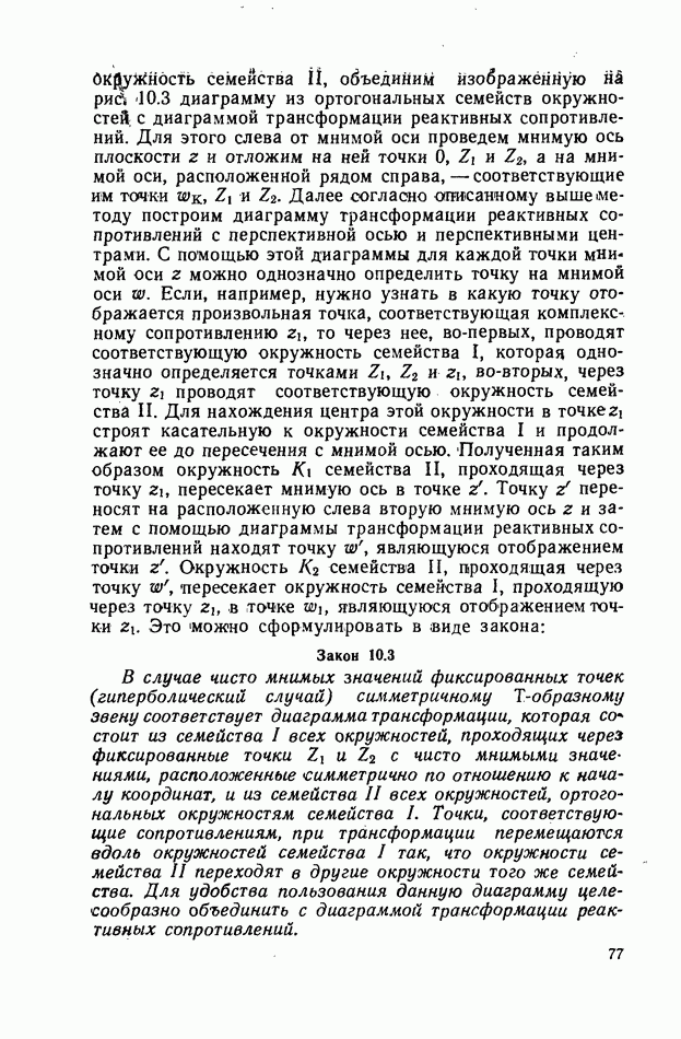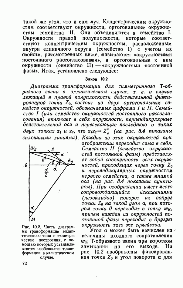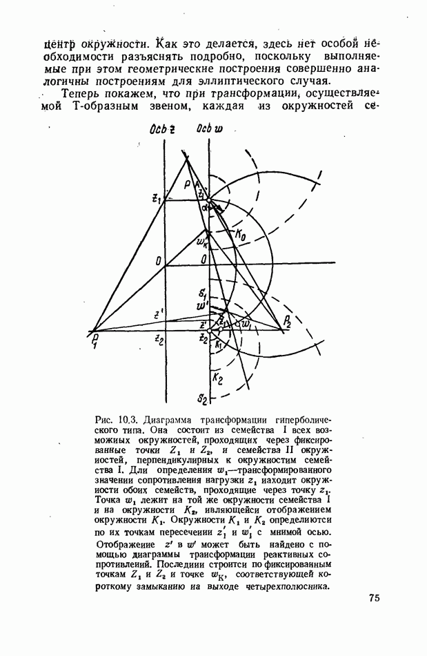 (сплошные линии), а семейство II — из ортогональных к ним окружностей (пунктирные линии). Диаграммой пользуются также, как и в гиперболическом случае для «симметричного Т-зве-на, только здесь точки