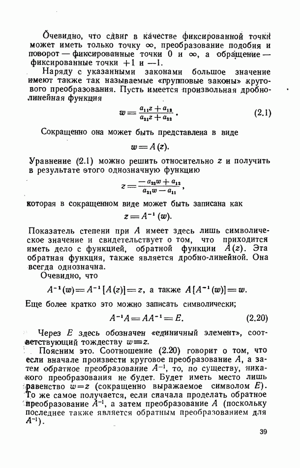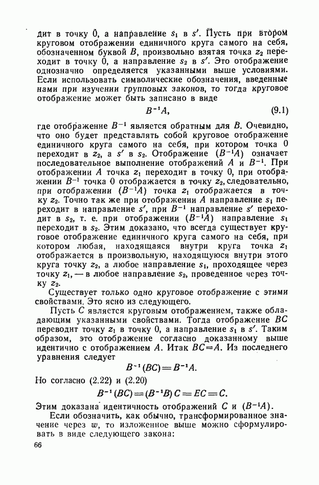 возвращает действительную ось в ее первоначальное положение. Но поскольку существует лишь одно отображение окружности, при котором точка