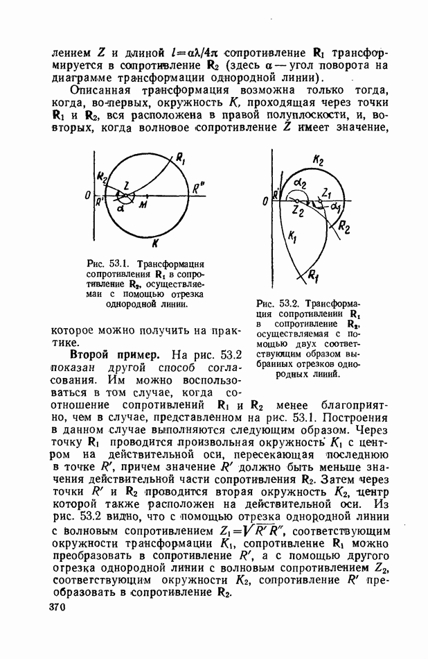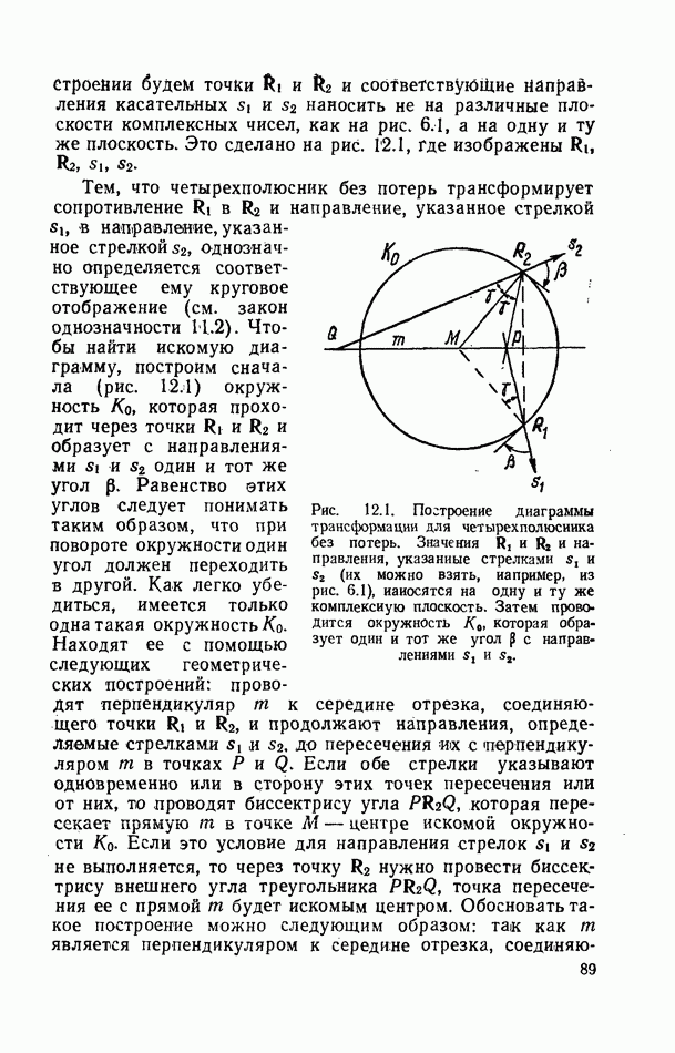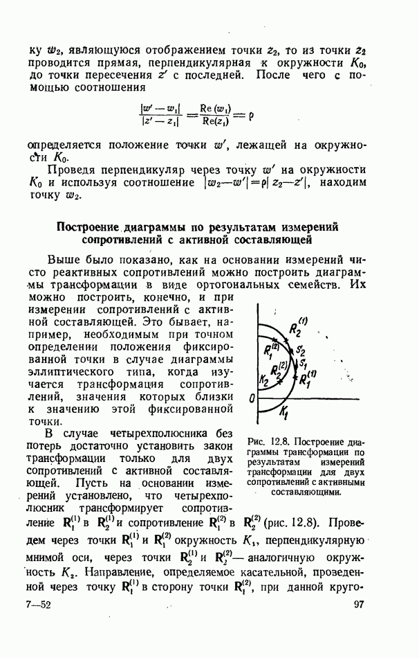 Рис. 12.8. Построение диаграммы трансформации по результатам измерений трансформации для двух сопротивлений с активными составляющими.