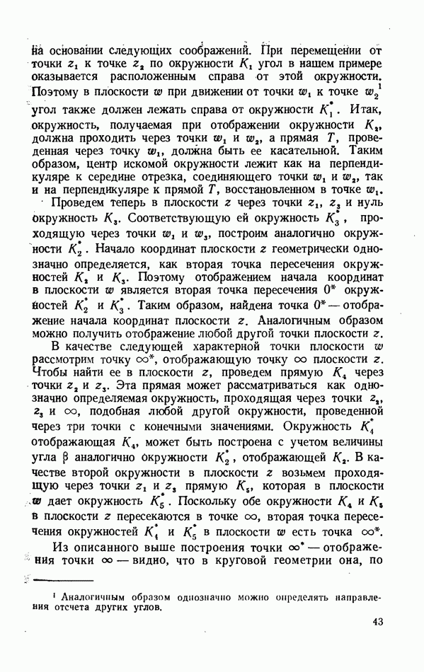 Равенство этих углов следует понимать таким образом, что при повороте окружности один угол должен переходить в другой. Как легко убедиться, имеется только одна такая окружность К. Находят ее с помощью следующих геометрических построений: проводят перпендикуляр