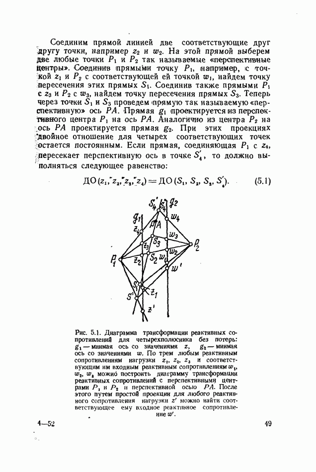 Рис. 12.1. Построение диаграммы трансформации для четырехполюсника без потерь. Значения