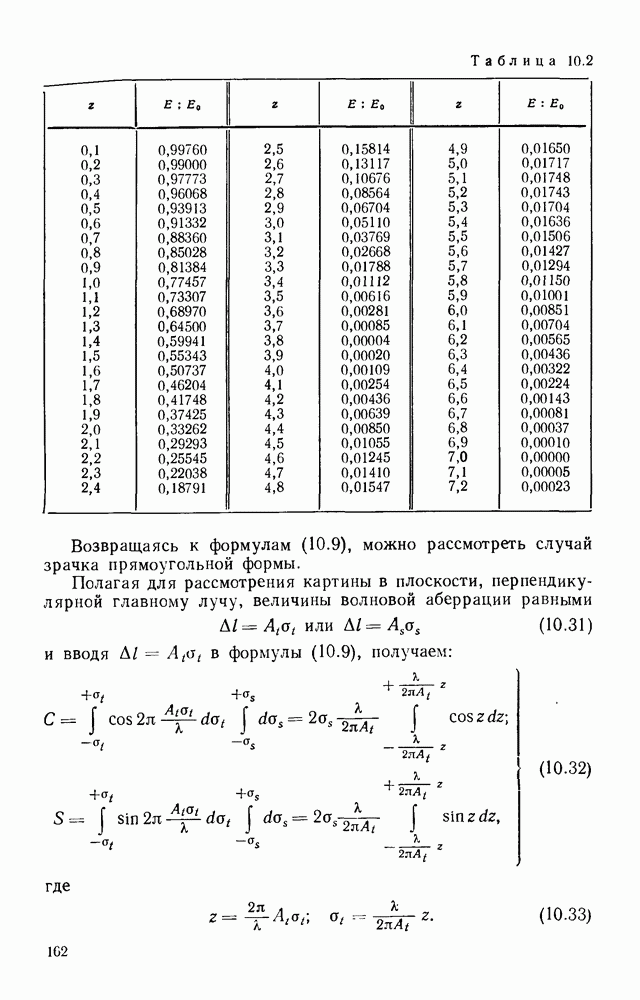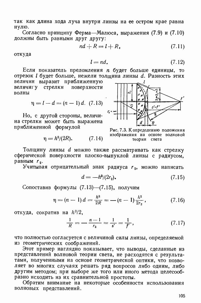 в фокальной плоскости по следующей приближенной формуле, которую приводим без вывода: