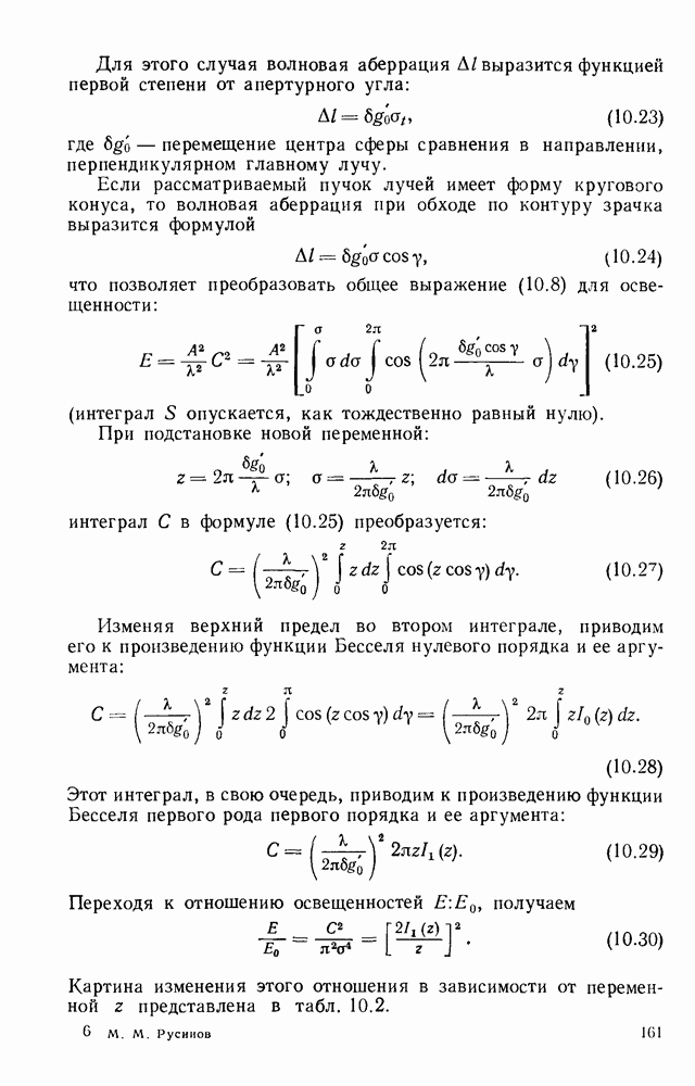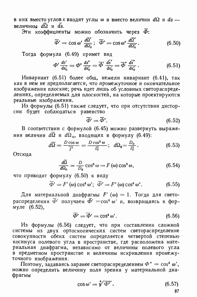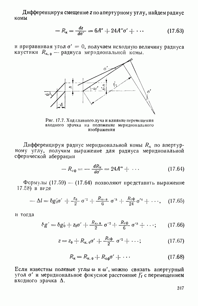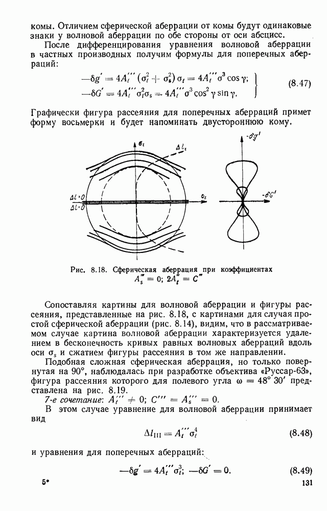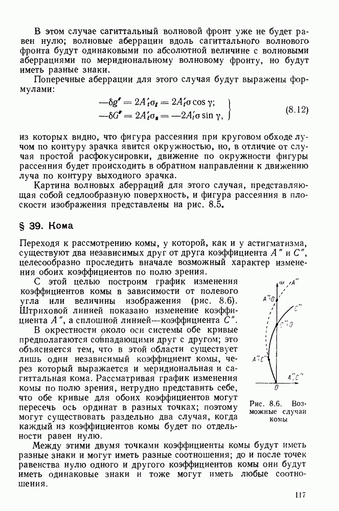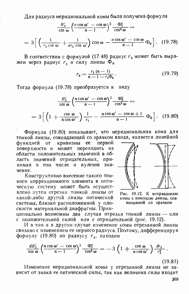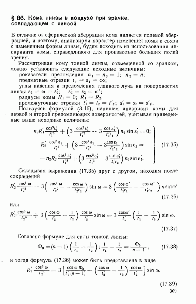 Переходя к рассмотрению поперечной комы в плоскости, перпендикулярной оси объектива, видим, что ее реет будет протекать обратно пропорционально квадрату косинуса полевого угла.
