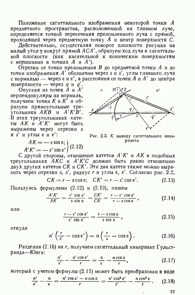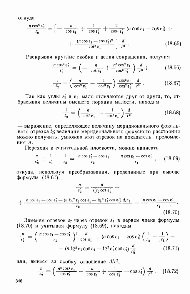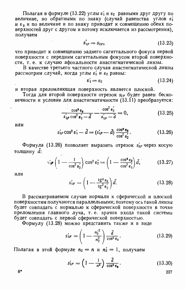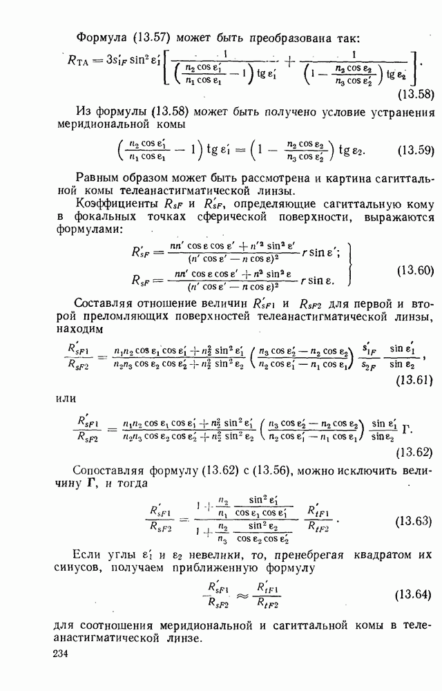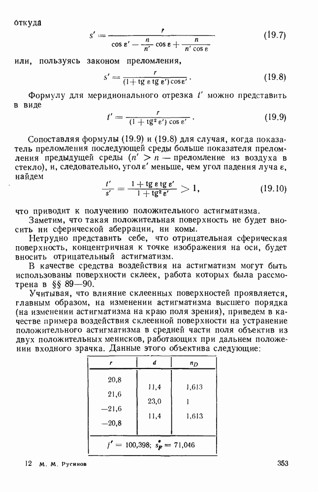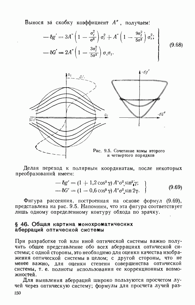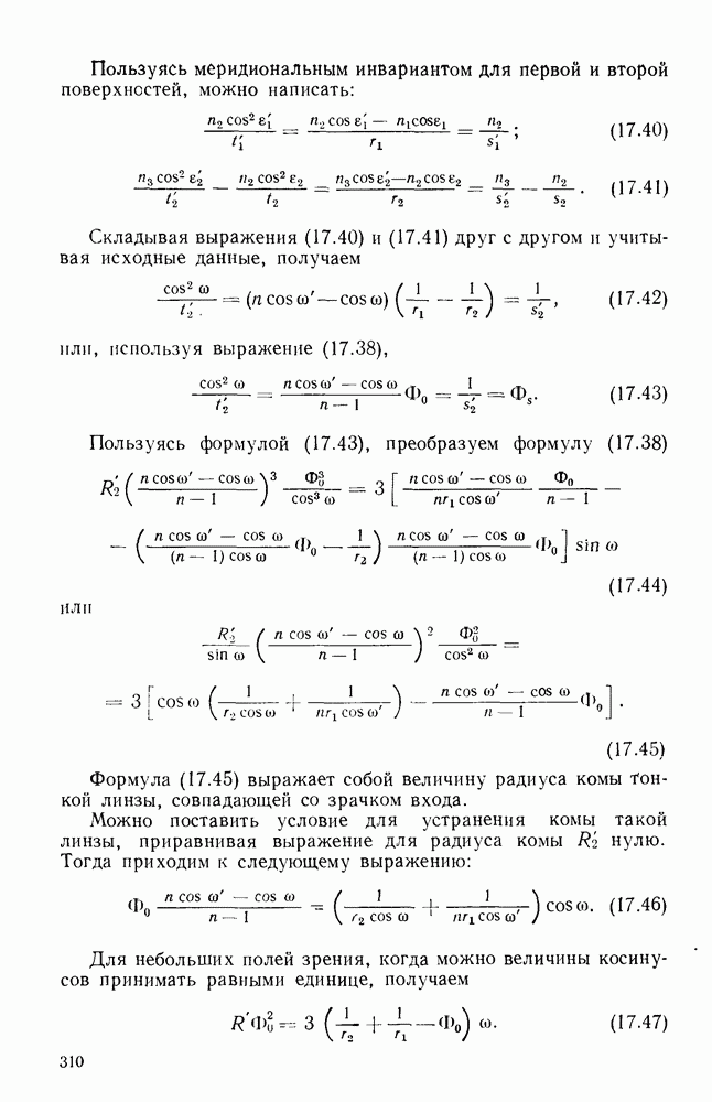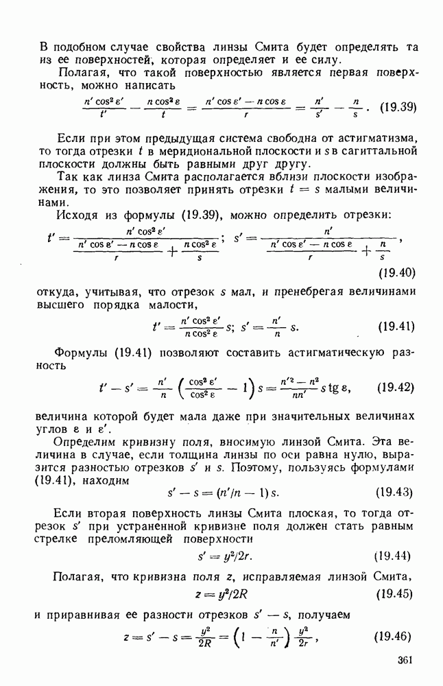 Переходя к рассмотрению поперечной комы в плоскости, перпендикулярной оси объектива, видим, что ее реет будет протекать обратно пропорционально квадрату косинуса полевого угла.