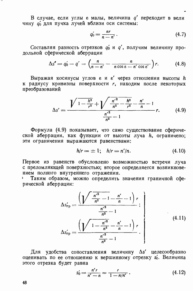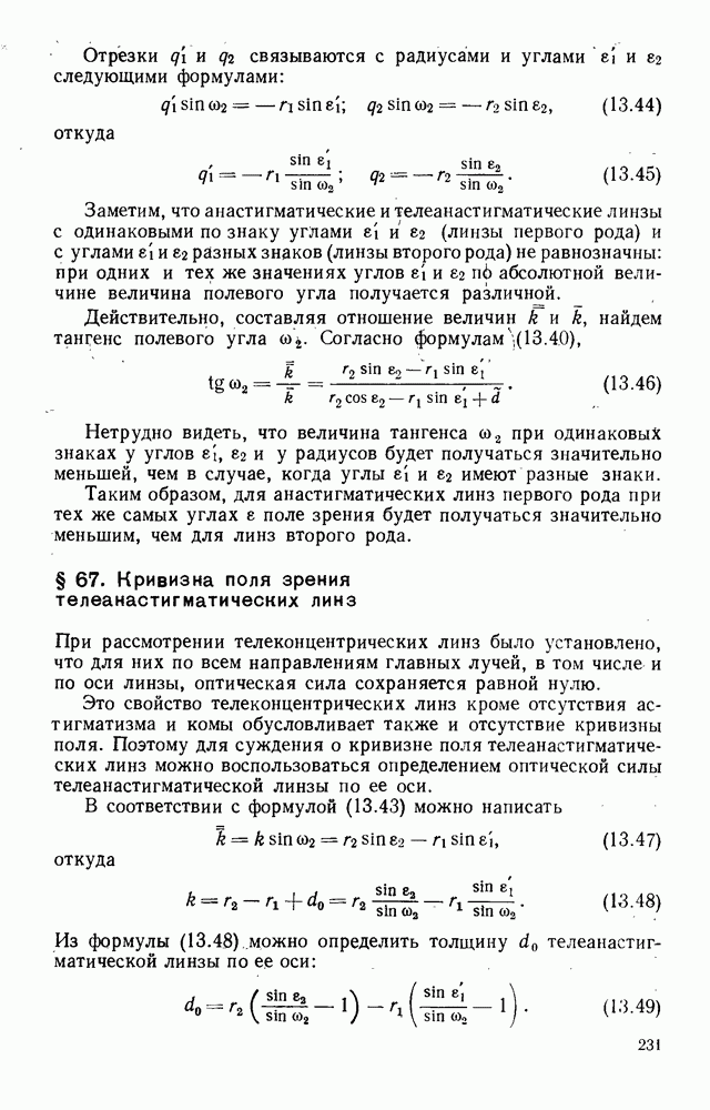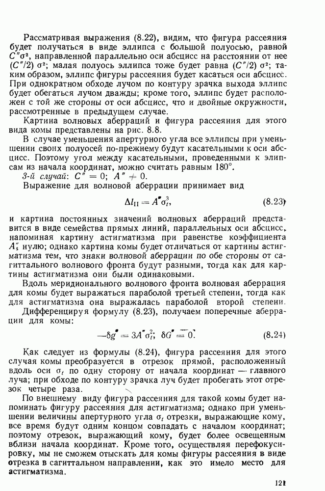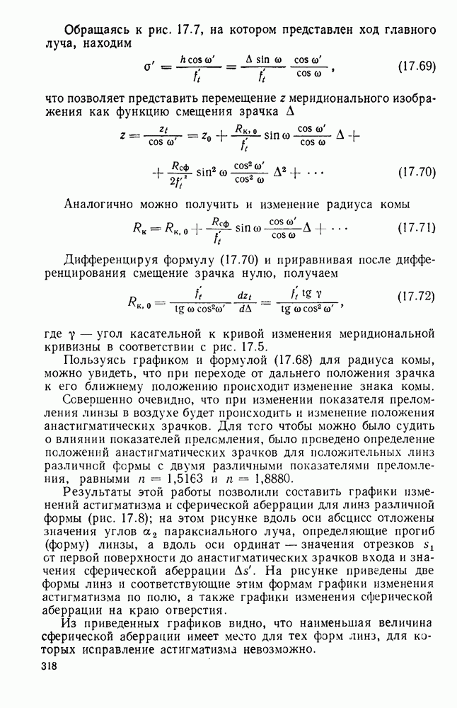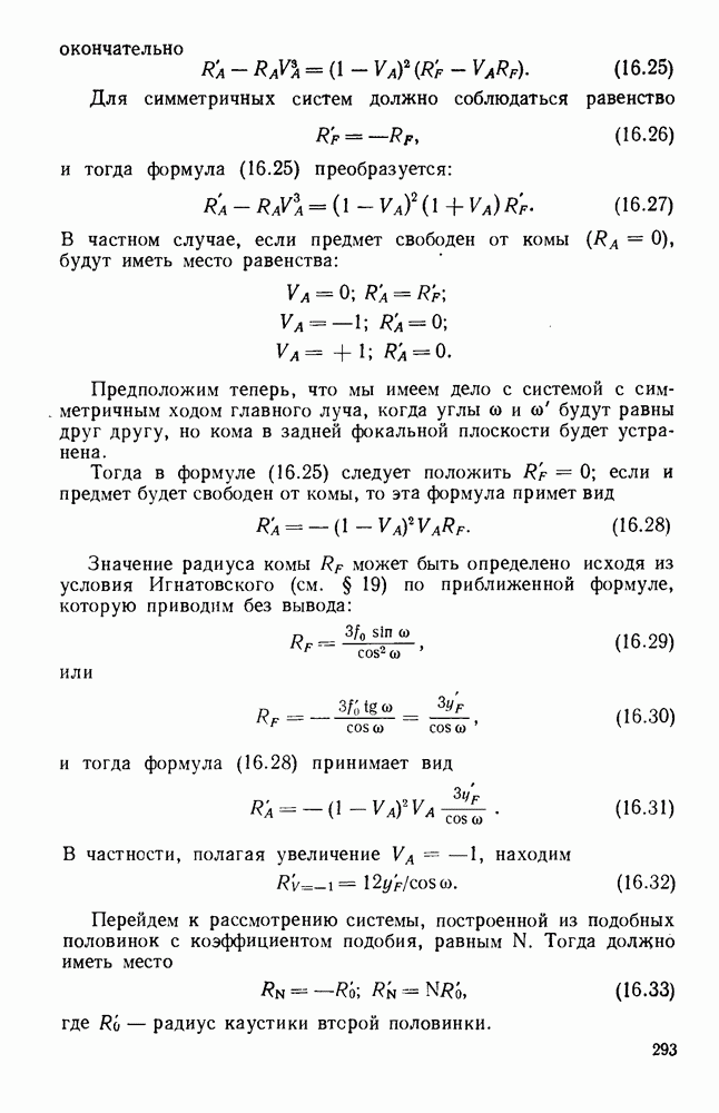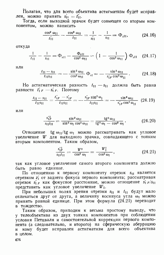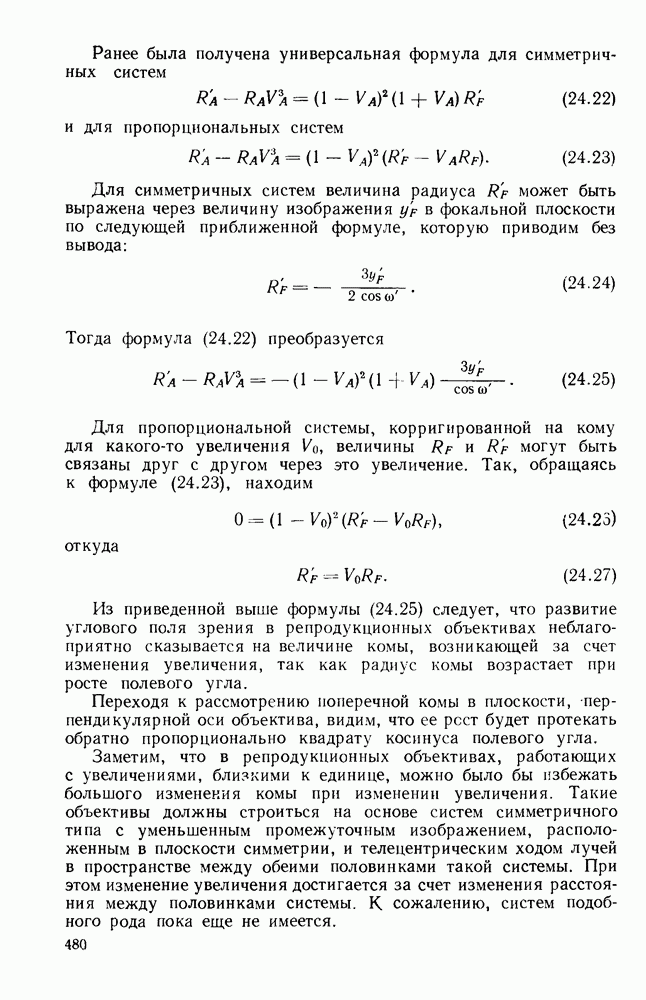 Из приведенной выше формулы (24.25) следует, что развитие углового поля зрения в репродукционных объективах неблагоприятно сказывается на величине комы, возникающей за счет изменения увеличения, так как радиус комы возрастает при росте полевого угла.
