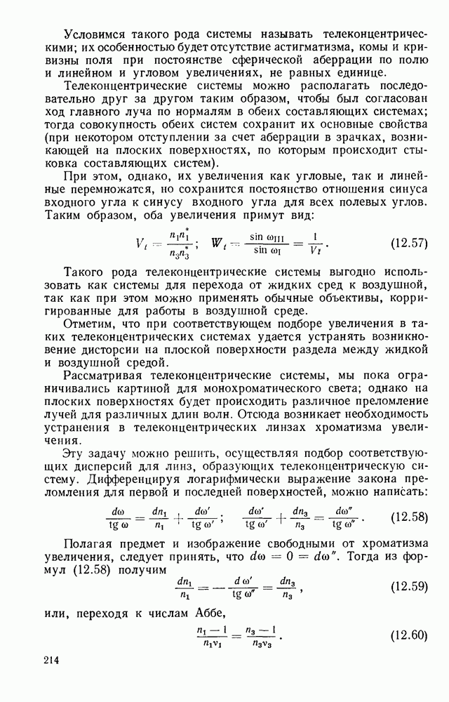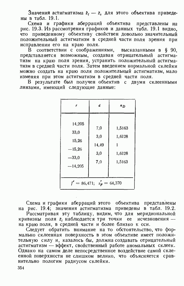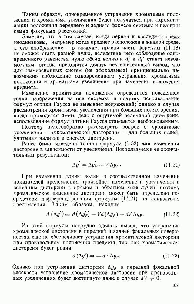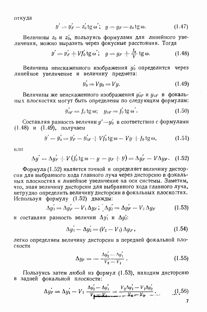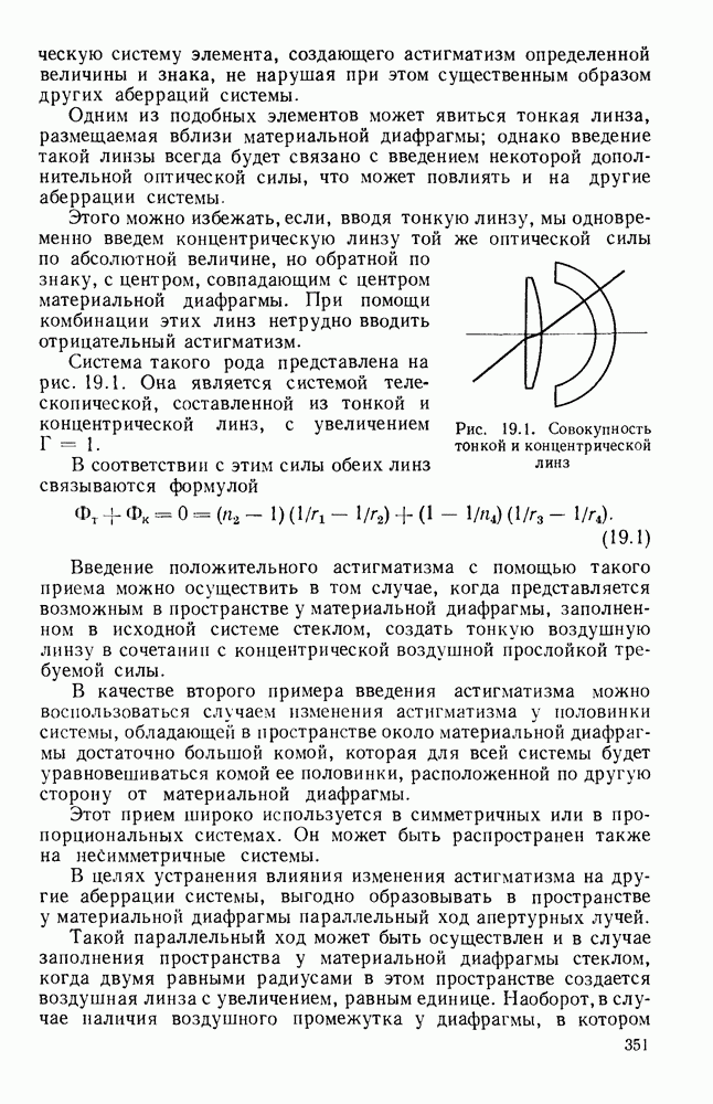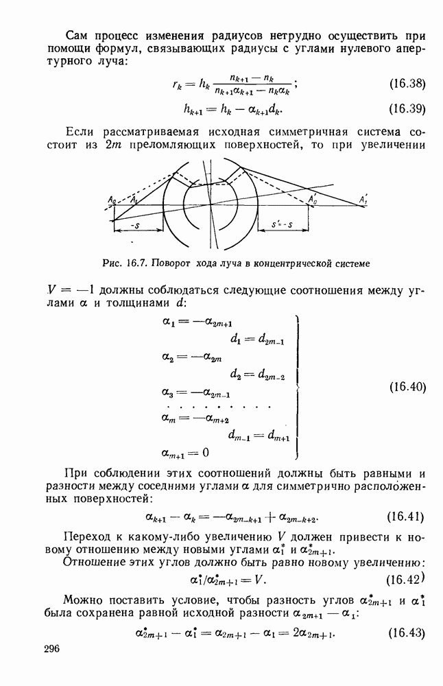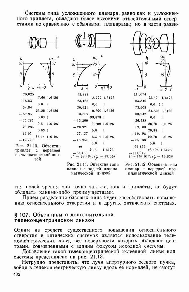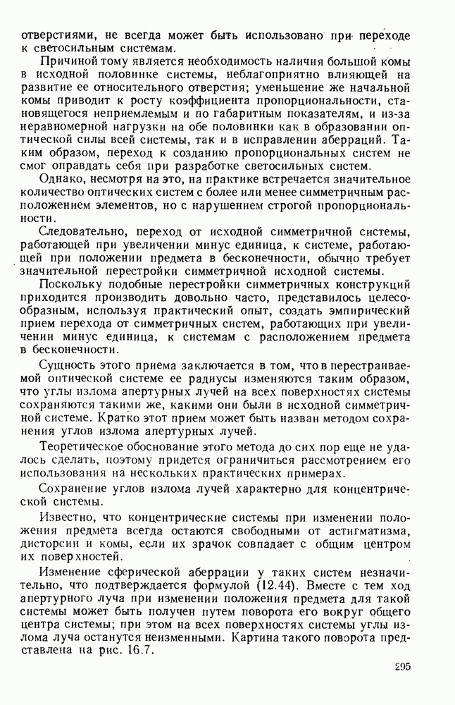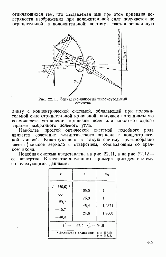 Заметим, что в репродукционных объективах, работающих с увеличениями, близкими к единице, можно было бы избежать большого изменения комы при изменении увеличения. Такие объективы должны строиться на основе систем симметричного типа с уменьшенным промежуточным изображением, расположенным в плоскости симметрии, и телецентрическим ходом лучей в пространстве между обеими половинками такой системы. При этом изменение увеличения достигается за счет изменения расстояния между половинками системы. К сожалению, систем подобного рода пока еще не имеется.