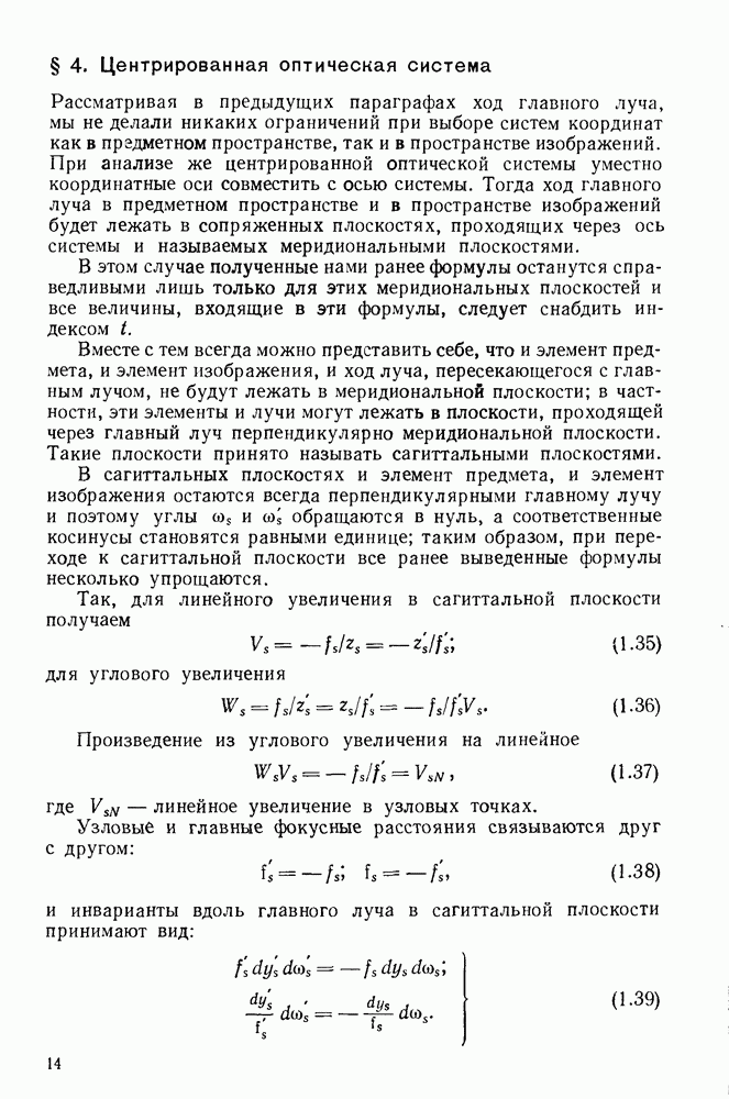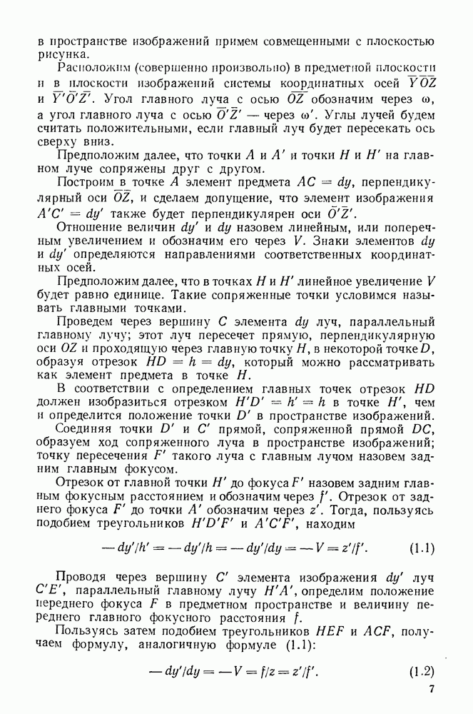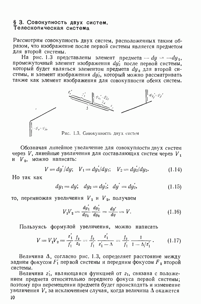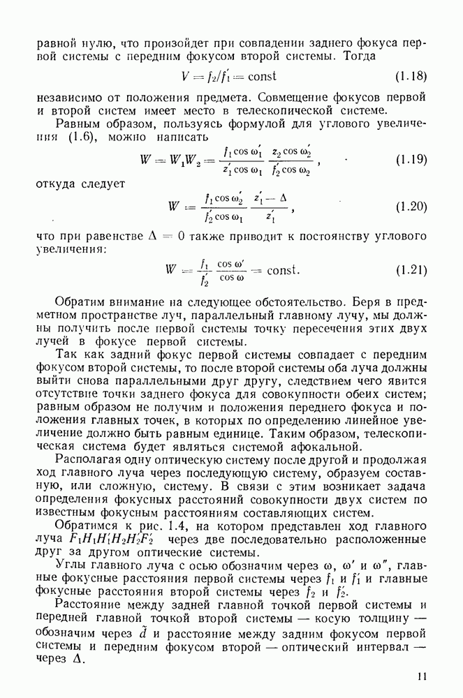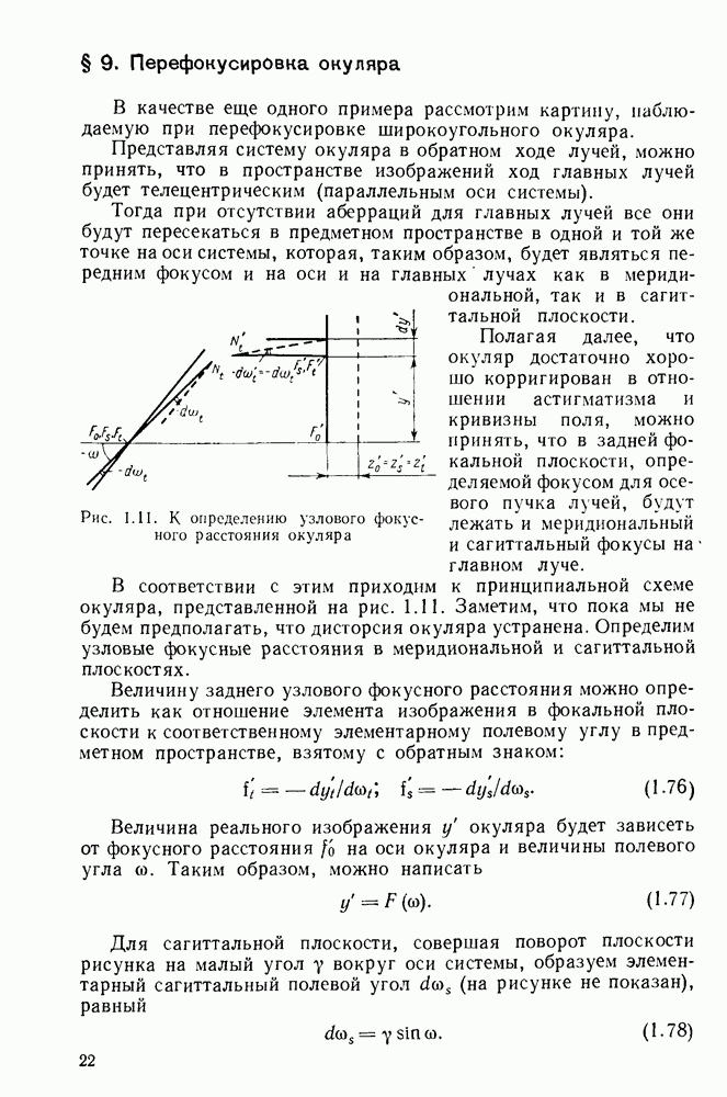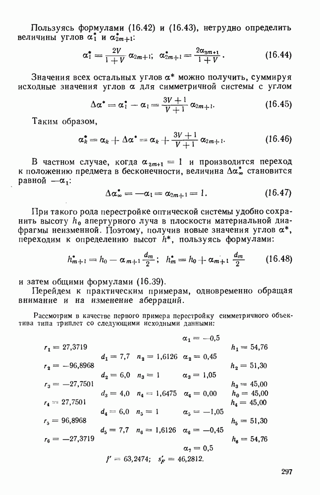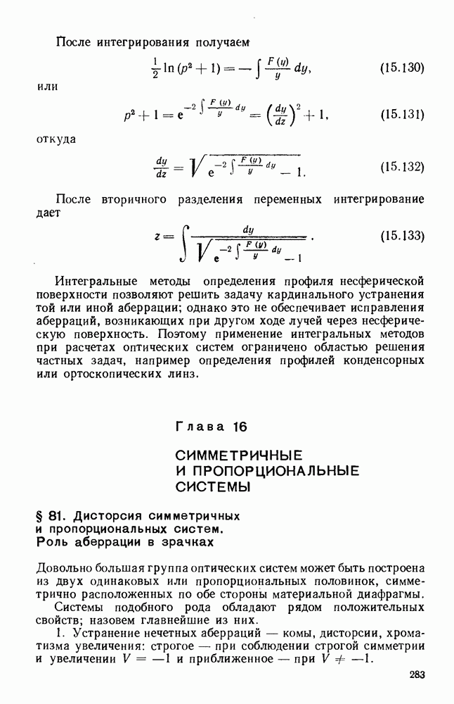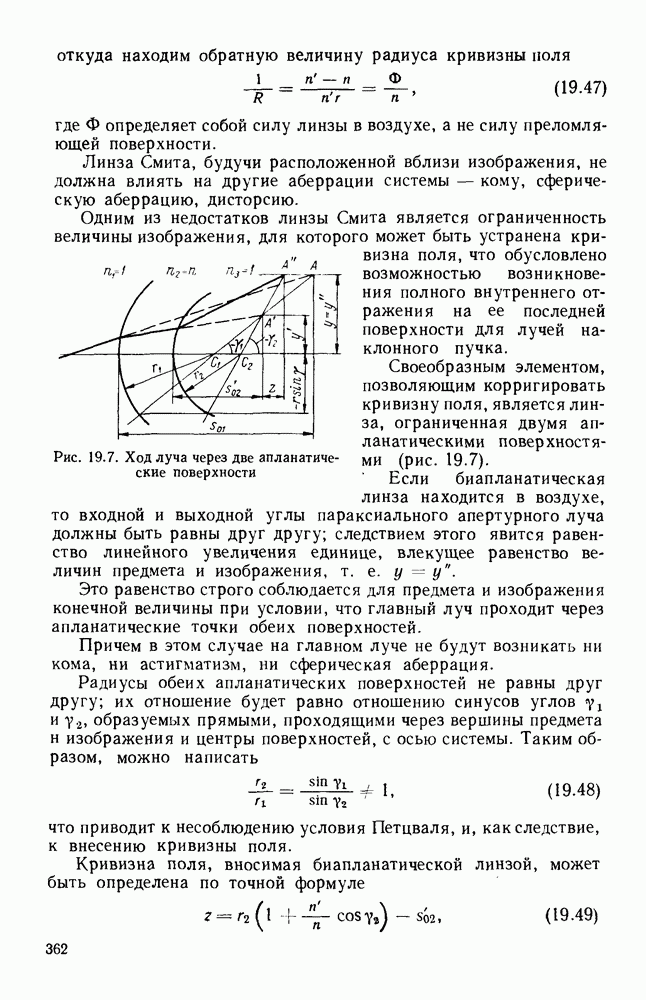 Заметим, что в репродукционных объективах, работающих с увеличениями, близкими к единице, можно было бы избежать большого изменения комы при изменении увеличения. Такие объективы должны строиться на основе систем симметричного типа с уменьшенным промежуточным изображением, расположенным в плоскости симметрии, и телецентрическим ходом лучей в пространстве между обеими половинками такой системы. При этом изменение увеличения достигается за счет изменения расстояния между половинками системы. К сожалению, систем подобного рода пока еще не имеется.