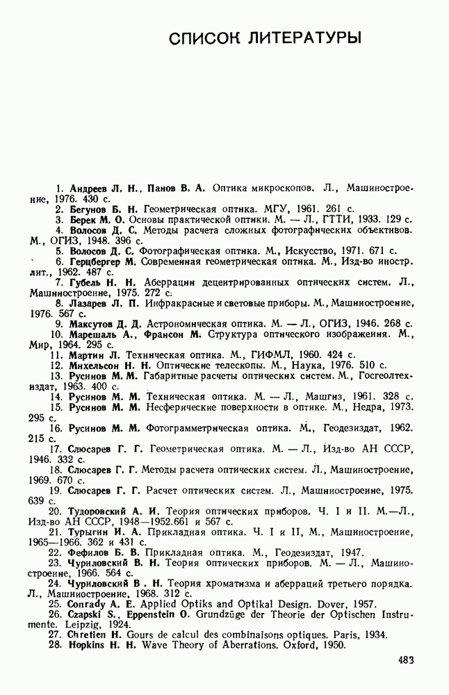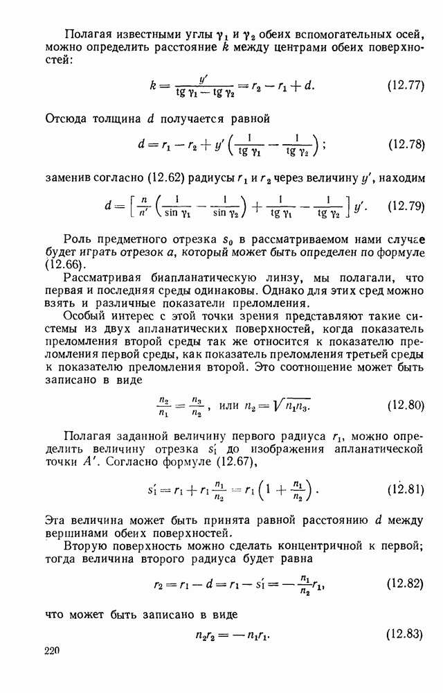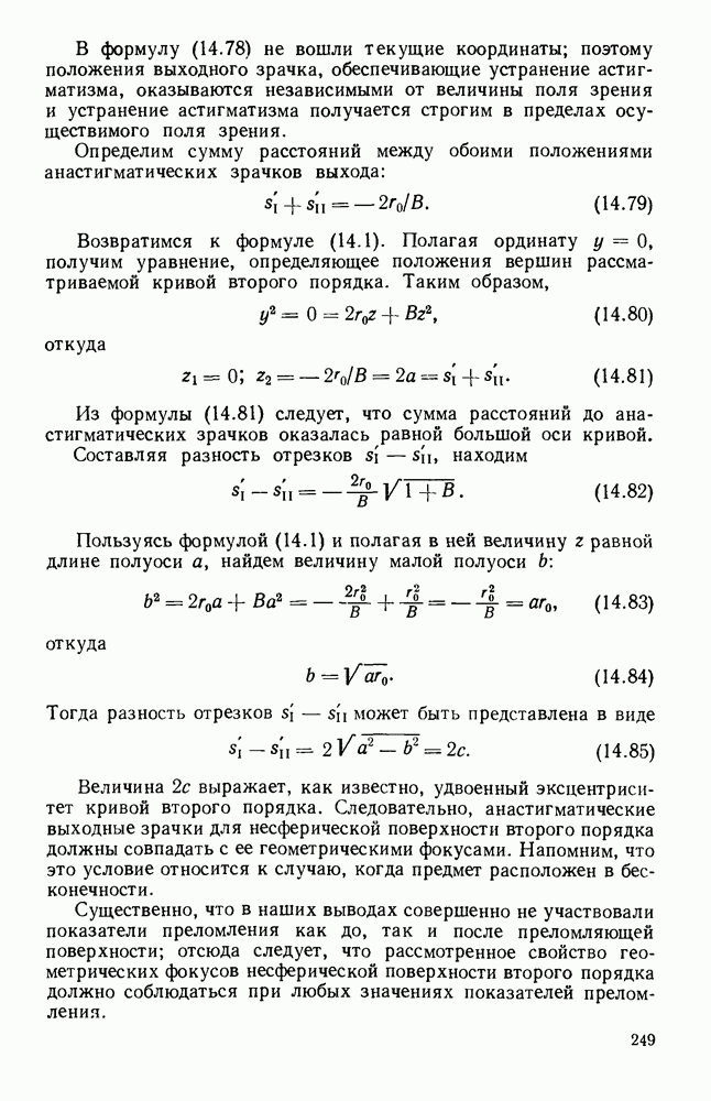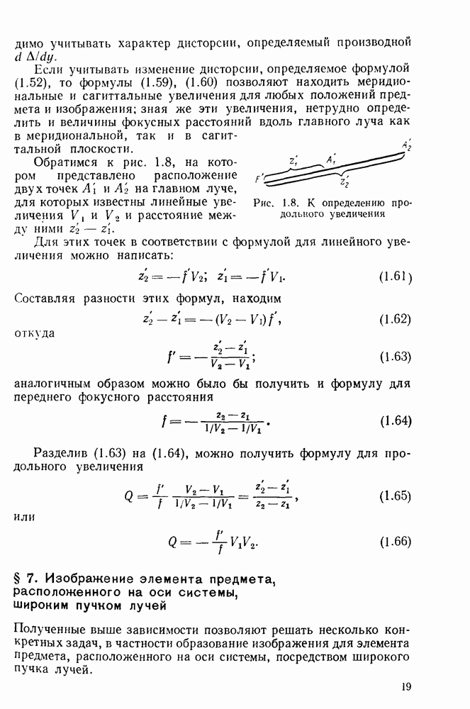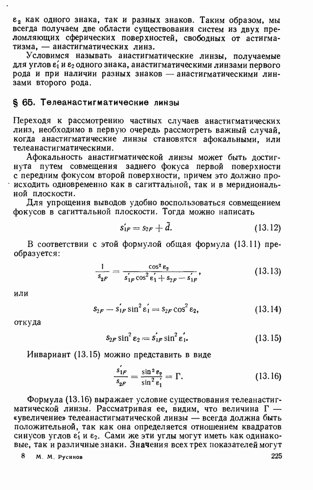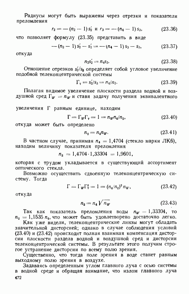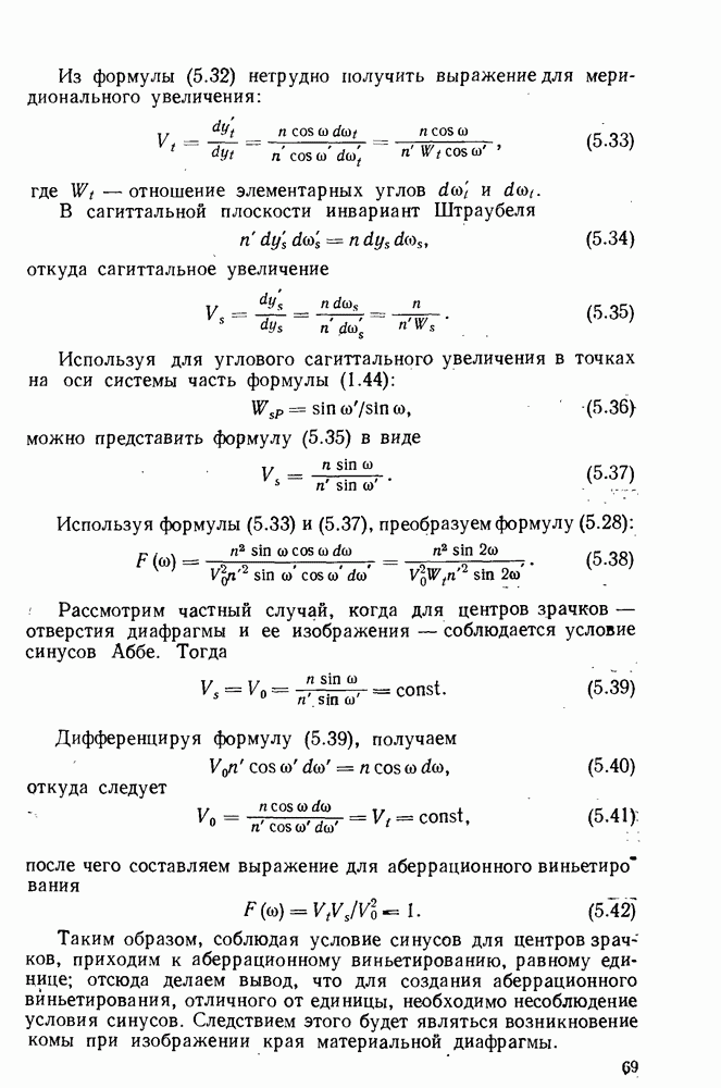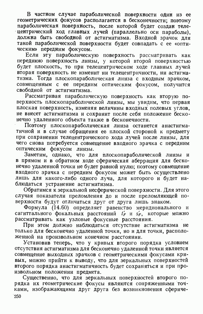 Заметим, что в репродукционных объективах, работающих с увеличениями, близкими к единице, можно было бы избежать большого изменения комы при изменении увеличения. Такие объективы должны строиться на основе систем симметричного типа с уменьшенным промежуточным изображением, расположенным в плоскости симметрии, и телецентрическим ходом лучей в пространстве между обеими половинками такой системы. При этом изменение увеличения достигается за счет изменения расстояния между половинками системы. К сожалению, систем подобного рода пока еще не имеется.