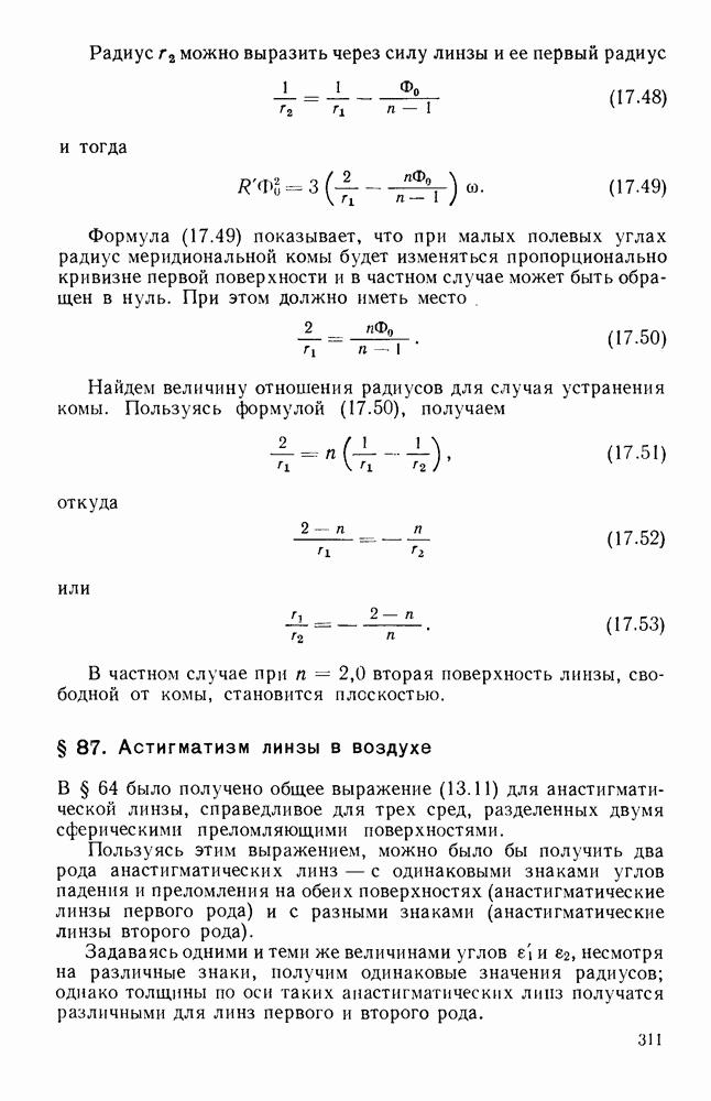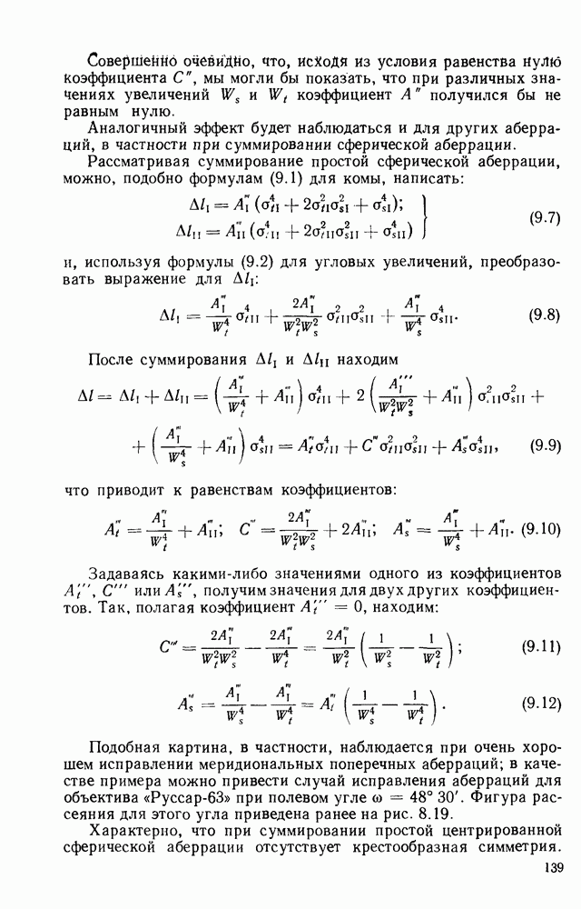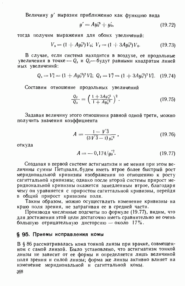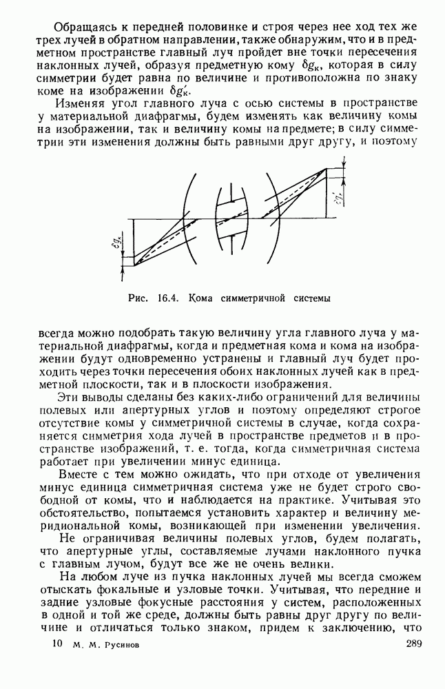 Рассматривая кому симметричного объектива, видели, что отступление от увеличения, равного минус единице, приводит к возникновению комы, величина которой не зависит от конструкции объектива и определяется лишь величиной его поля зрения и увеличением,