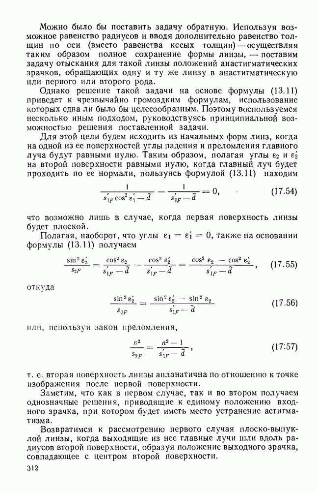 Разбирая вопрос о работе симметричных объективов, было установлено, что при устранении аберрации в зрачках происходит автоматическое устранение дисторсии при произвольных увеличениях; кроме того, устранение аберрации в зрачках обеспечивает стабильность анастигматической коррекции.