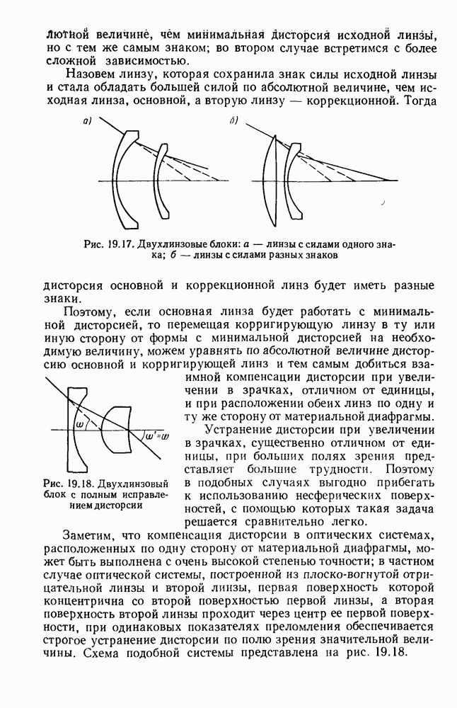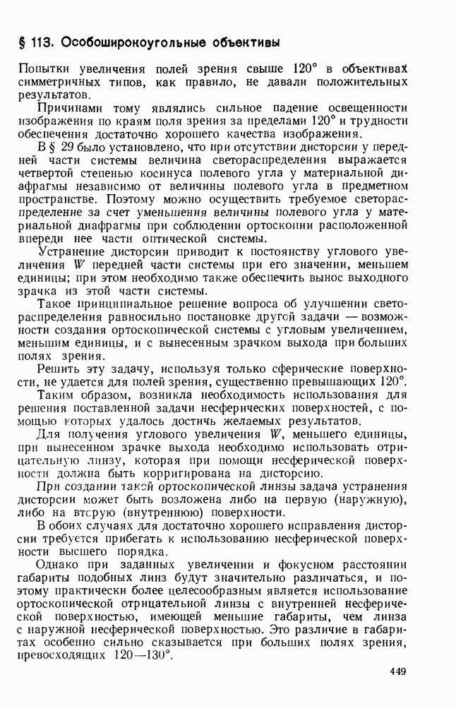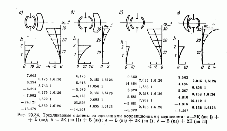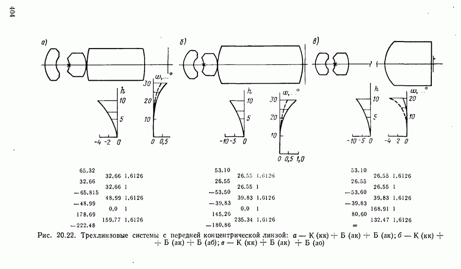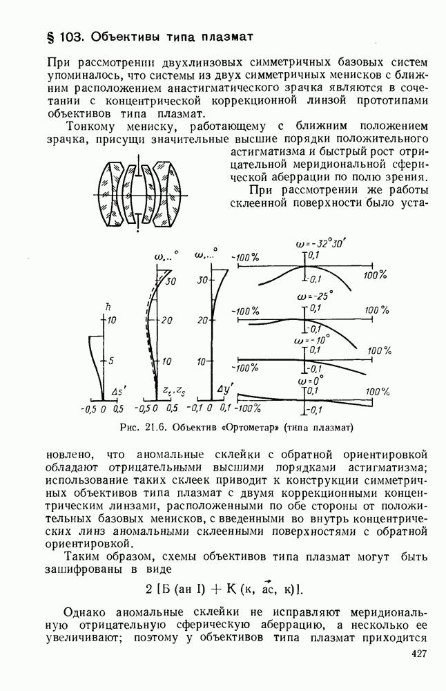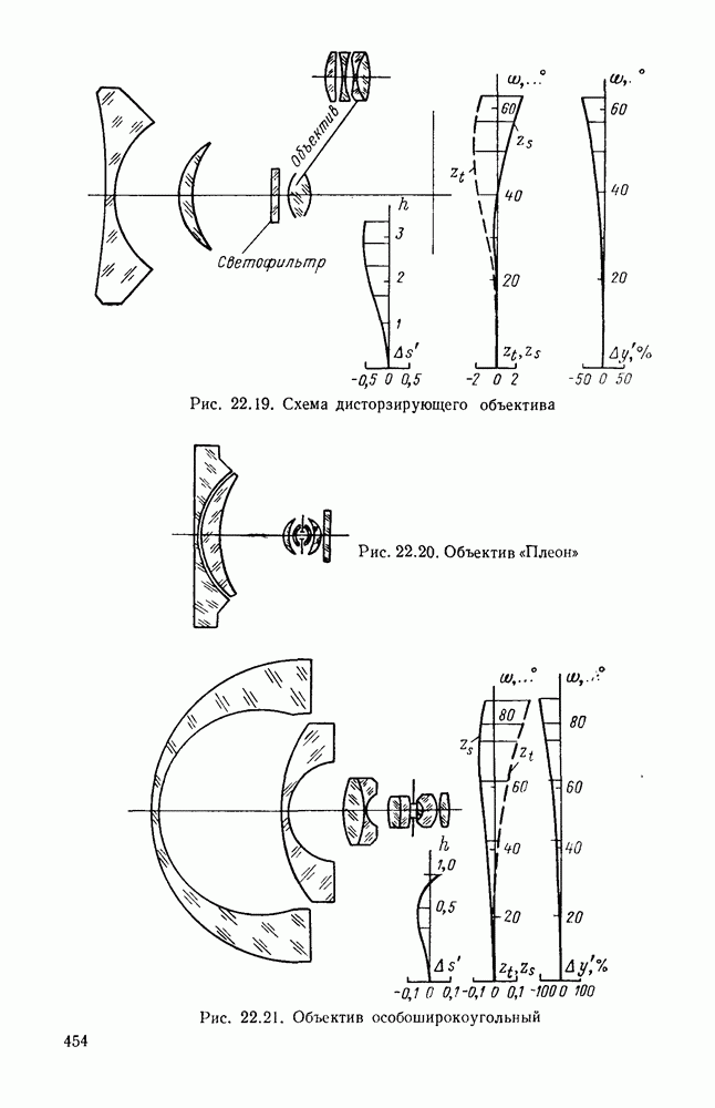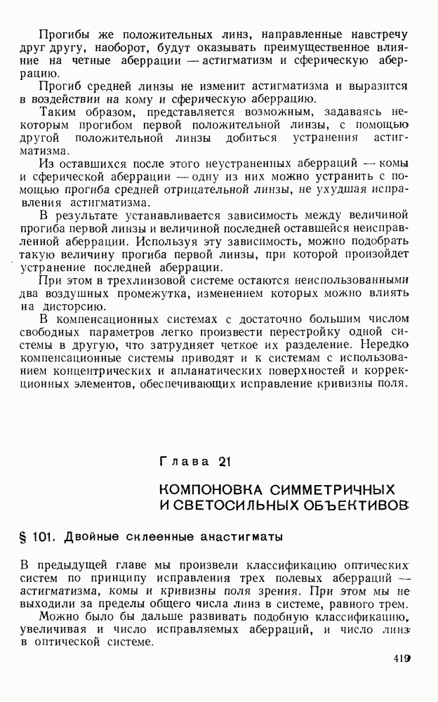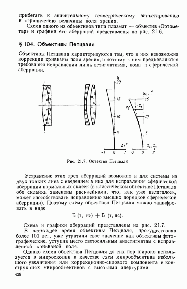 Первая из этих трех схем обладала рядом положительных свойств — возможностью развития большого поля зрения при улучшенном светораспределении и хорошем исправлении полевых аберраций; однако этой схеме присуща значительная положительная сферическая аберрация в зрачках, что неблагоприятно влияет на изменение дисторсии и астигматизма при изменении увеличения.