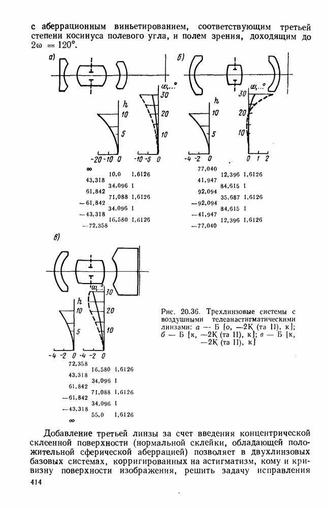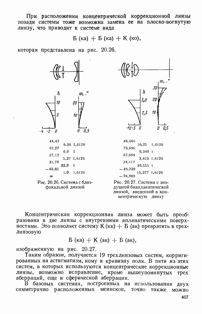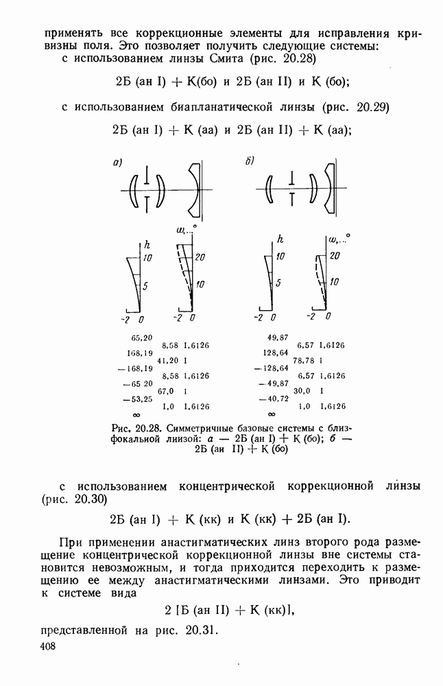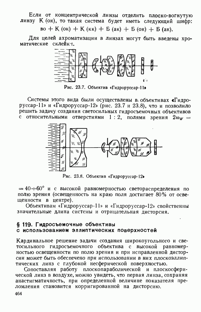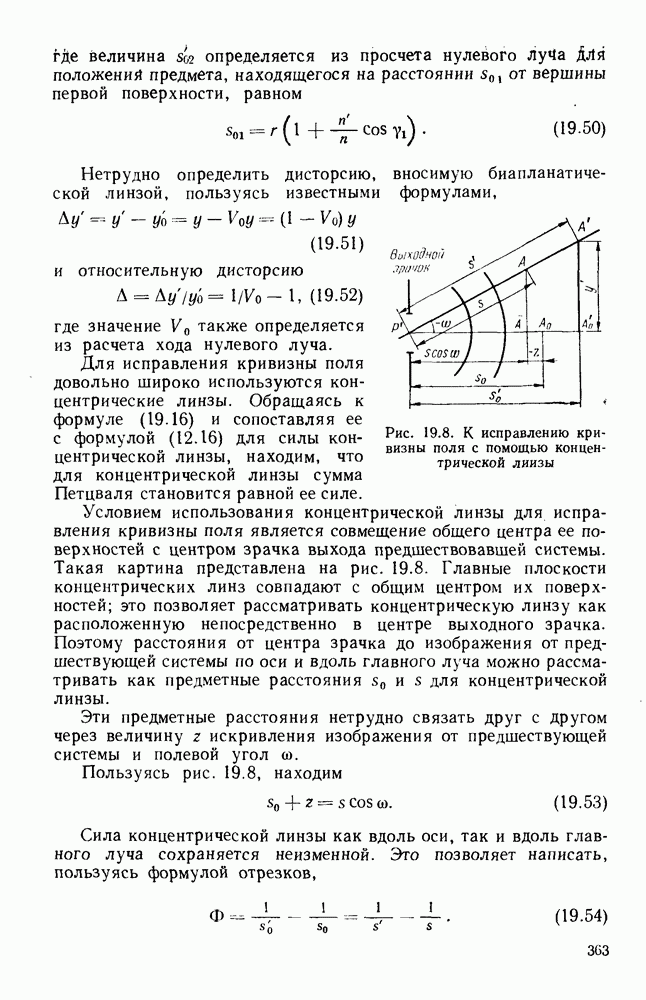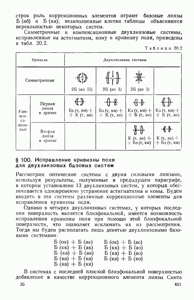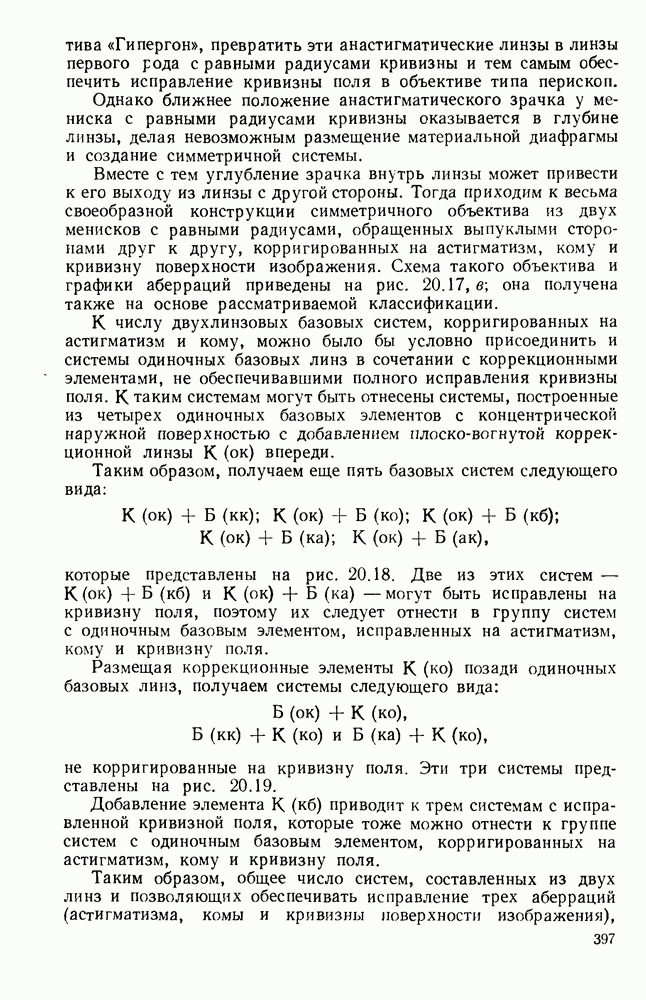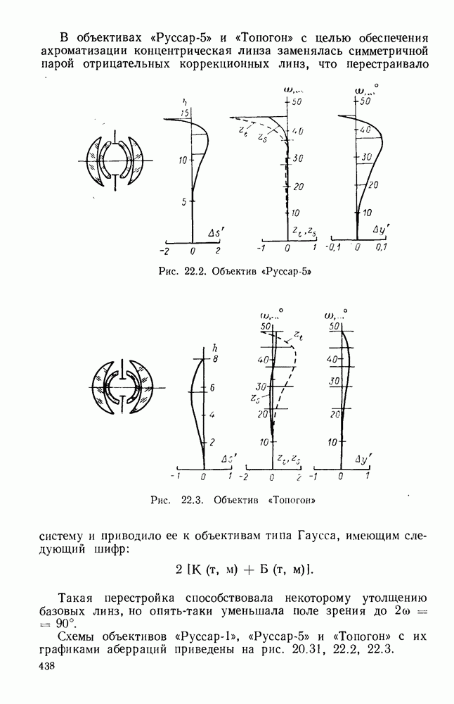 Первая из этих трех схем обладала рядом положительных свойств — возможностью развития большого поля зрения при улучшенном светораспределении и хорошем исправлении полевых аберраций; однако этой схеме присуща значительная положительная сферическая аберрация в зрачках, что неблагоприятно влияет на изменение дисторсии и астигматизма при изменении увеличения.