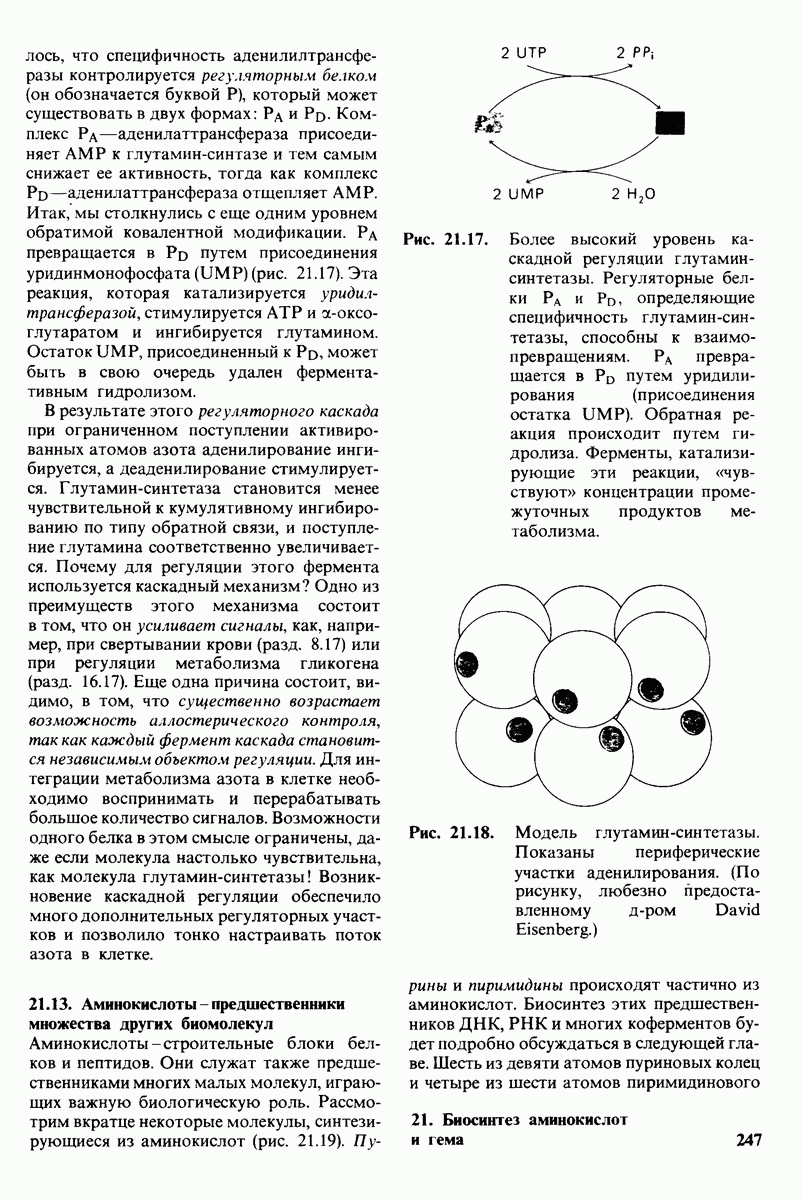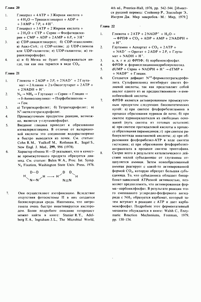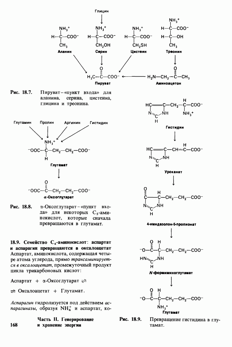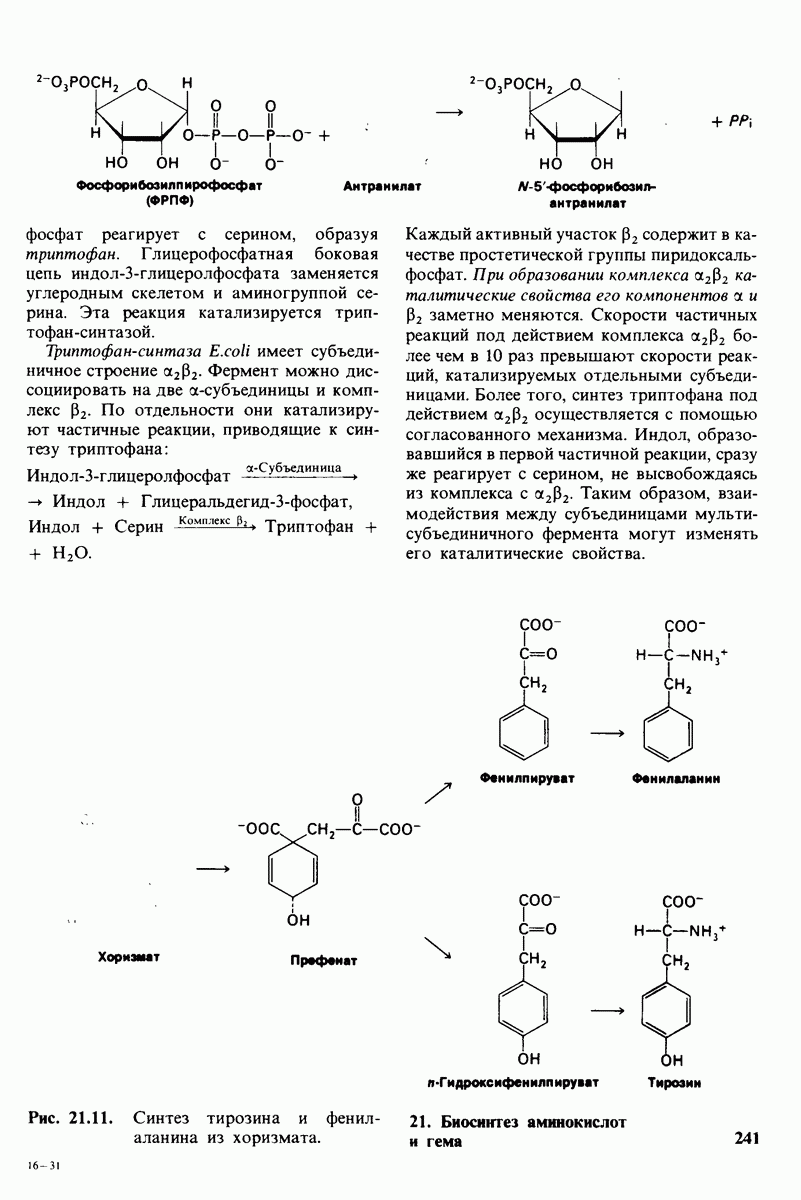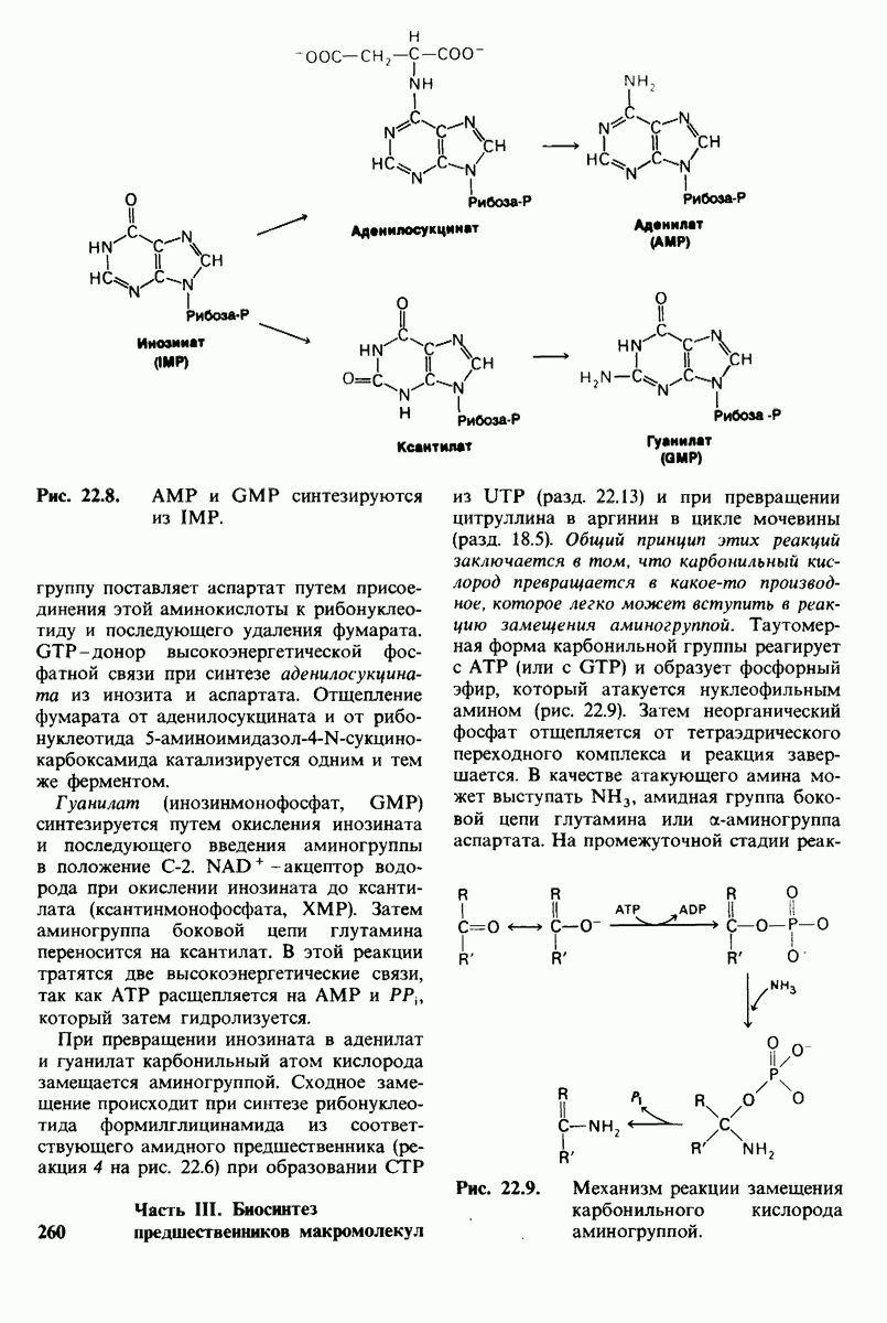 -оксоглутарата уже обсуждался (разд. 21.2), равно как и превращение глутамата в глутамин (разд. 21.2). Глутамат - предшественник еще одной заменимой аминокислоты, пролина. Сначала у-карбоксильная группа глутамата реагирует с АТР, образуя ацилфосфат. Этот смешанный ангидрид восстанавливается до альдегида. у-Полуальдегид глутамата циклизуется с отщеплением