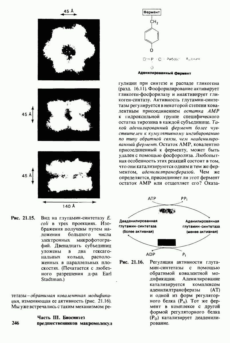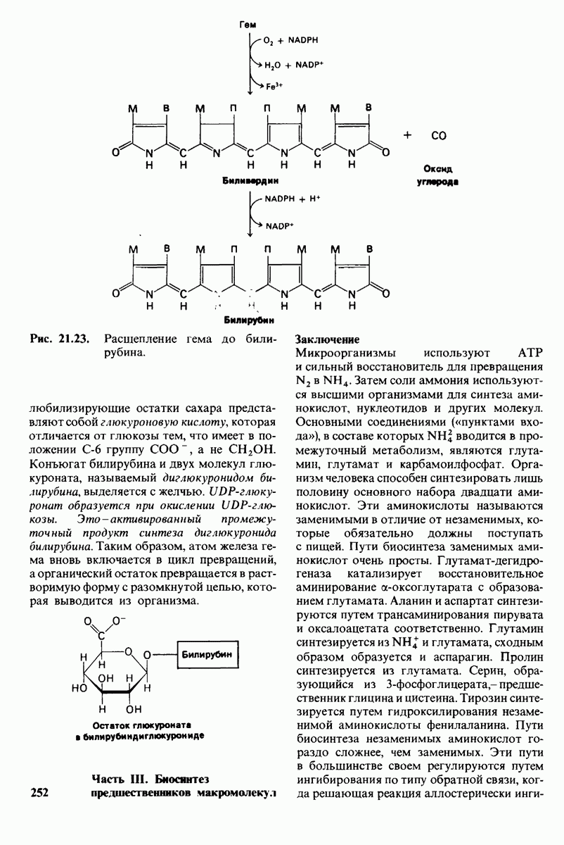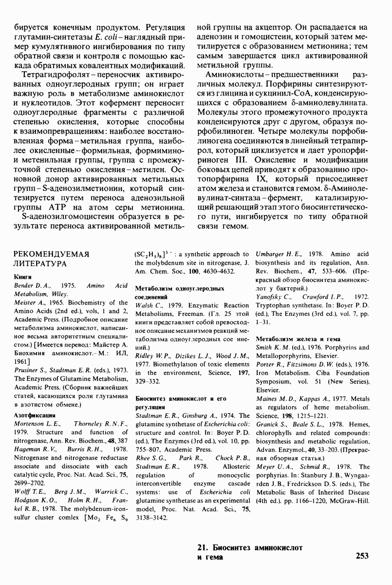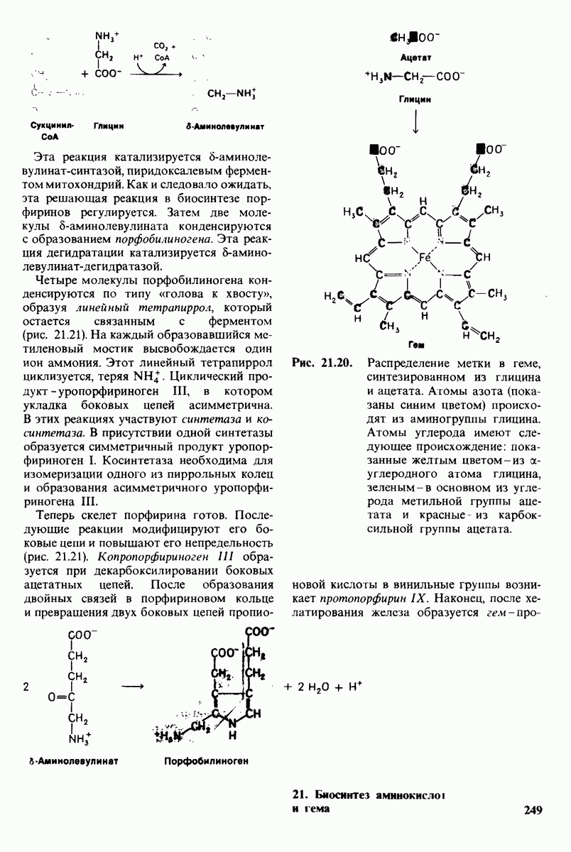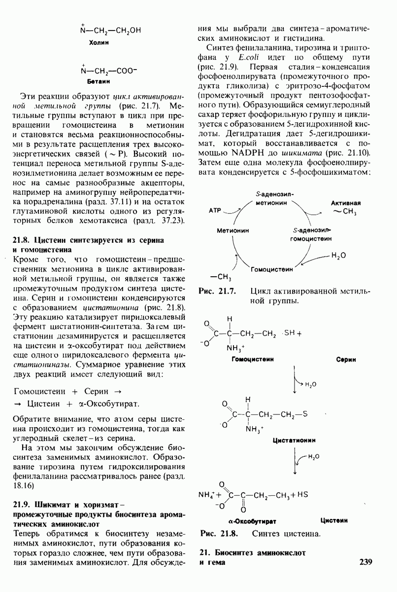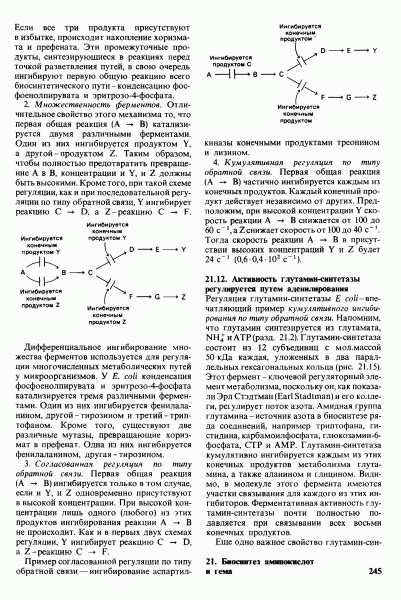 -оксоглутарата уже обсуждался (разд. 21.2), равно как и превращение глутамата в глутамин (разд. 21.2). Глутамат - предшественник еще одной заменимой аминокислоты, пролина. Сначала у-карбоксильная группа глутамата реагирует с АТР, образуя ацилфосфат. Этот смешанный ангидрид восстанавливается до альдегида. у-Полуальдегид глутамата циклизуется с отщеплением