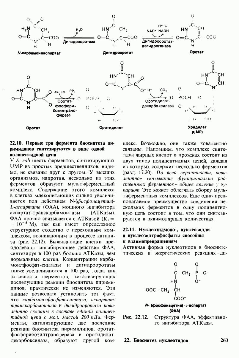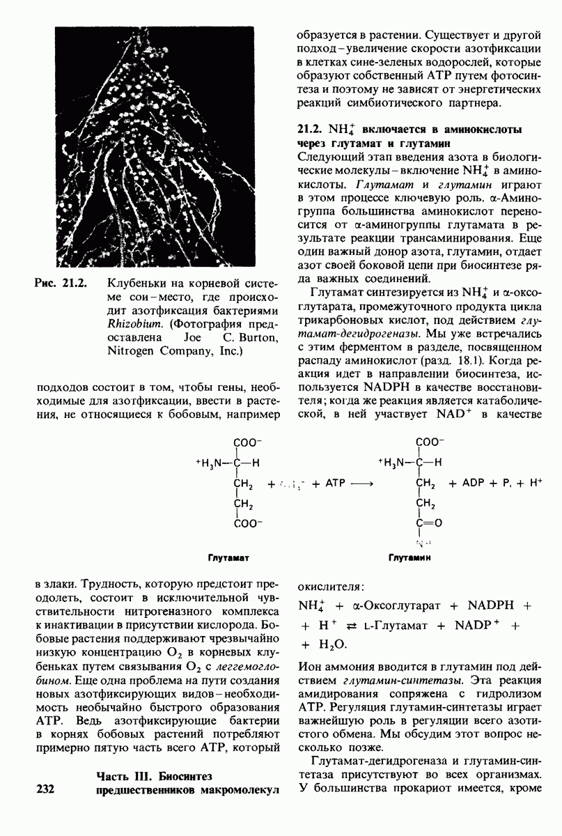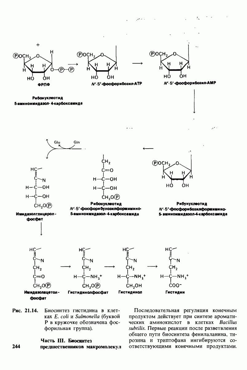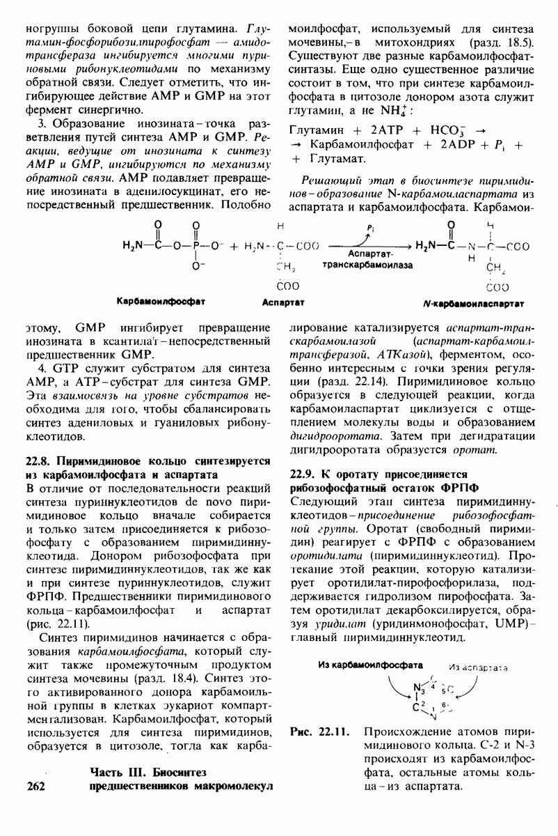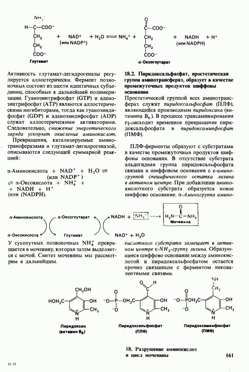 -оксоглутарата уже обсуждался (разд. 21.2), равно как и превращение глутамата в глутамин (разд. 21.2). Глутамат - предшественник еще одной заменимой аминокислоты, пролина. Сначала у-карбоксильная группа глутамата реагирует с АТР, образуя ацилфосфат. Этот смешанный ангидрид восстанавливается до альдегида. у-Полуальдегид глутамата циклизуется с отщеплением