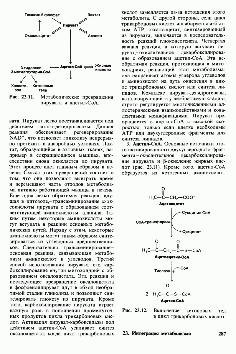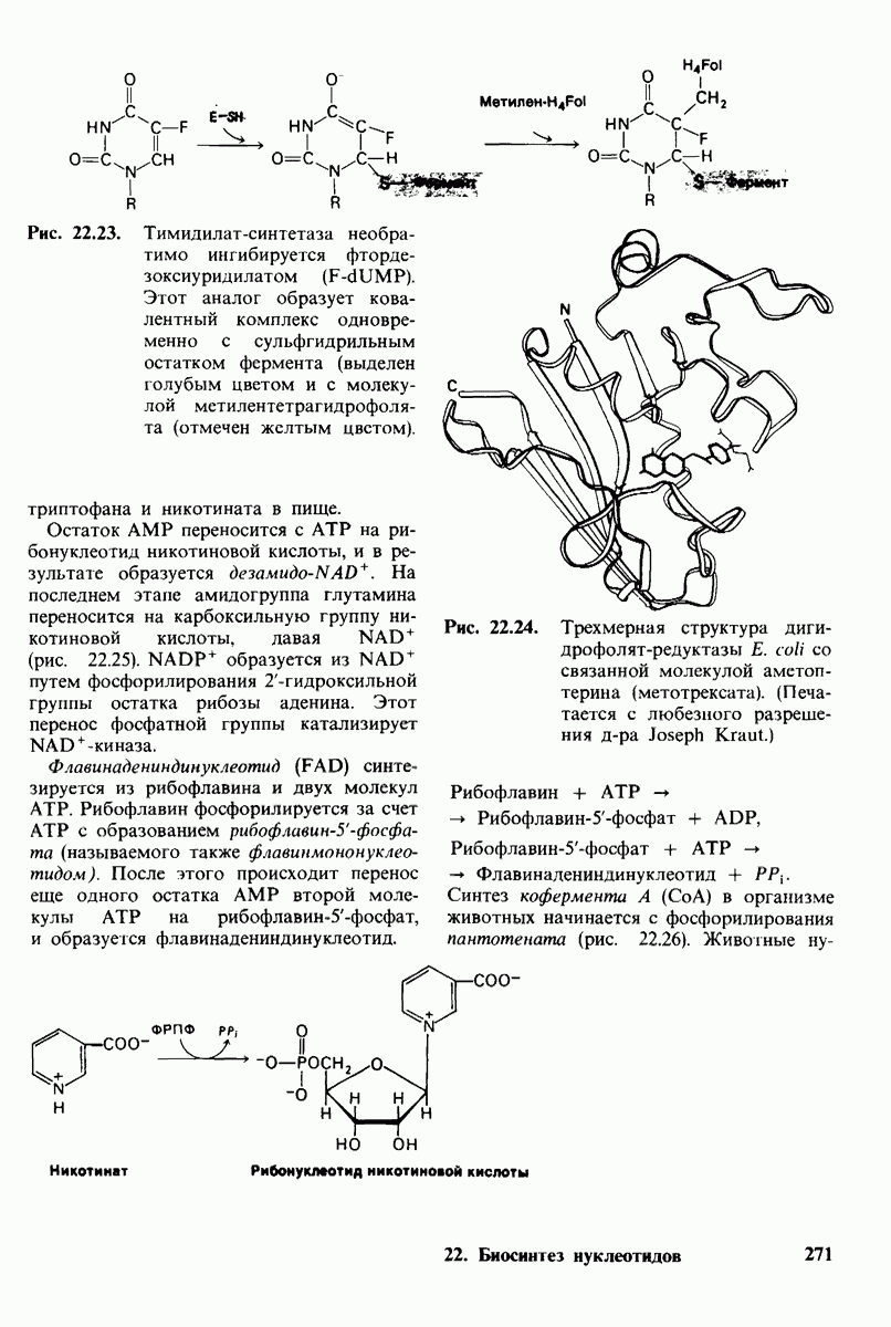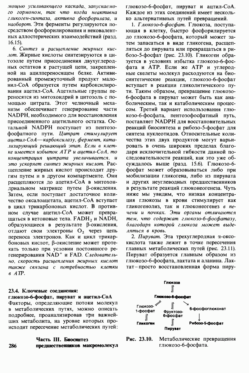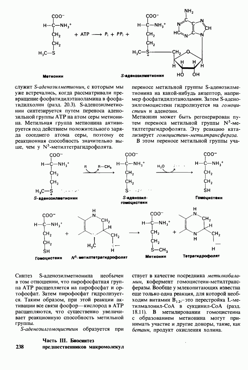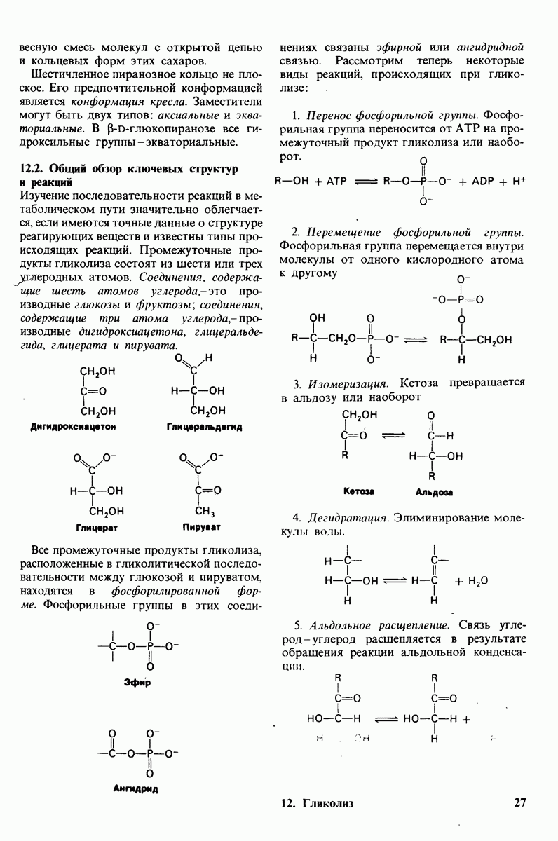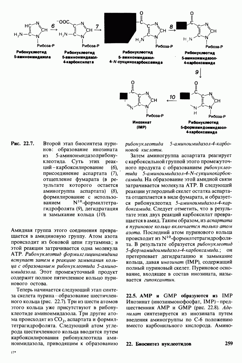 -оксоглутарата уже обсуждался (разд. 21.2), равно как и превращение глутамата в глутамин (разд. 21.2). Глутамат - предшественник еще одной заменимой аминокислоты, пролина. Сначала у-карбоксильная группа глутамата реагирует с АТР, образуя ацилфосфат. Этот смешанный ангидрид восстанавливается до альдегида. у-Полуальдегид глутамата циклизуется с отщеплением