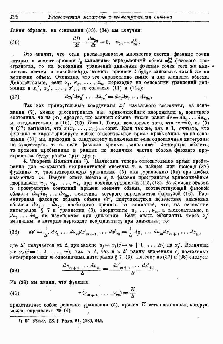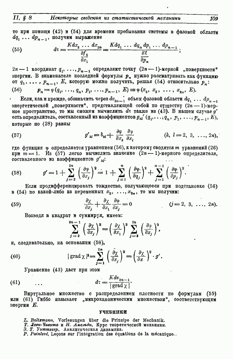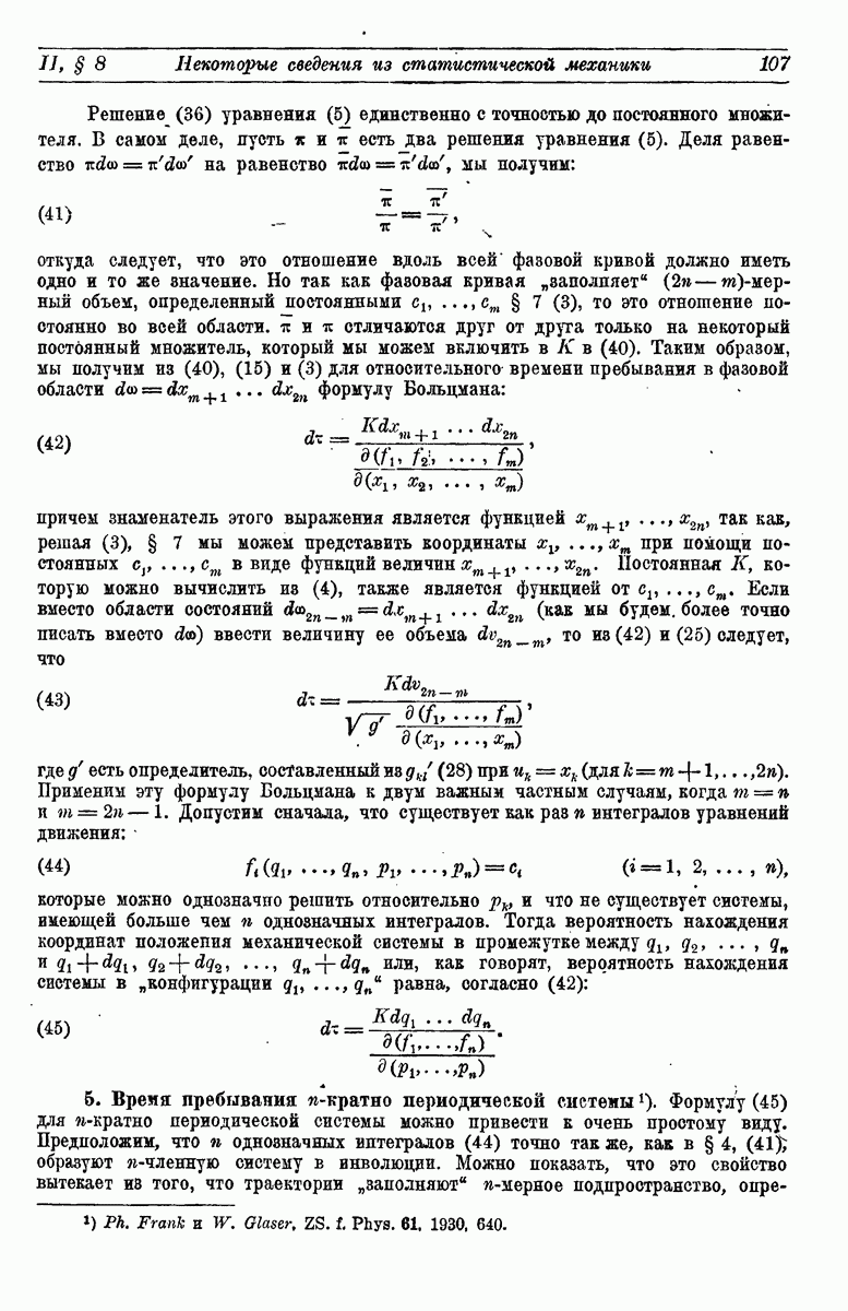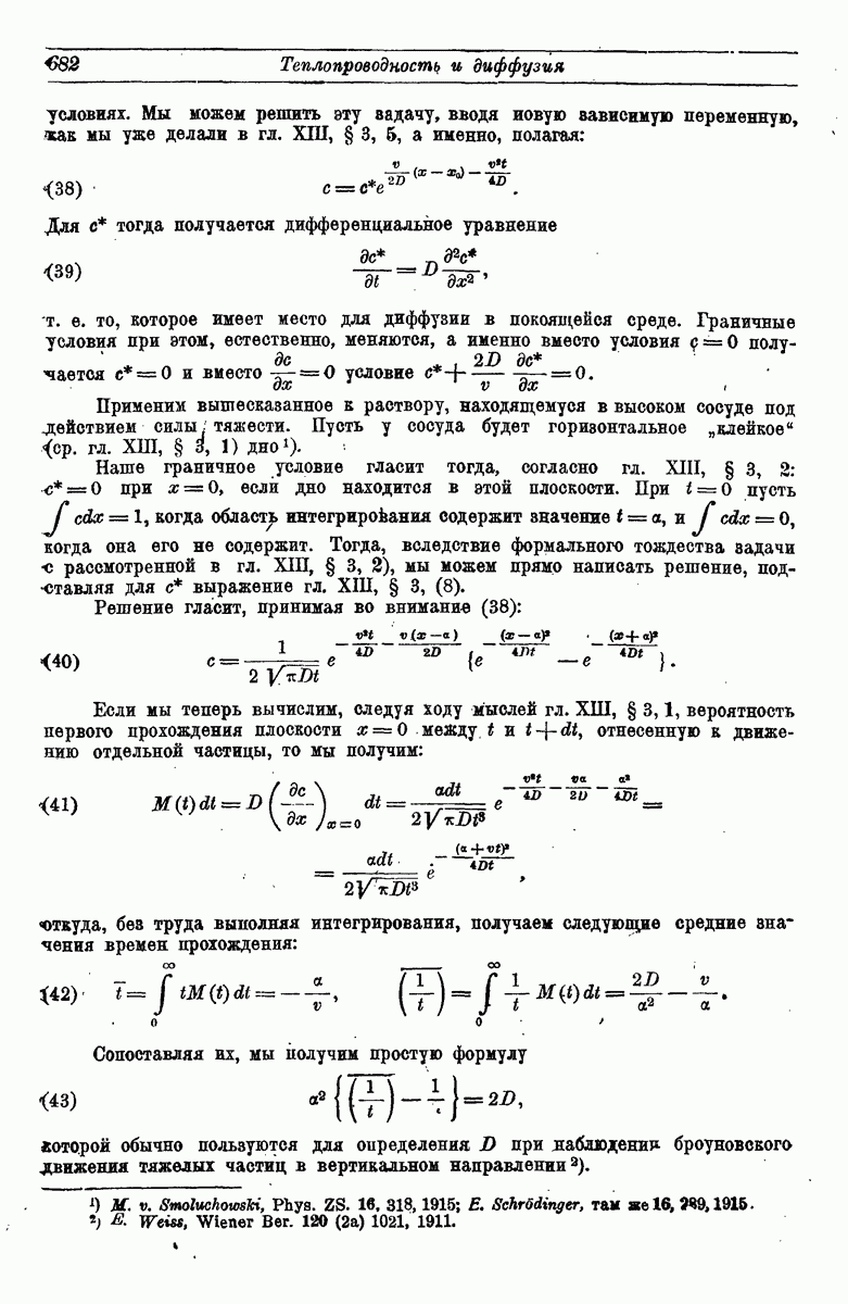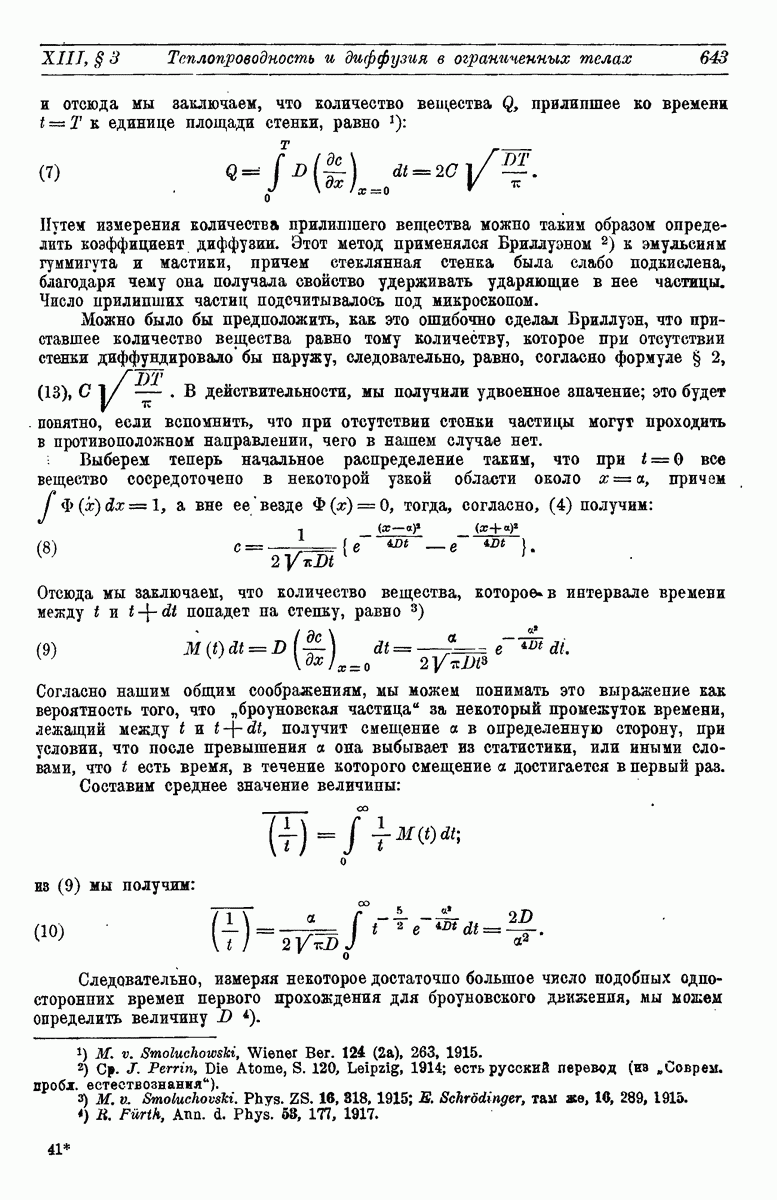 с одной стороны, и формальное сходство между дифференциальным уравнением (1) и уравнением классической статистики Фоккера и Планка § 1, (13), с другой, позволяют предположить, что между волновой механикой и теорией диффузии существует определенная связь. Если исходить из большого семейства одинаковых систем, начальные положения которых в пространстве конфигураций в начальный момент времени распределены с относительной частотой