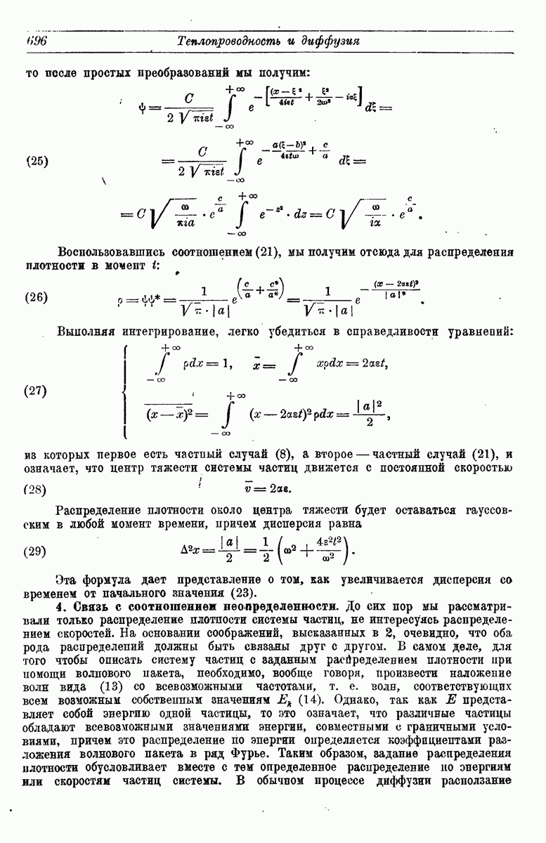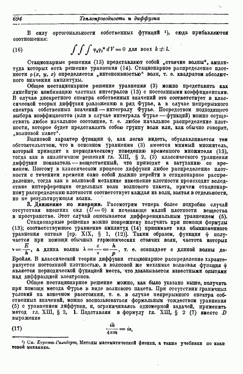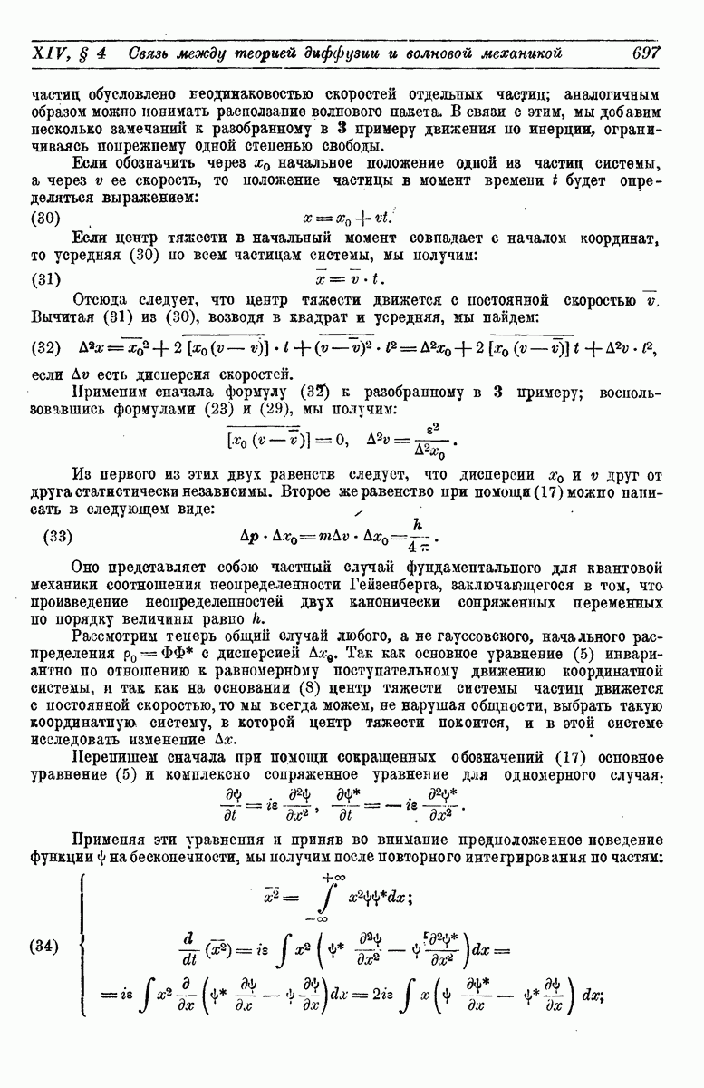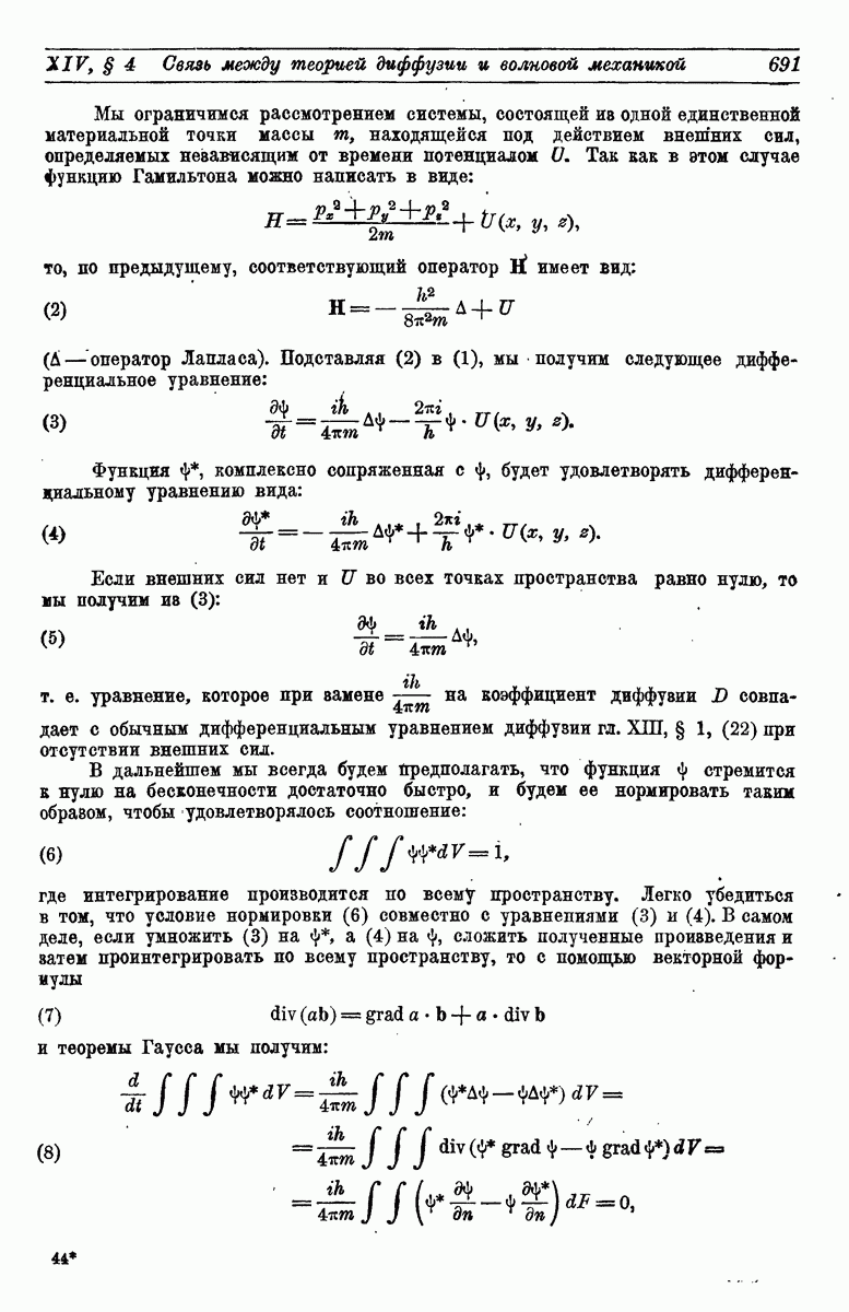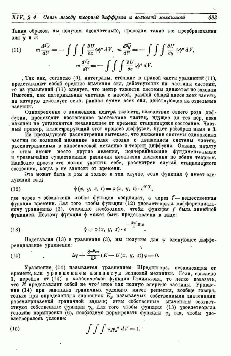 получается из начального распределения посредством некоторого обобщенного процесса диффузии. Однако между волновой механикой и классической теорией диффузии существует глубокое различие, заключающееся, во-первых, в том, что в основное уравнение (1) входит мнимый