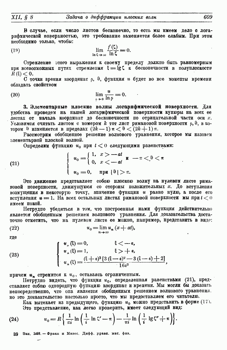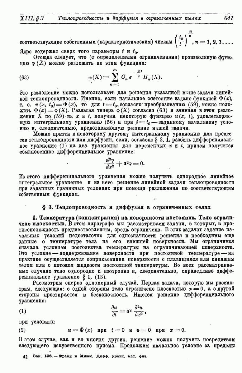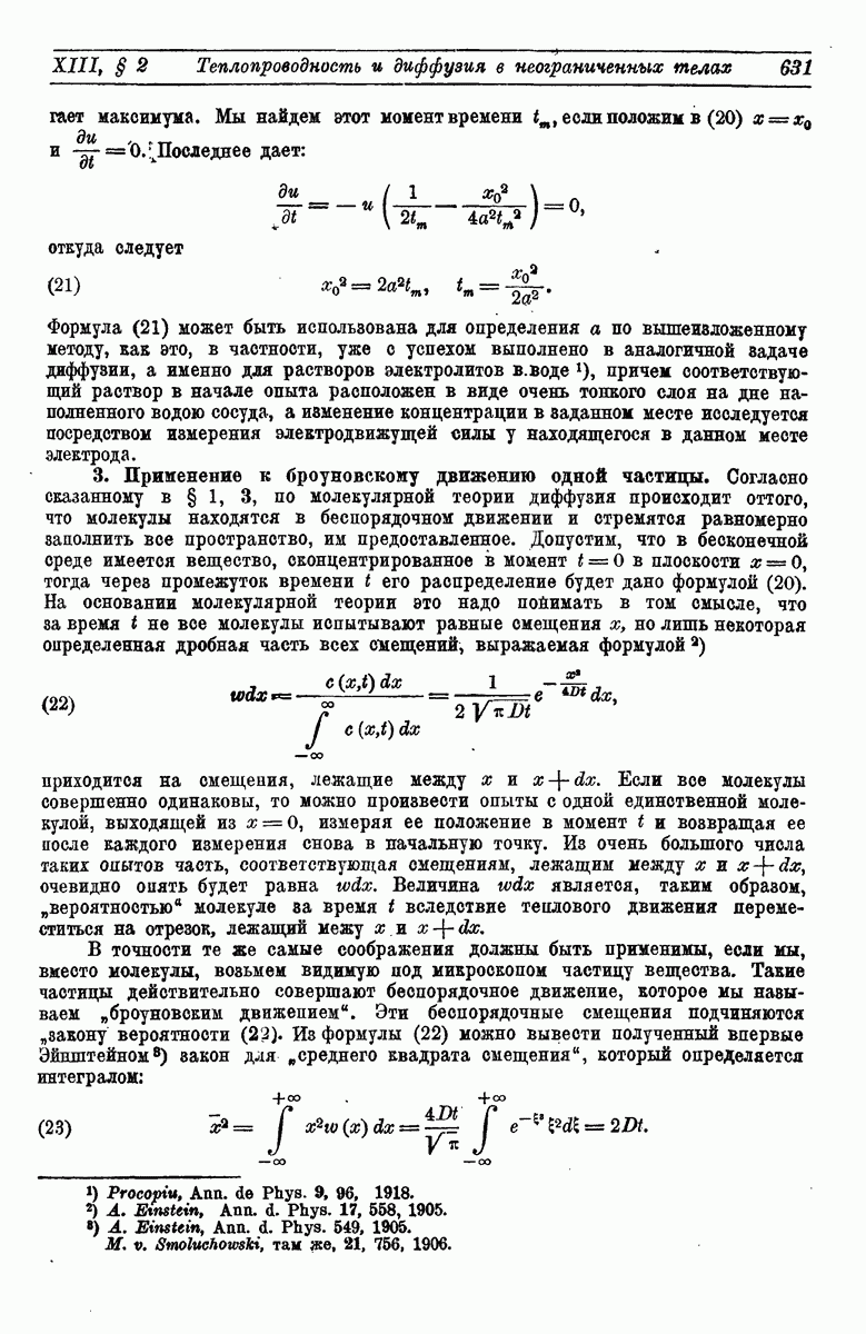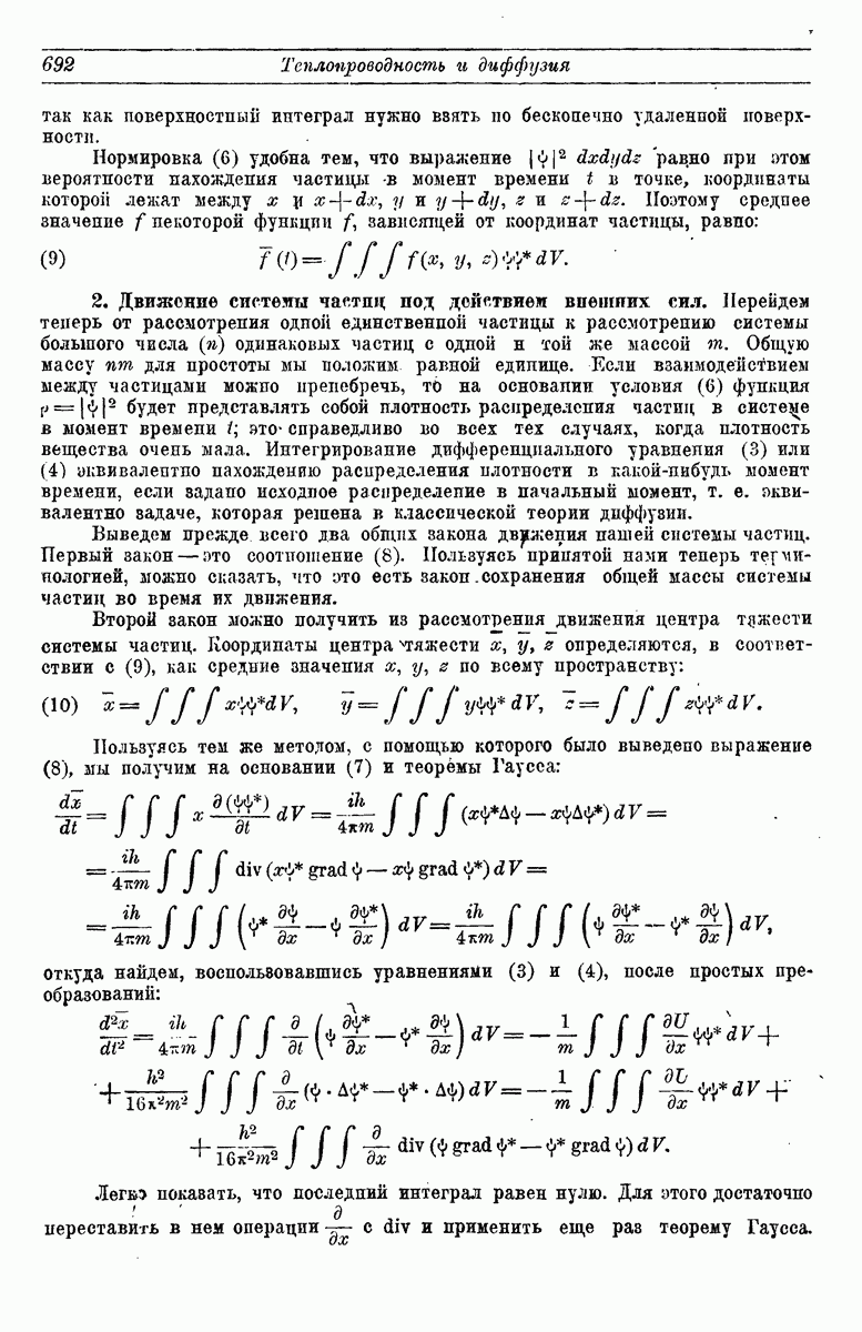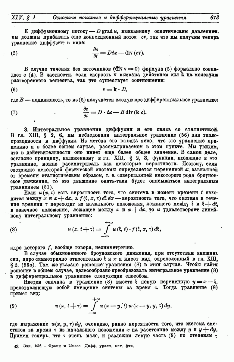 получается из начального распределения посредством некоторого обобщенного процесса диффузии. Однако между волновой механикой и классической теорией диффузии существует глубокое различие, заключающееся, во-первых, в том, что в основное уравнение (1) входит мнимый