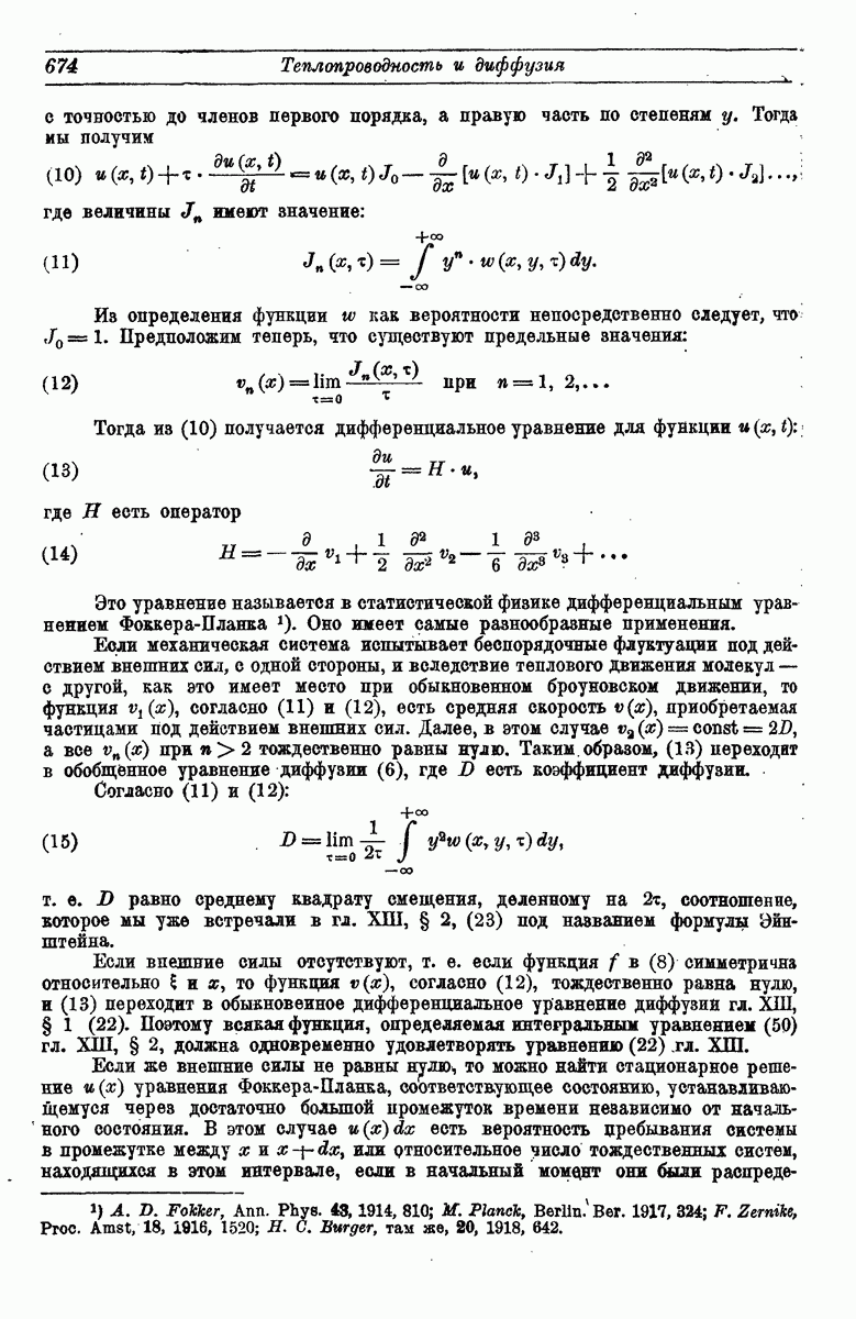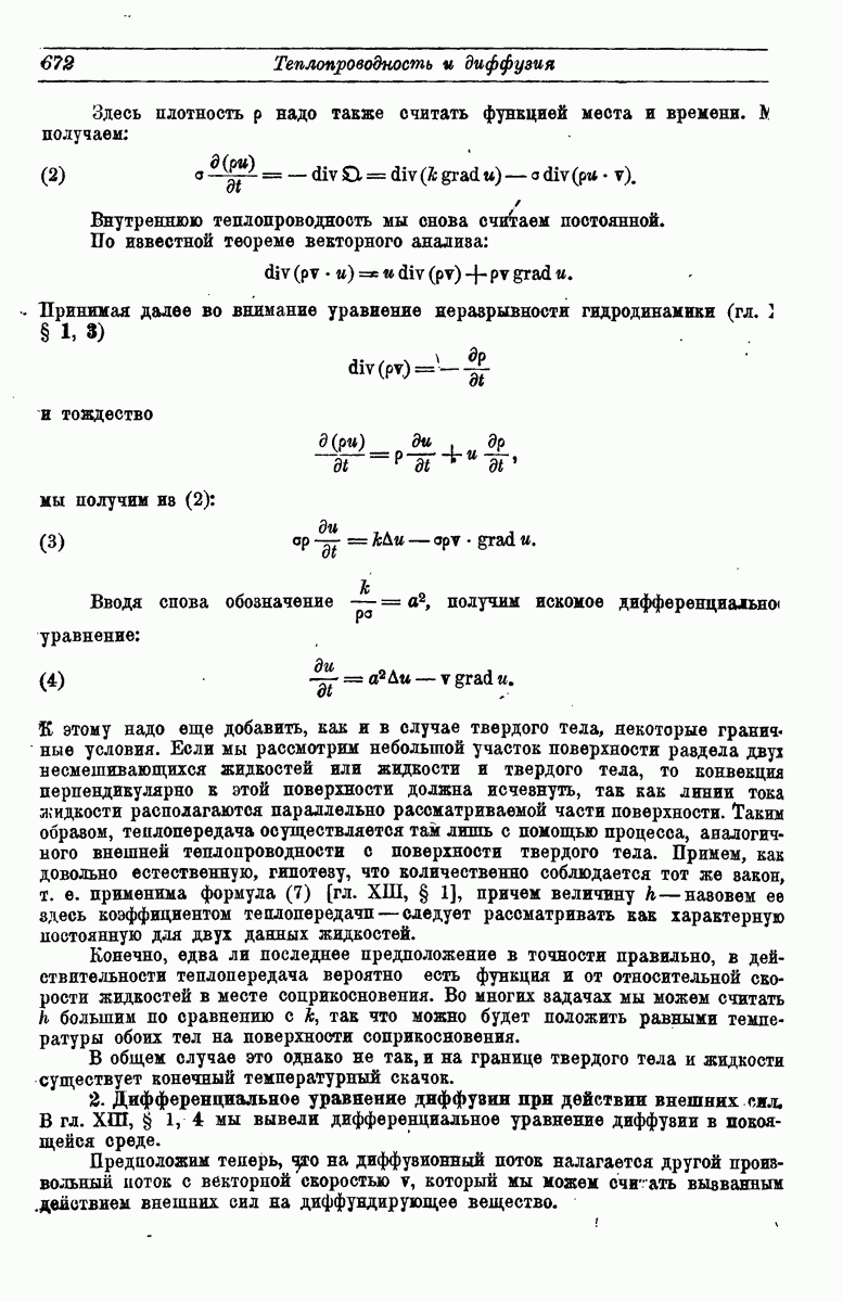 совпадает с обычным дифференциальным уравнением диффузии гл. ХIII, § 1, (22) при отсутствии внешних сил.