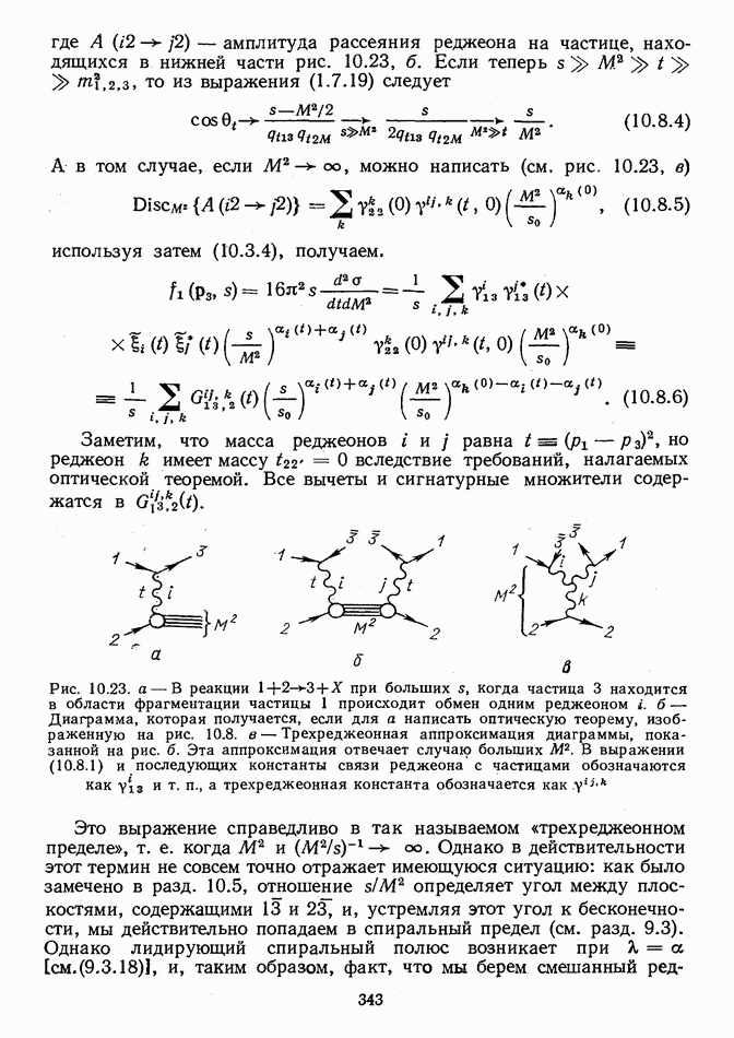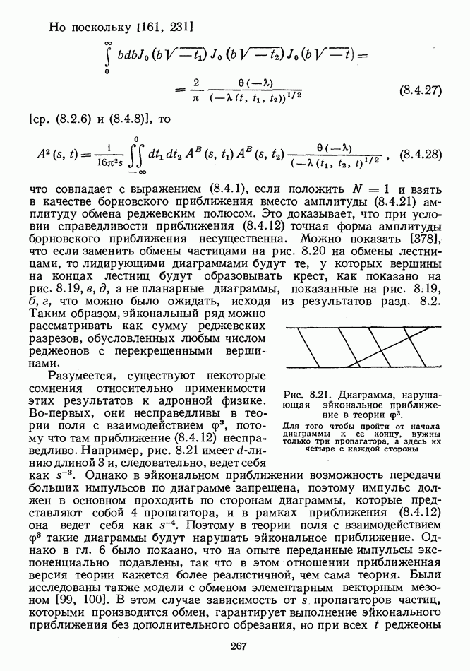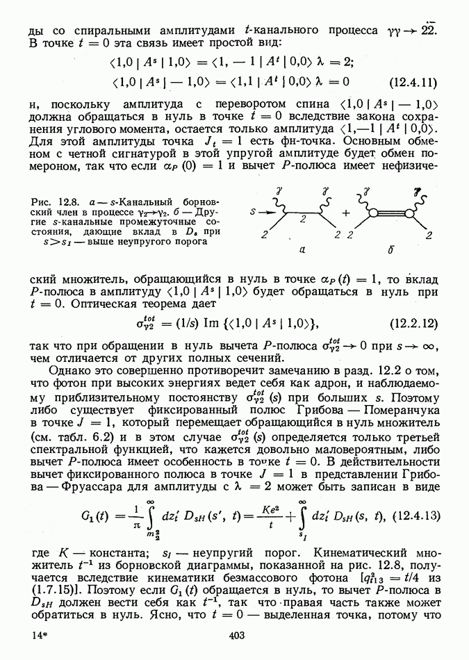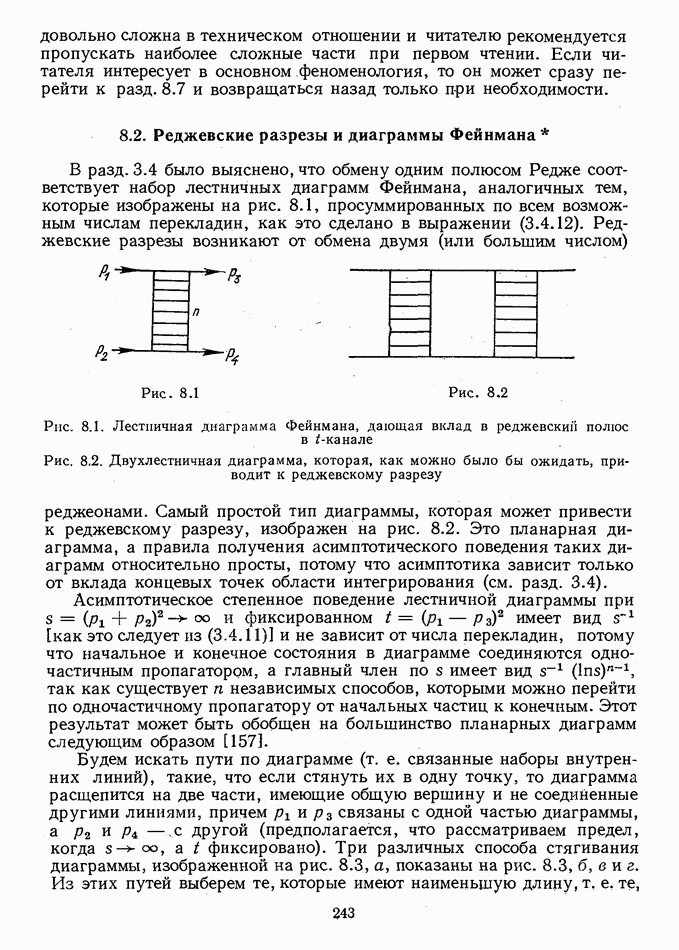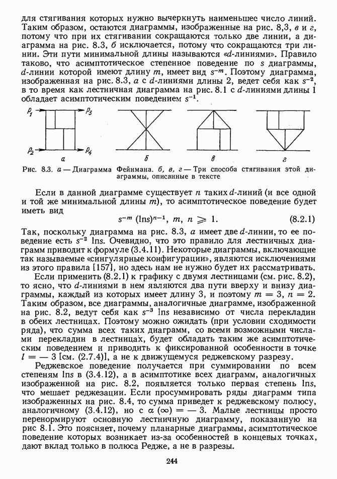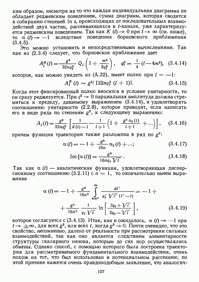Если вспомнить о представлении Грибова-Фруассара (2.6.2), то становится совершенно очевидным, что степень s в (3.4.13) можно идентифицировать с лидирующей реджевской траекторией в Таким образом, несмотря на то что каждая индивидуальная диаграмма не обладает реджевским поведением, сумма диаграмм, которая сводится к собиранию степеней Это можно установить и непосредственными вычислениями. Так как из (2.3.4) следует, что борновское приближение дает