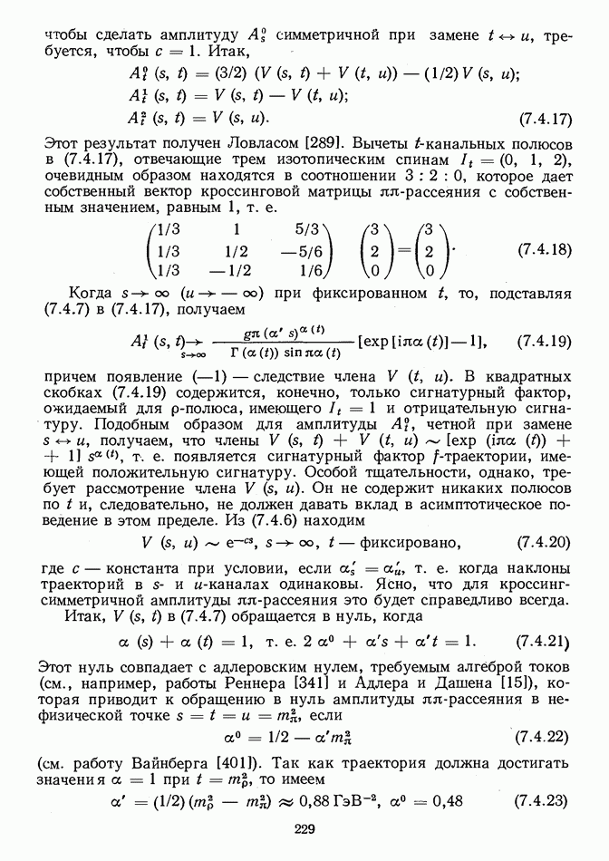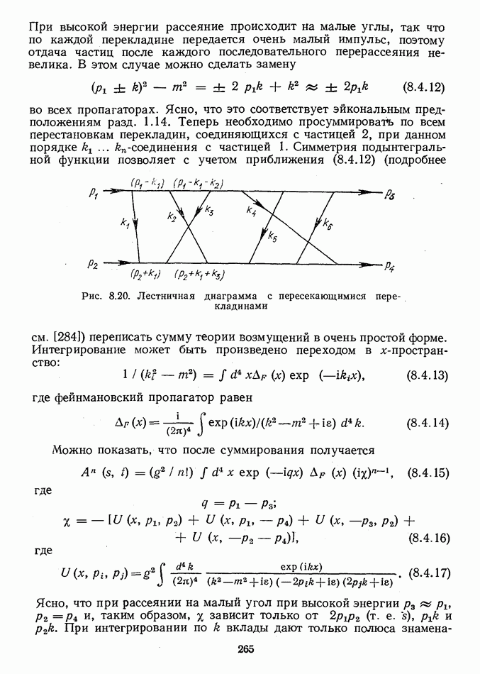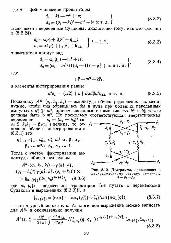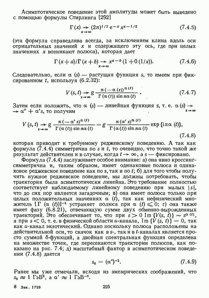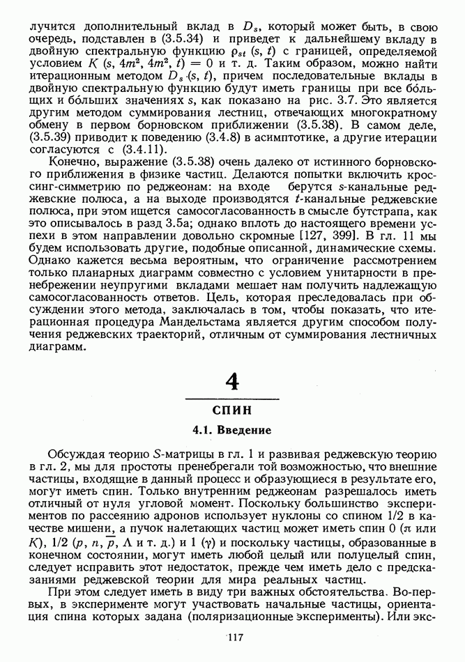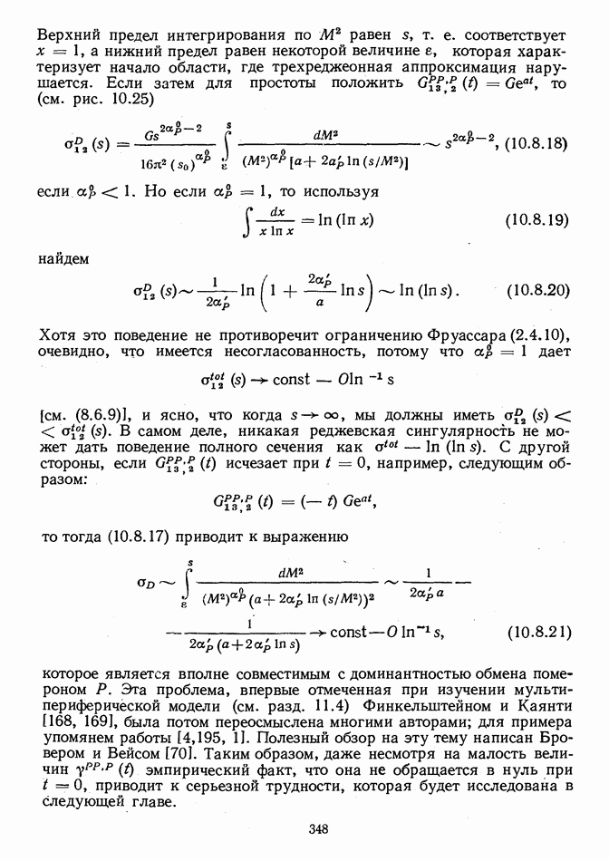 Если вспомнить о представлении Грибова-Фруассара (2.6.2), то становится совершенно очевидным, что степень s в (3.4.13) можно идентифицировать с лидирующей реджевской траекторией в Таким образом, несмотря на то что каждая индивидуальная диаграмма не обладает реджевским поведением, сумма диаграмм, которая сводится к собиранию степеней Это можно установить и непосредственными вычислениями. Так как из (2.3.4) следует, что борновское приближение дает