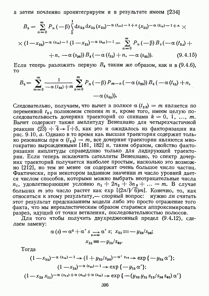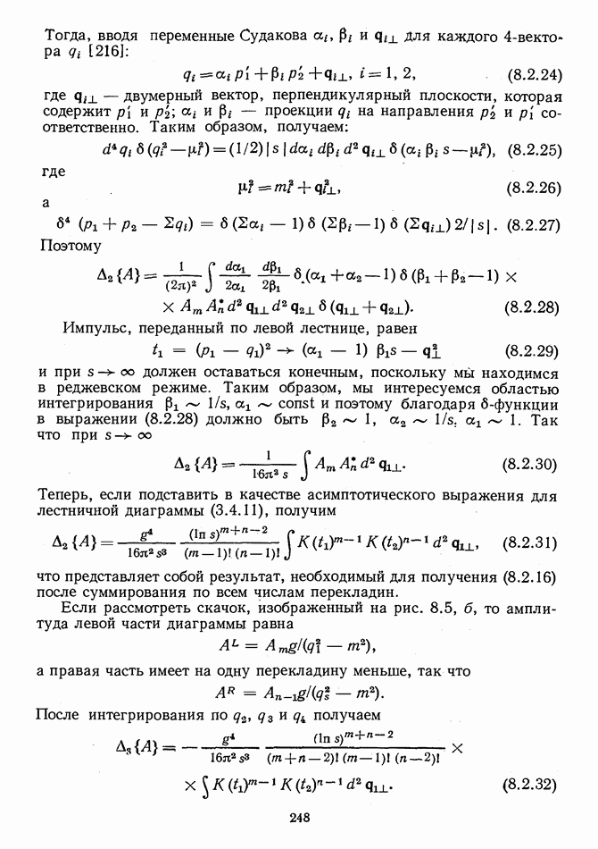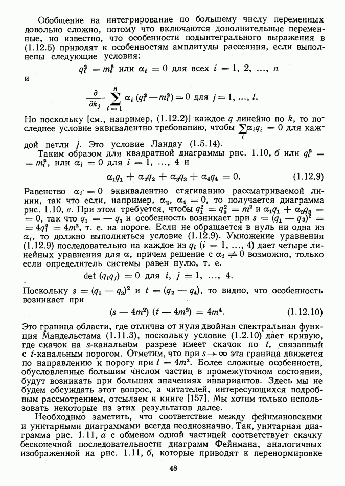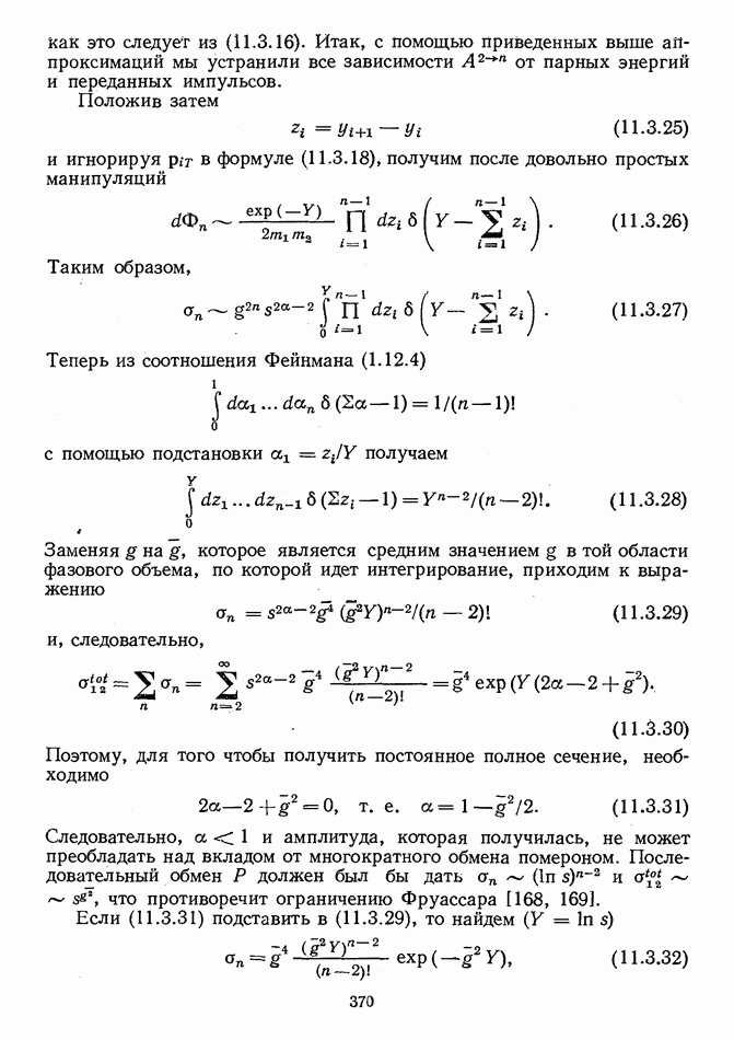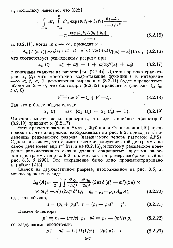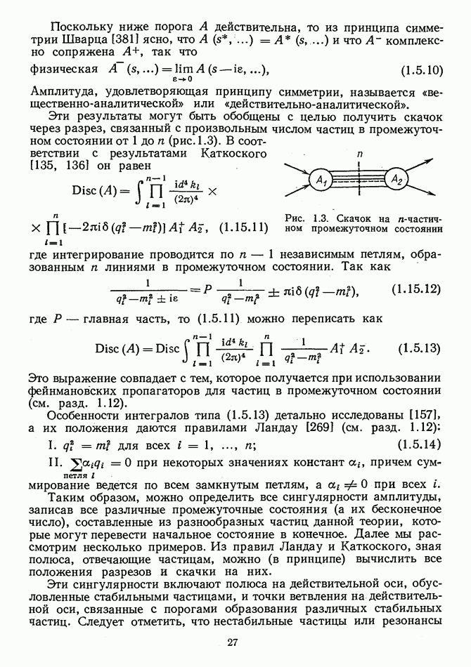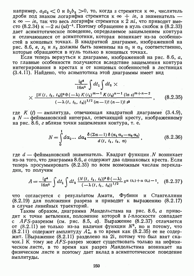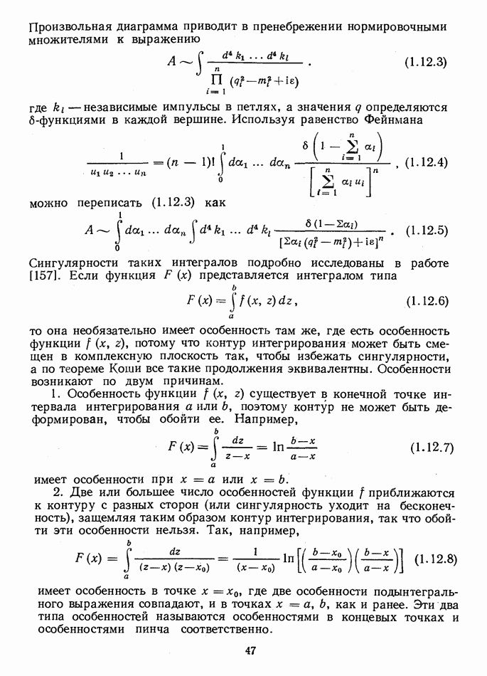 Это выражение можно получить с помощью (2.2.18) и Для того чтобы получить такие составные частицы, необходимо рассмотреть бесконечные совокупности фейнмановских диаграмм и при этом предположить, что асимптотическое поведение этих совокупностей диаграмм может быть получено простым суммированием главных членов асимптотик отдельных диаграмм. Этот факт может не быть строгим в математическом смысле, однако по меньшей мере при малых константах связи, где ряду теории возмущений можно придать некоторый смысл, он кажется весьма правдоподобным. Значительно более полный обзор затронутых выше проблем можно найти в книге Идена и др. [157, гл. 3]. Здесь же мы в основном будем касаться вопросов, связаных с получением формулы (3.4.11). Рассмотрим фейнмановский интеграл общего вида (1.12.5) с