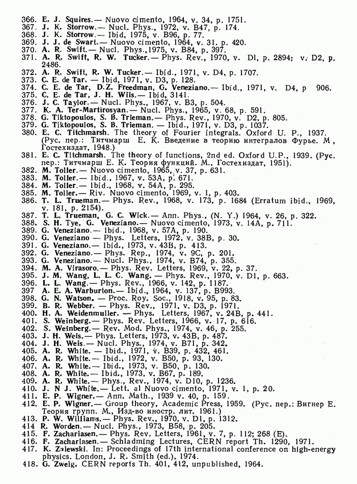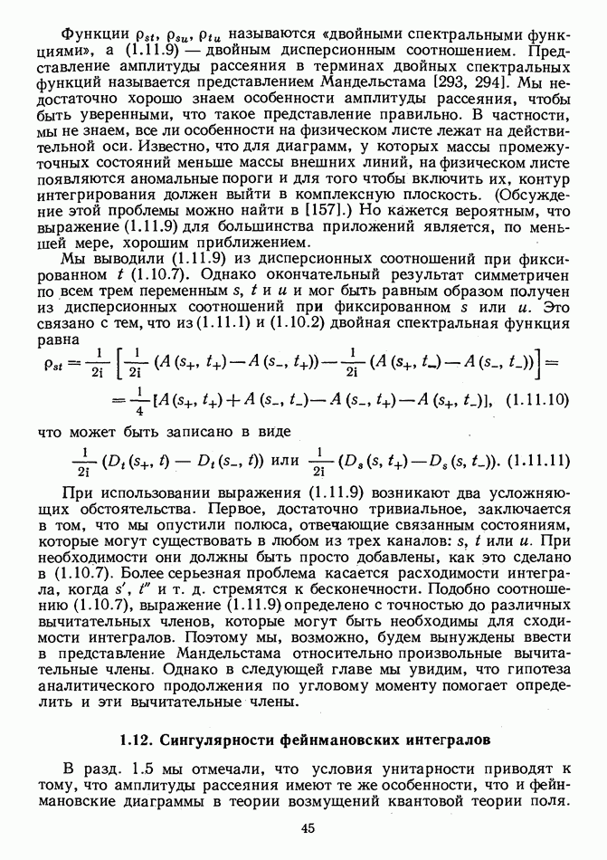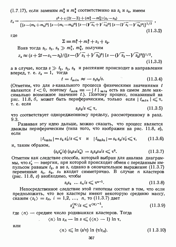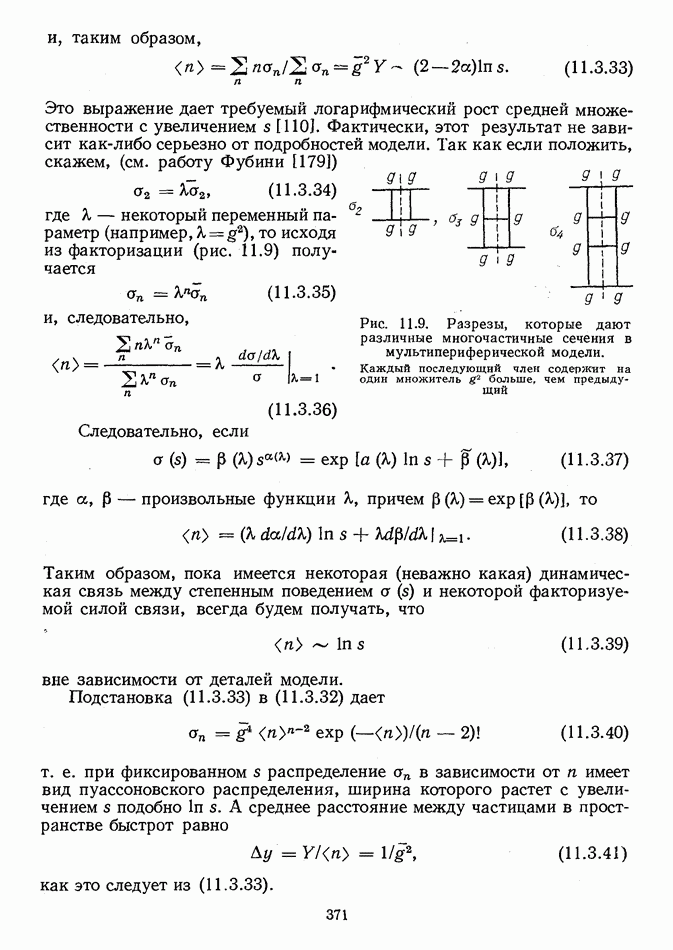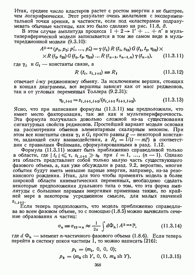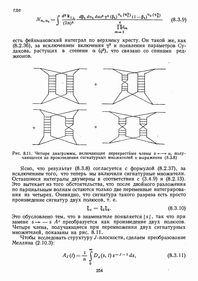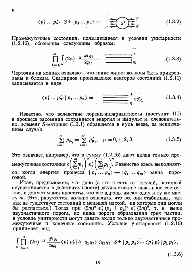 Это выражение можно получить с помощью (2.2.18) и Для того чтобы получить такие составные частицы, необходимо рассмотреть бесконечные совокупности фейнмановских диаграмм и при этом предположить, что асимптотическое поведение этих совокупностей диаграмм может быть получено простым суммированием главных членов асимптотик отдельных диаграмм. Этот факт может не быть строгим в математическом смысле, однако по меньшей мере при малых константах связи, где ряду теории возмущений можно придать некоторый смысл, он кажется весьма правдоподобным. Значительно более полный обзор затронутых выше проблем можно найти в книге Идена и др. [157, гл. 3]. Здесь же мы в основном будем касаться вопросов, связаных с получением формулы (3.4.11). Рассмотрим фейнмановский интеграл общего вида (1.12.5) с