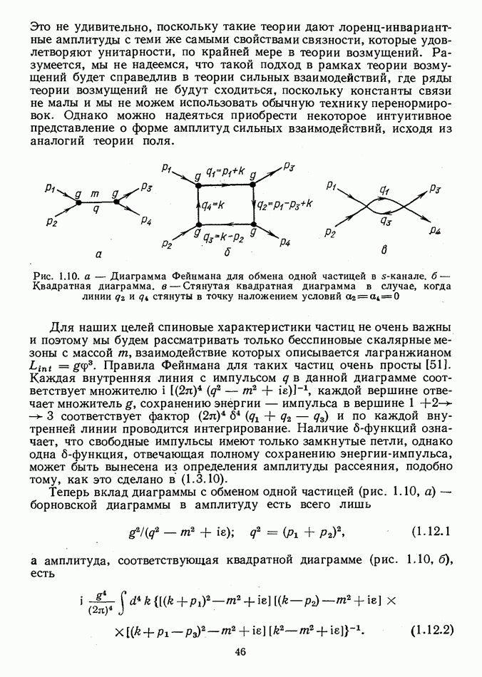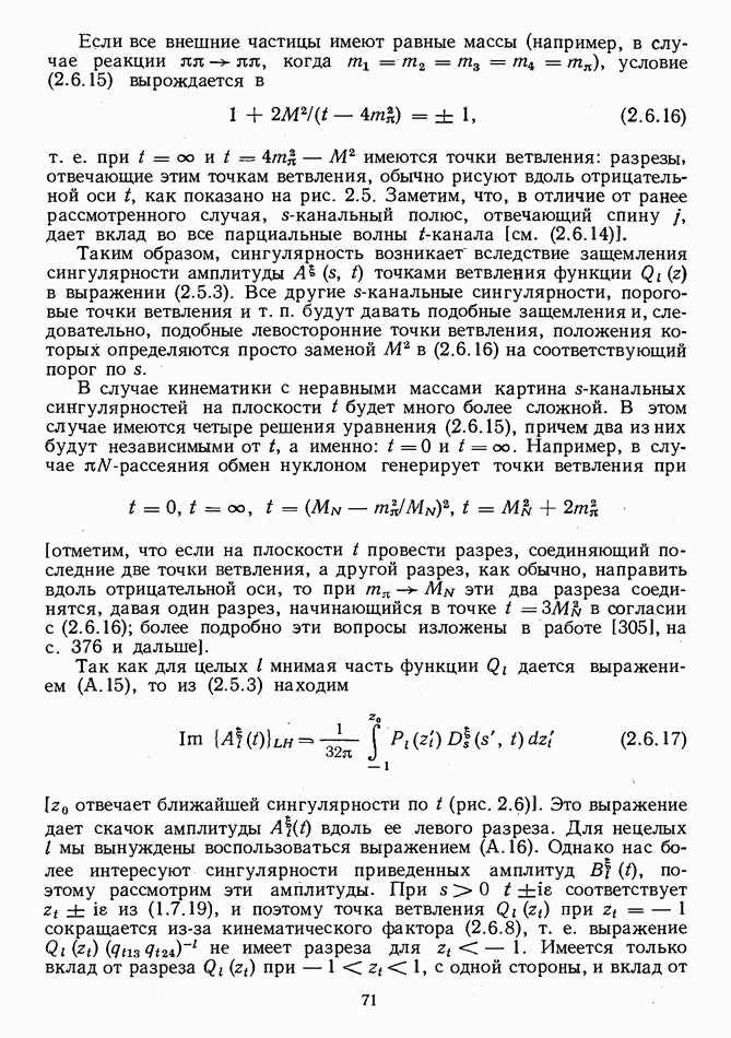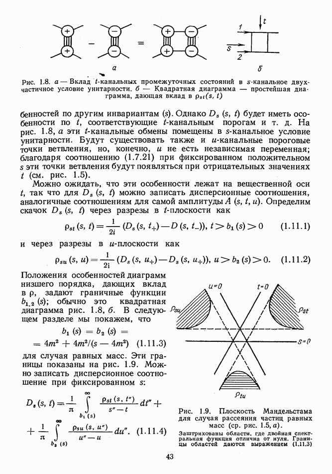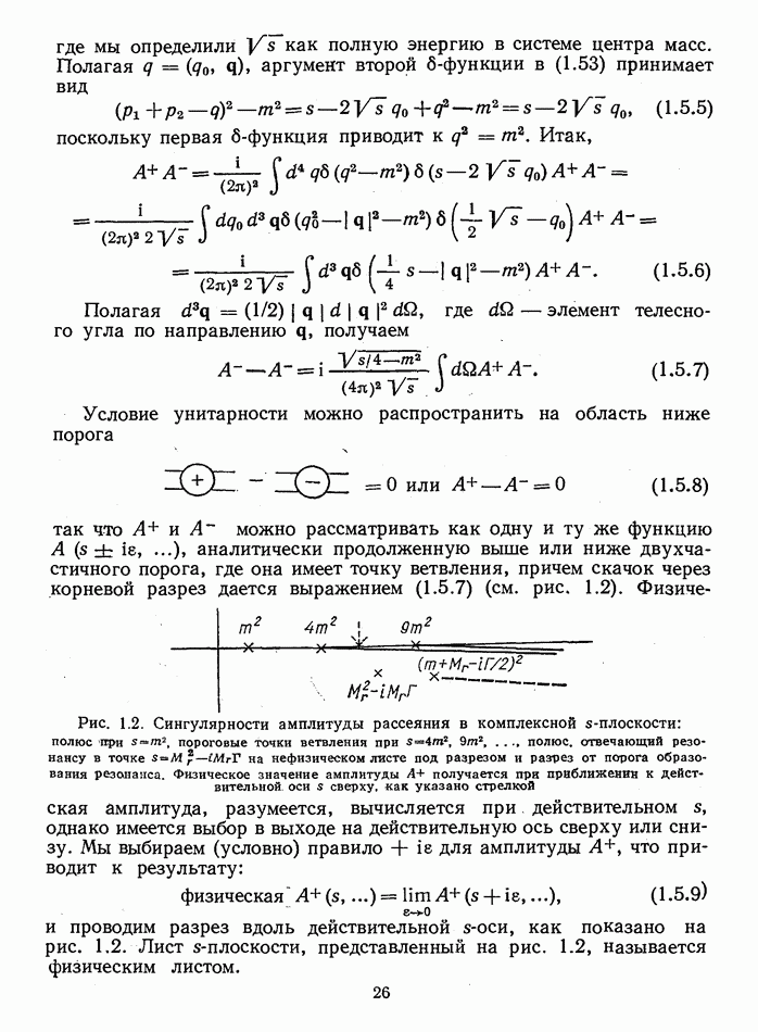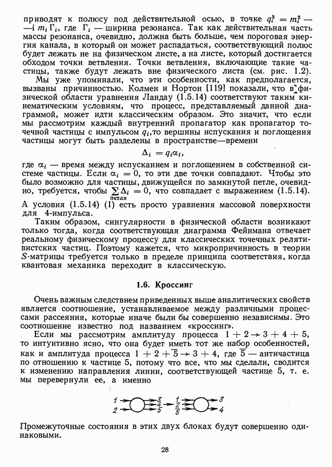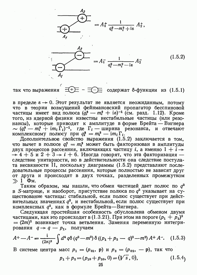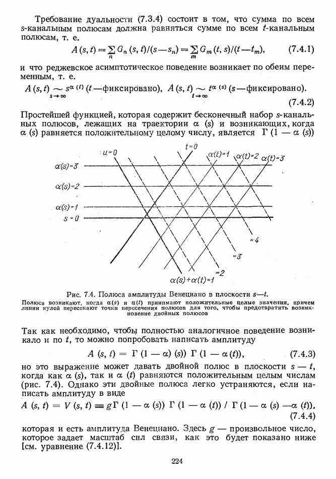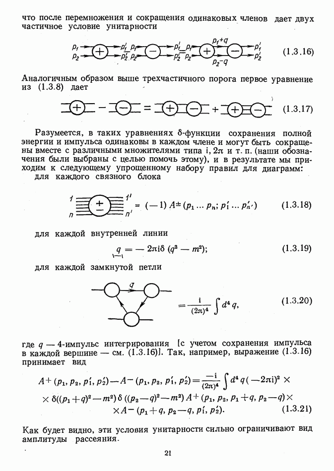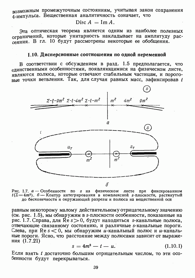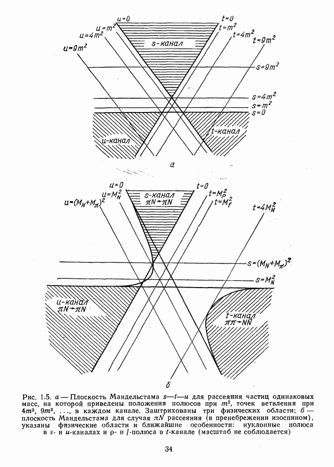 3.4. Полюса Редже в теоретико-полевой теории возмущенийКвантовая теория поля является значительно более реалистическим подходом к физике элементарных частиц, чем потенциальный. Поэтому очень важный момент всего рассмотрения — выяснение вопроса о возникновении полюсов Редже в квантовой теории поля, хотя бы в рамках теории возмущений. В квантовой теории поля амплитуды рассеяния имеют значительно более реалистическую структуру особенностей по Возможно, что первое, о чем стоит упомянуть, начиная рассмотрение структуры плоскости I в квантовой теории поля, — это то, что кроме полюсов Редже, которые позднее возникнут, появятся также особенности типа