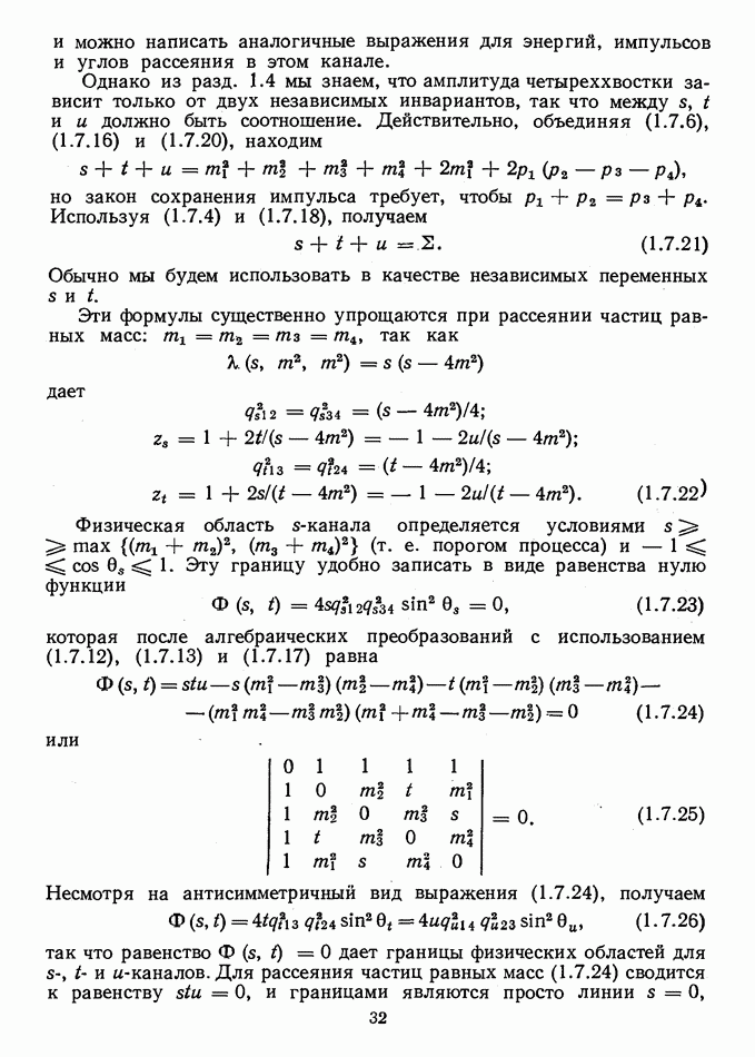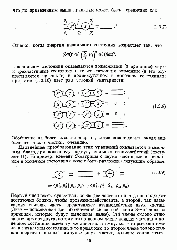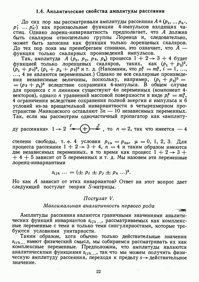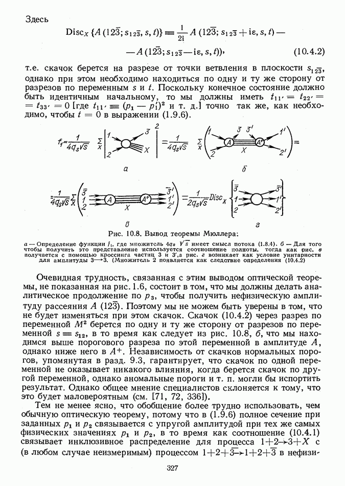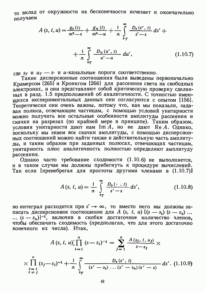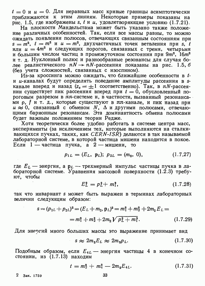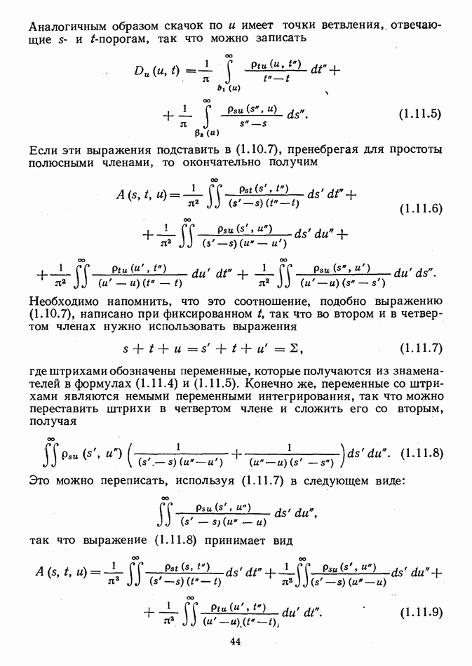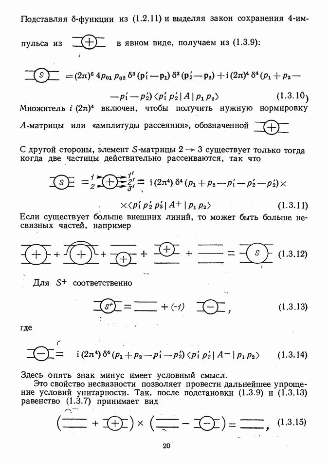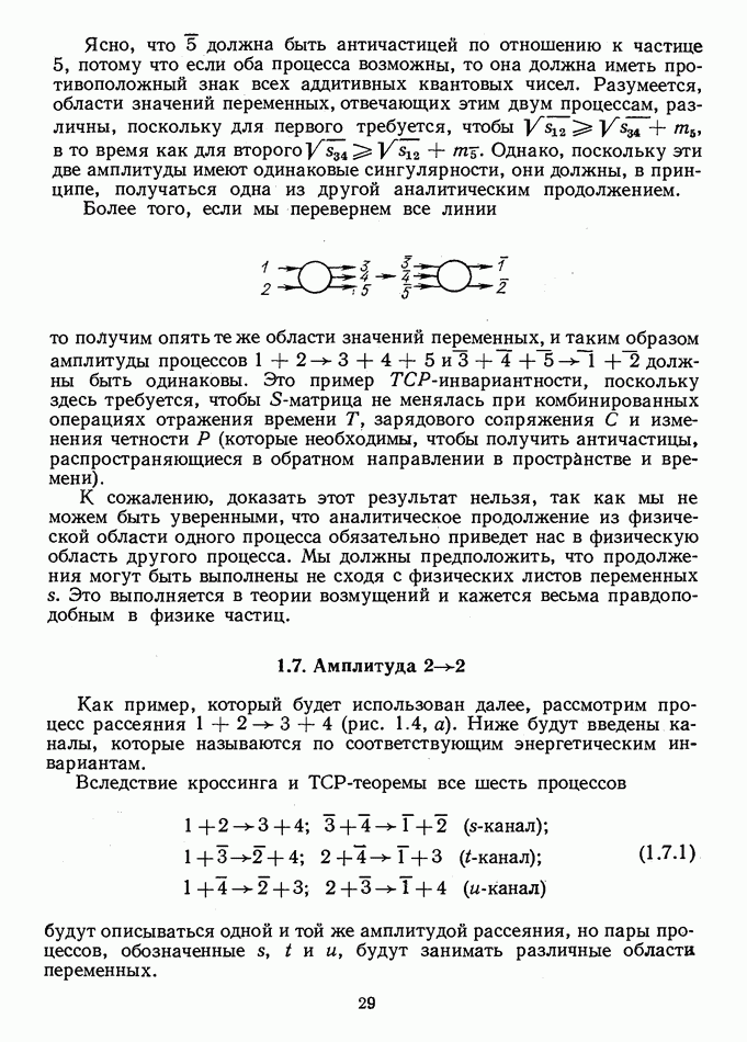3.4. Полюса Редже в теоретико-полевой теории возмущенийКвантовая теория поля является значительно более реалистическим подходом к физике элементарных частиц, чем потенциальный. Поэтому очень важный момент всего рассмотрения — выяснение вопроса о возникновении полюсов Редже в квантовой теории поля, хотя бы в рамках теории возмущений. В квантовой теории поля амплитуды рассеяния имеют значительно более реалистическую структуру особенностей по Возможно, что первое, о чем стоит упомянуть, начиная рассмотрение структуры плоскости I в квантовой теории поля, — это то, что кроме полюсов Редже, которые позднее возникнут, появятся также особенности типа