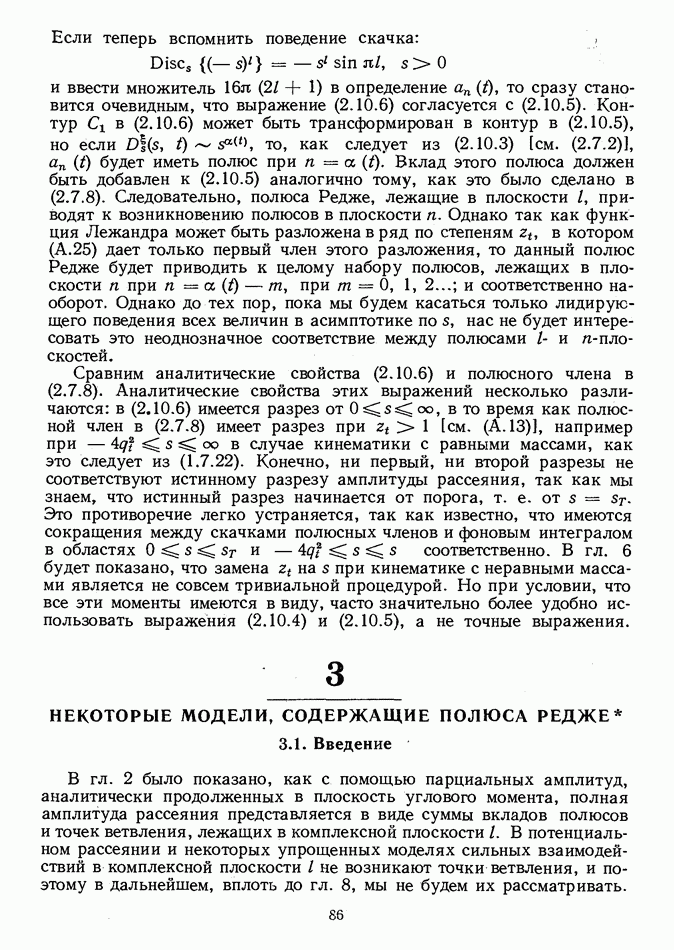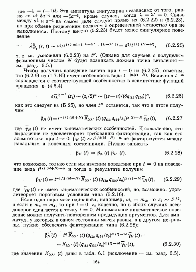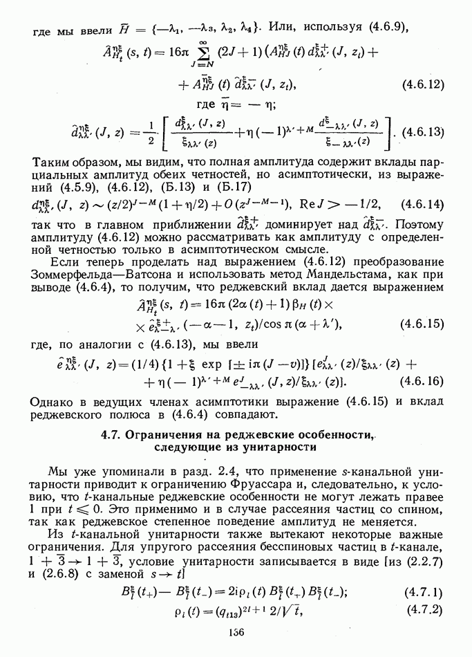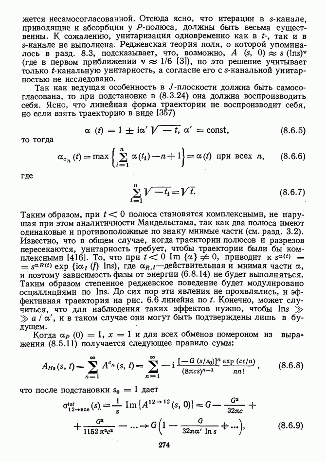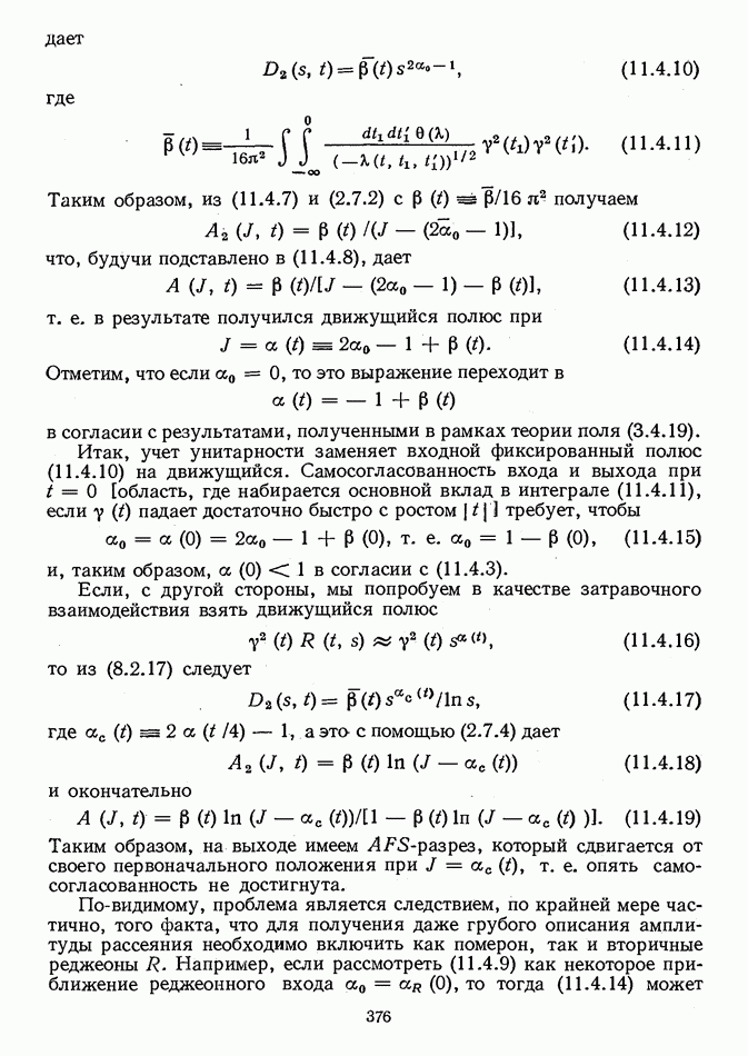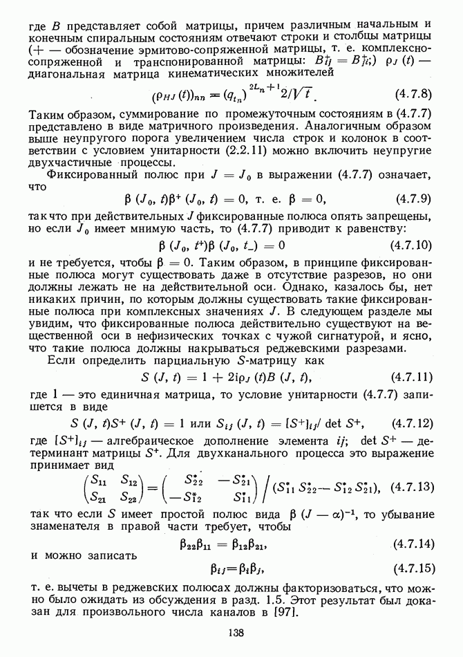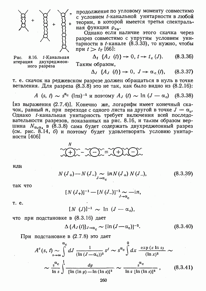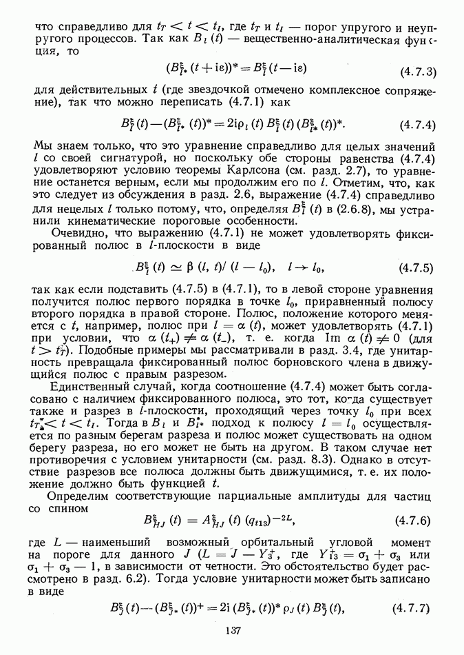 Когда этот фиксированный полюс вносится в условие унитарности, то он сразу реджезуется. При парциальная амплитуда должна стремиться к пределу, даваемому выражением (3.4.14), и удовлетворять соотношению унитарности (2.2.8), которое приводит, если написать его в виде ряда по степеням