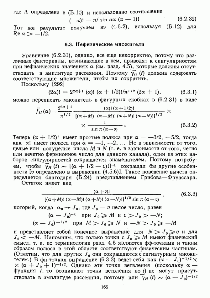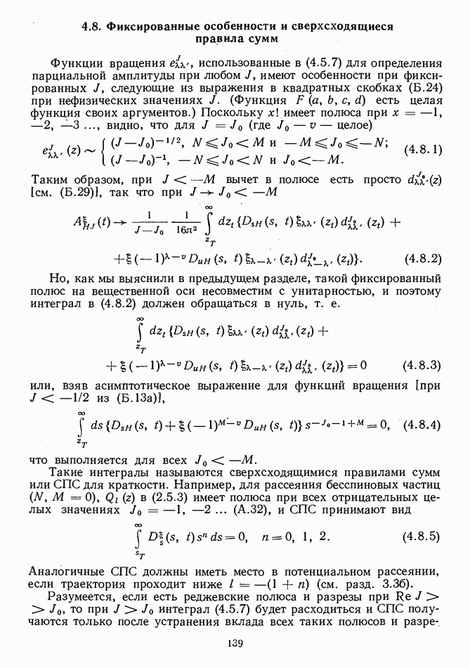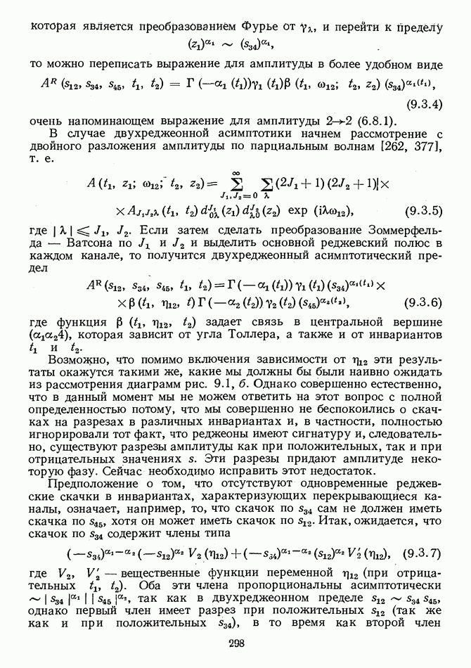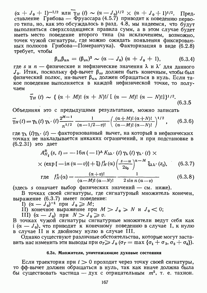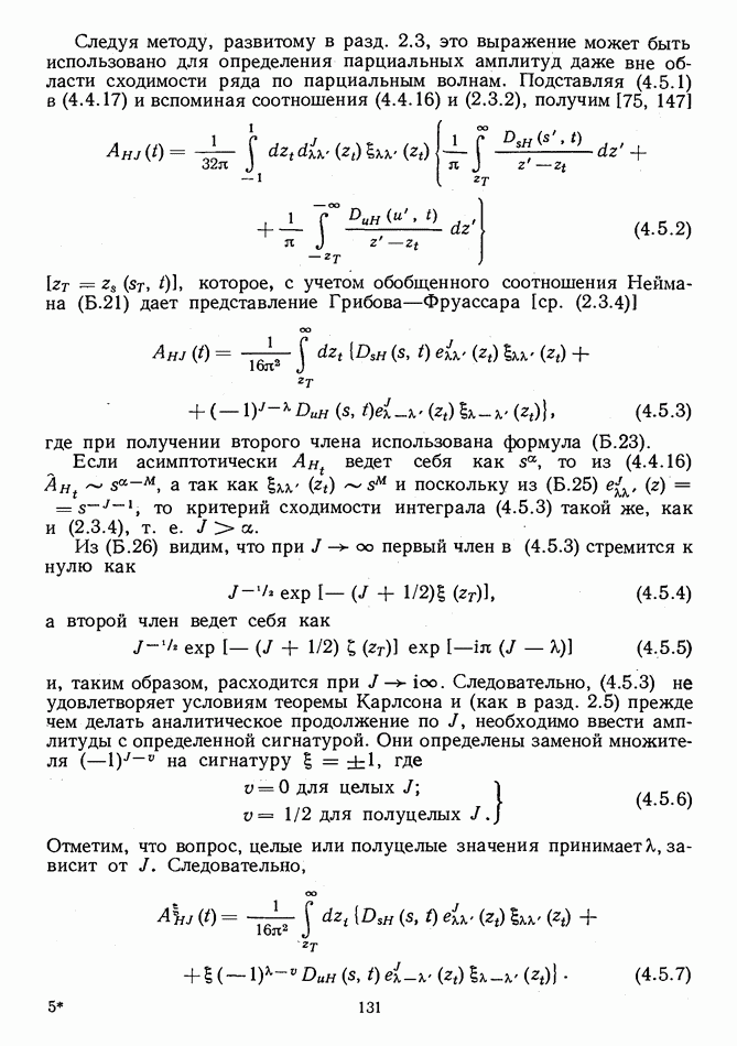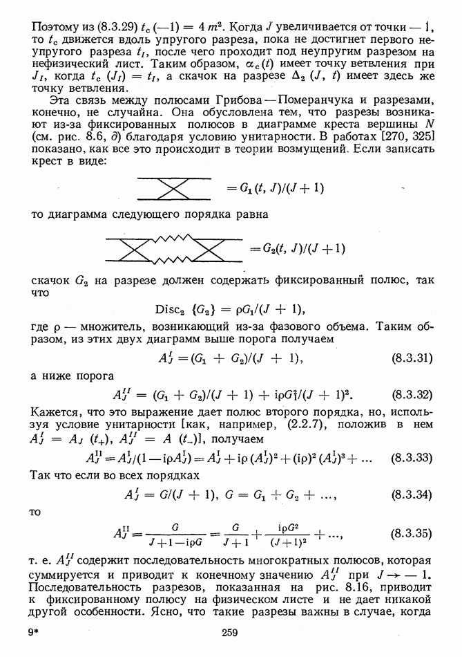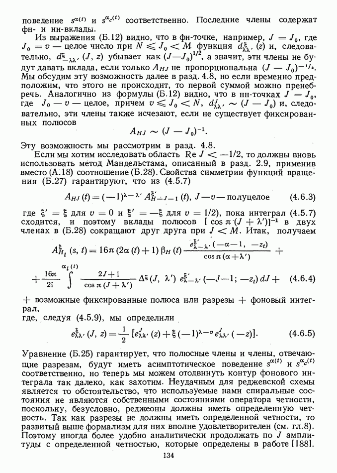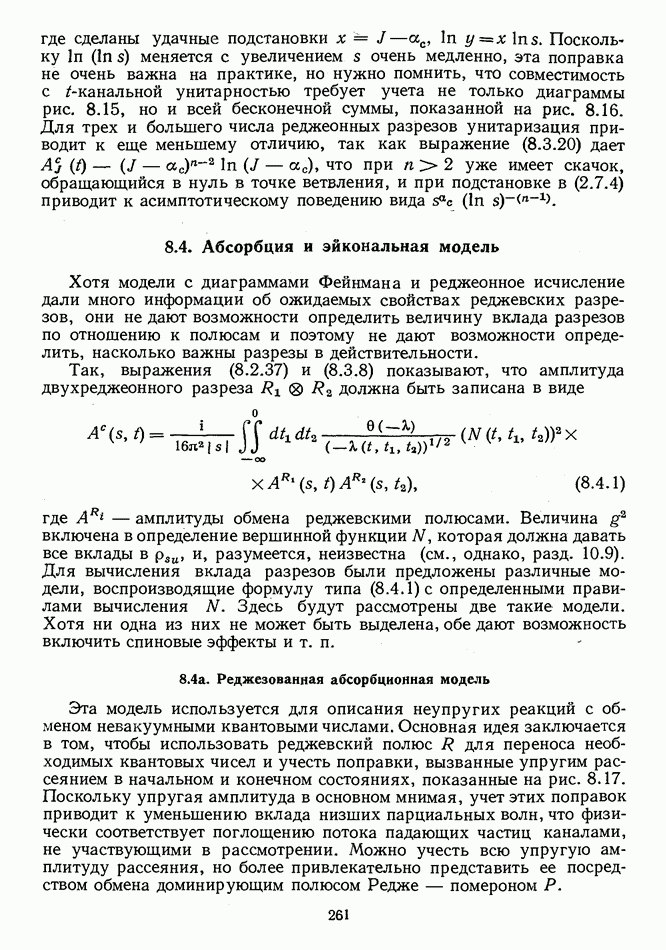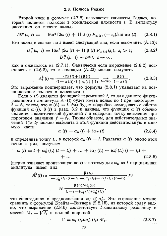 Когда этот фиксированный полюс вносится в условие унитарности, то он сразу реджезуется. При парциальная амплитуда должна стремиться к пределу, даваемому выражением (3.4.14), и удовлетворять соотношению унитарности (2.2.8), которое приводит, если написать его в виде ряда по степеням