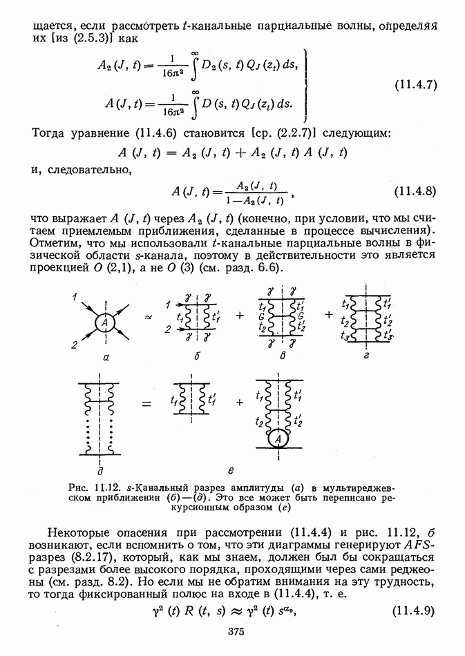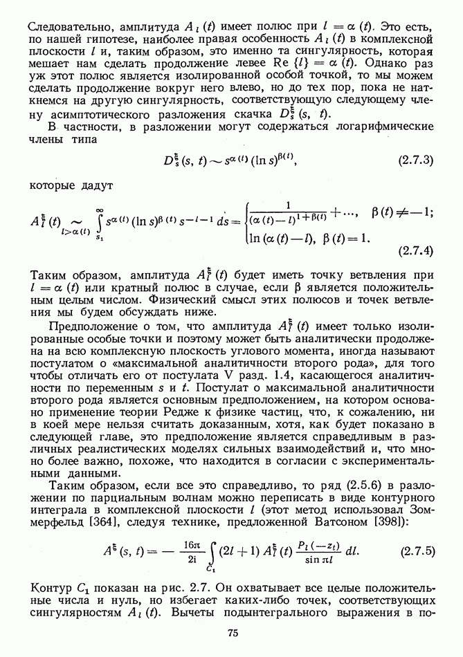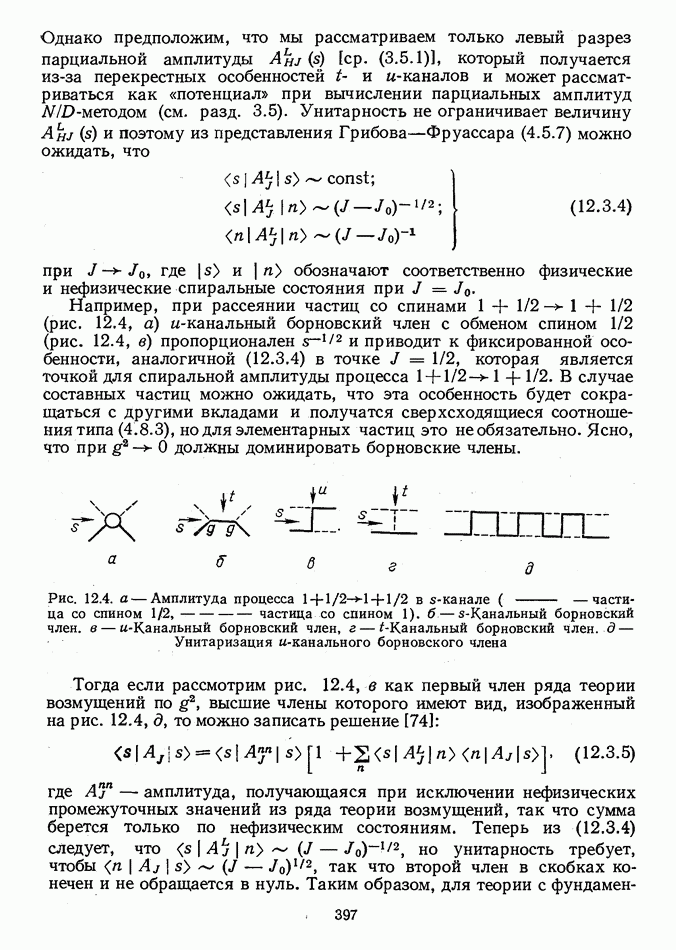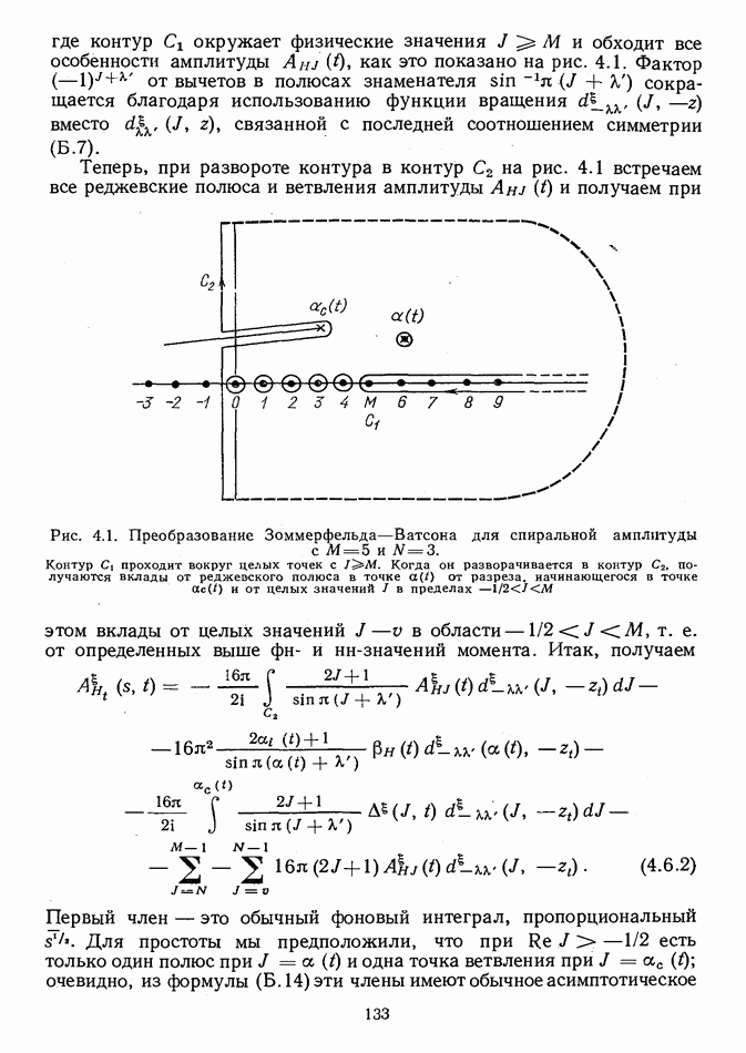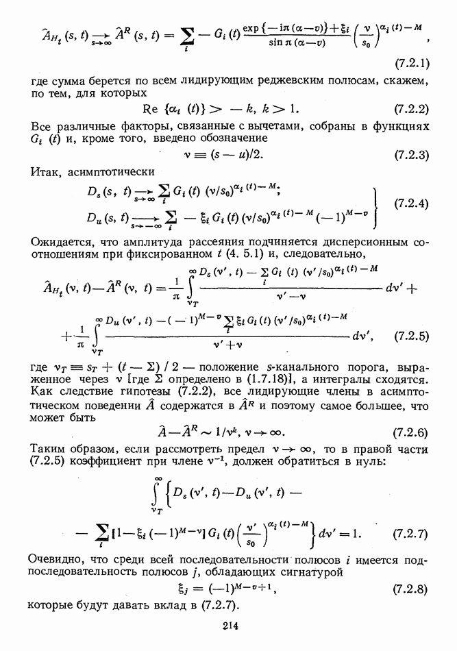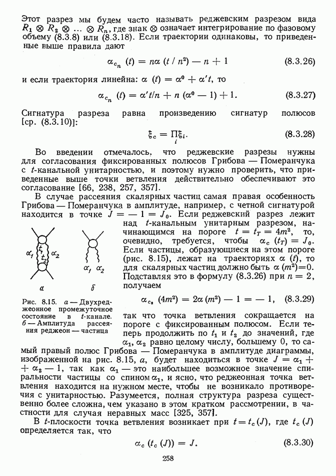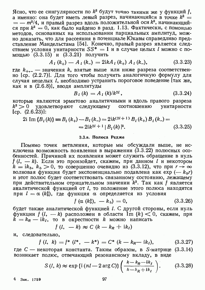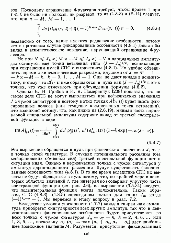 Когда этот фиксированный полюс вносится в условие унитарности, то он сразу реджезуется. При парциальная амплитуда должна стремиться к пределу, даваемому выражением (3.4.14), и удовлетворять соотношению унитарности (2.2.8), которое приводит, если написать его в виде ряда по степеням