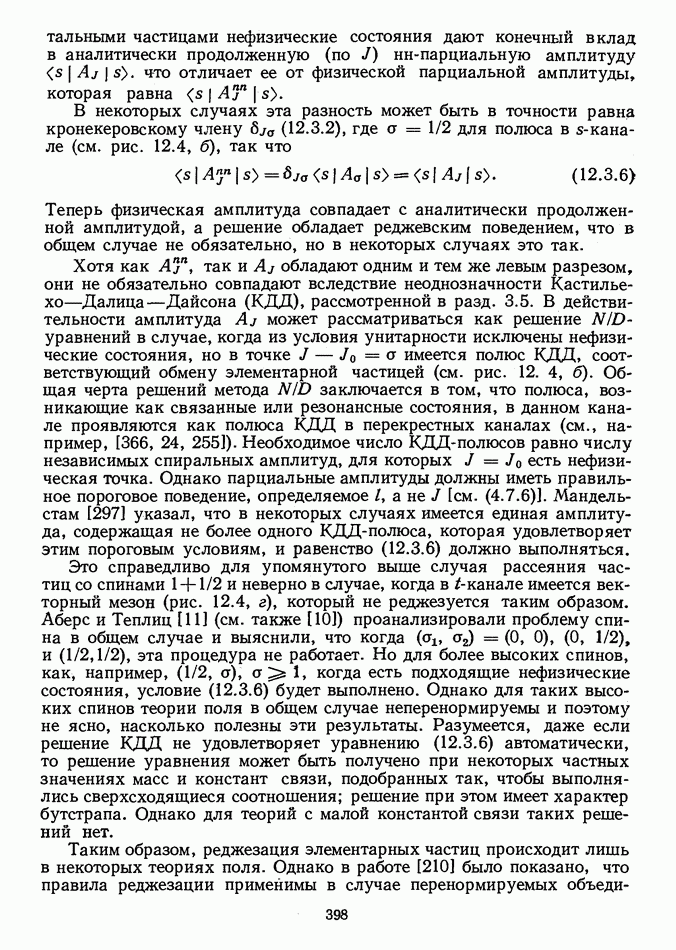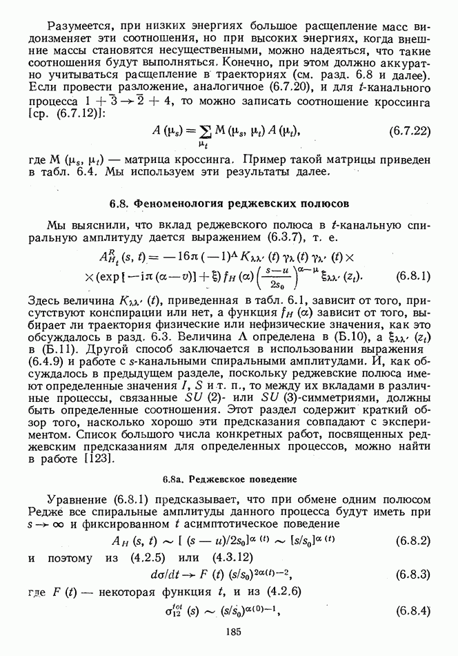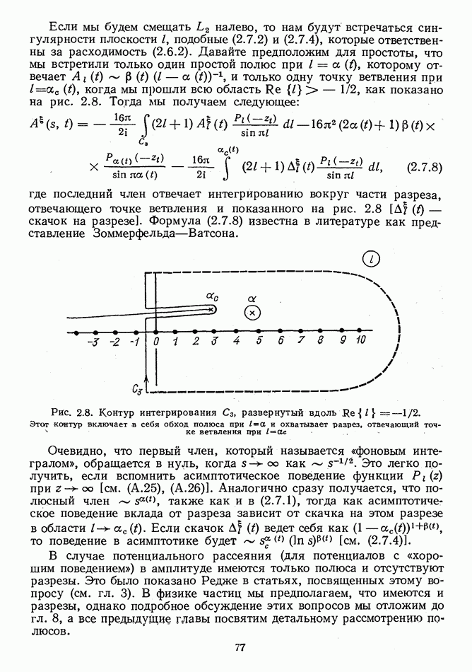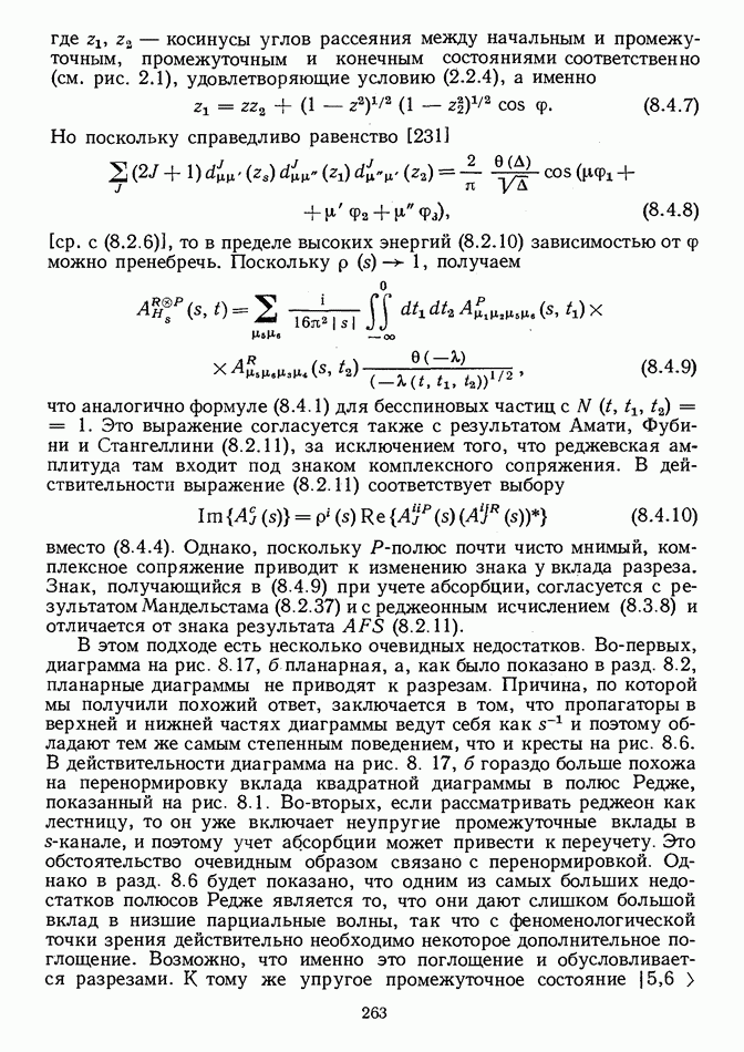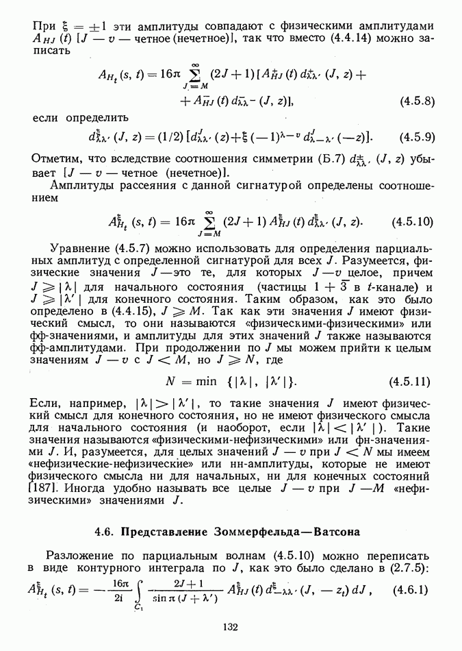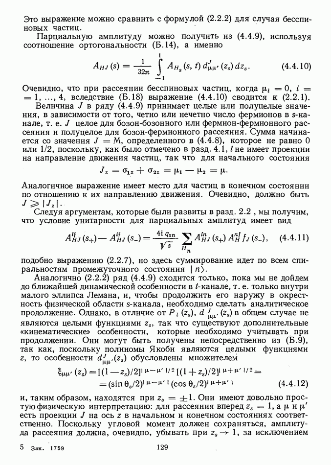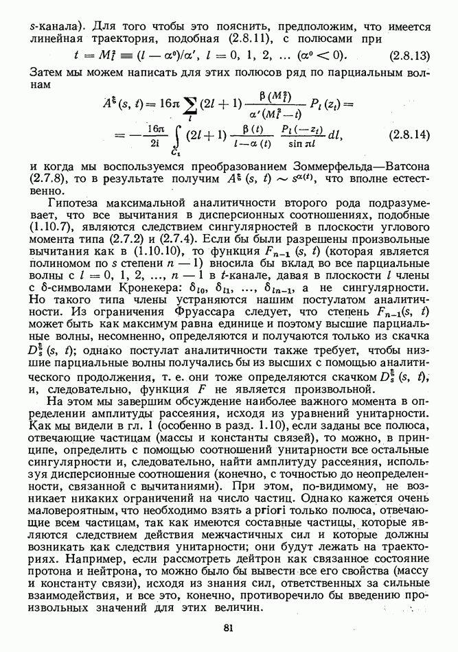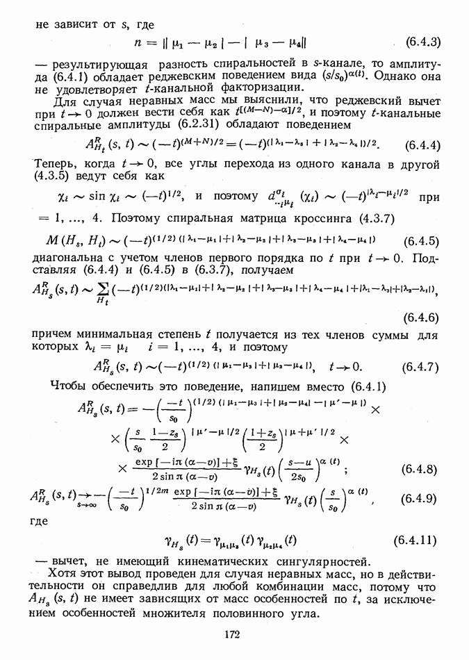 Когда этот фиксированный полюс вносится в условие унитарности, то он сразу реджезуется. При парциальная амплитуда должна стремиться к пределу, даваемому выражением (3.4.14), и удовлетворять соотношению унитарности (2.2.8), которое приводит, если написать его в виде ряда по степеням