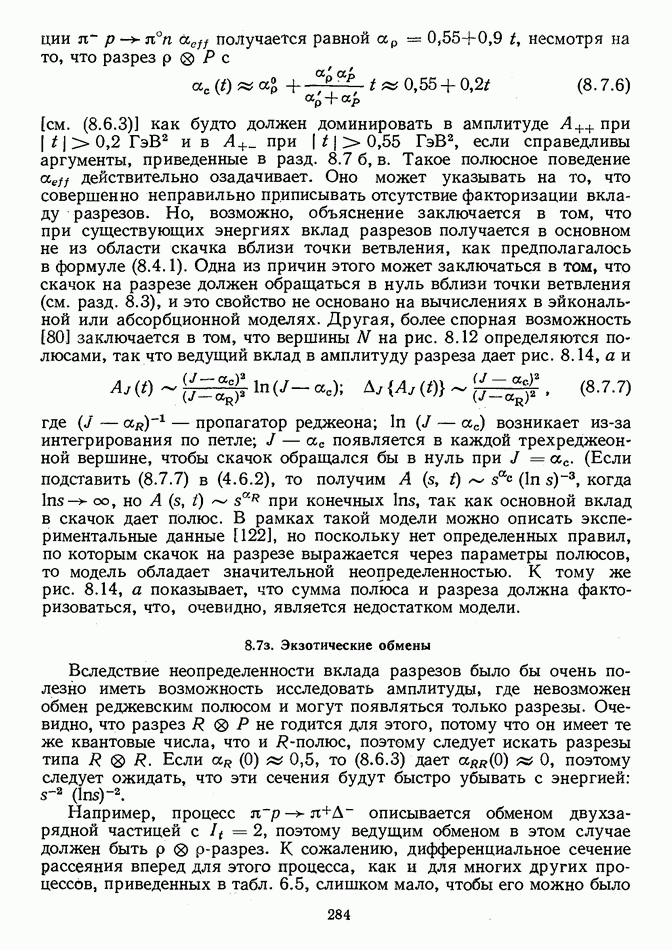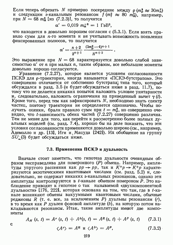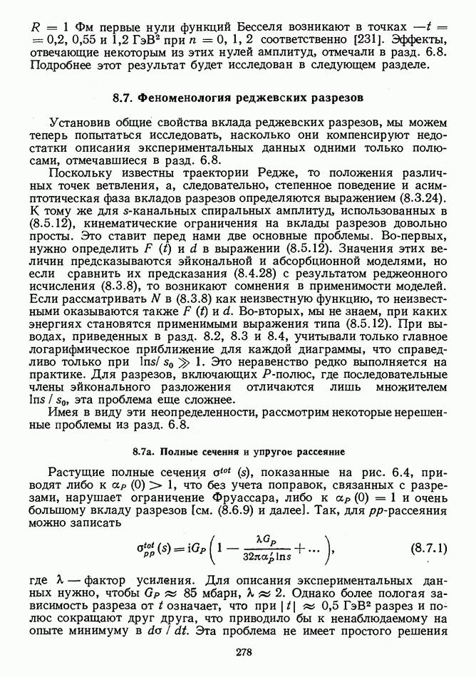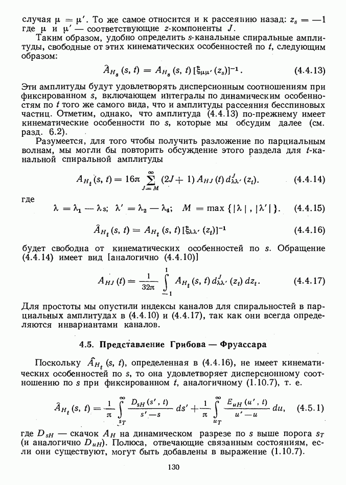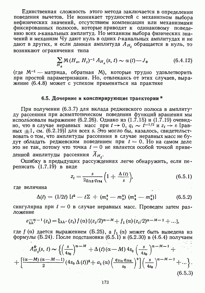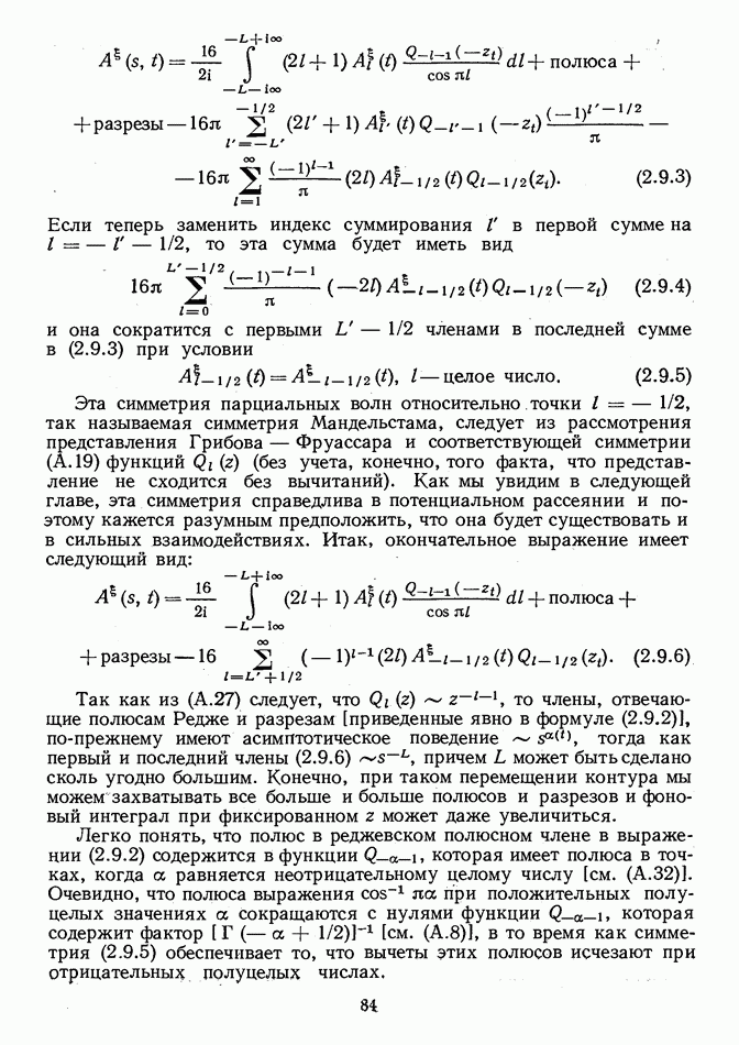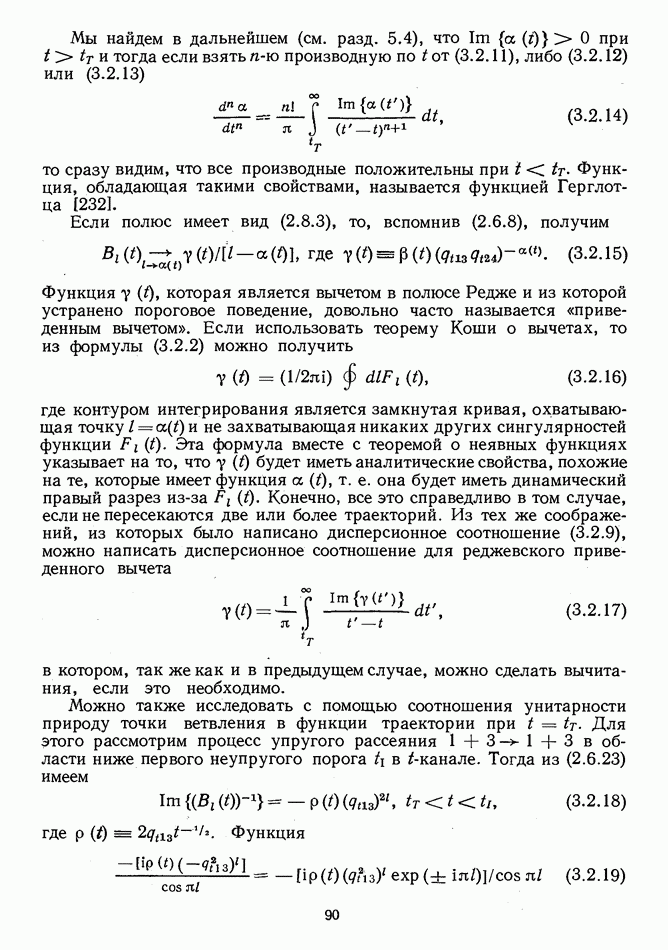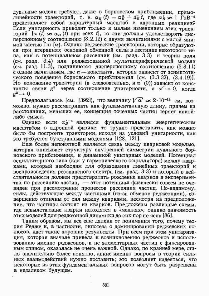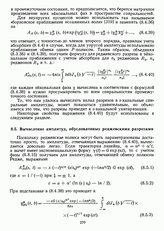 Когда этот фиксированный полюс вносится в условие унитарности, то он сразу реджезуется. При парциальная амплитуда должна стремиться к пределу, даваемому выражением (3.4.14), и удовлетворять соотношению унитарности (2.2.8), которое приводит, если написать его в виде ряда по степеням