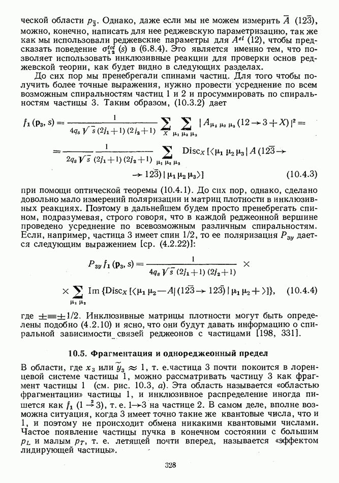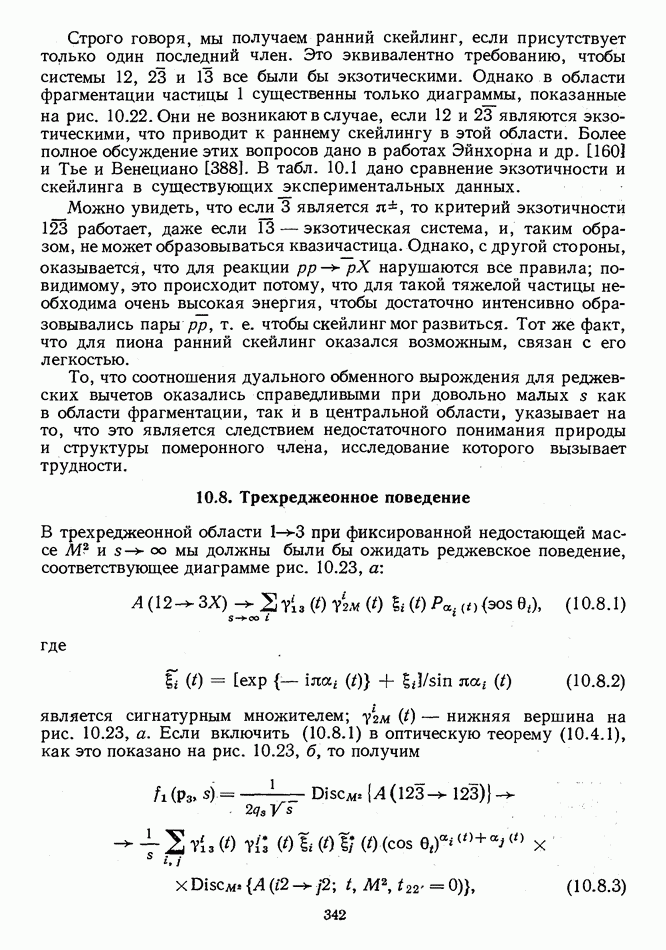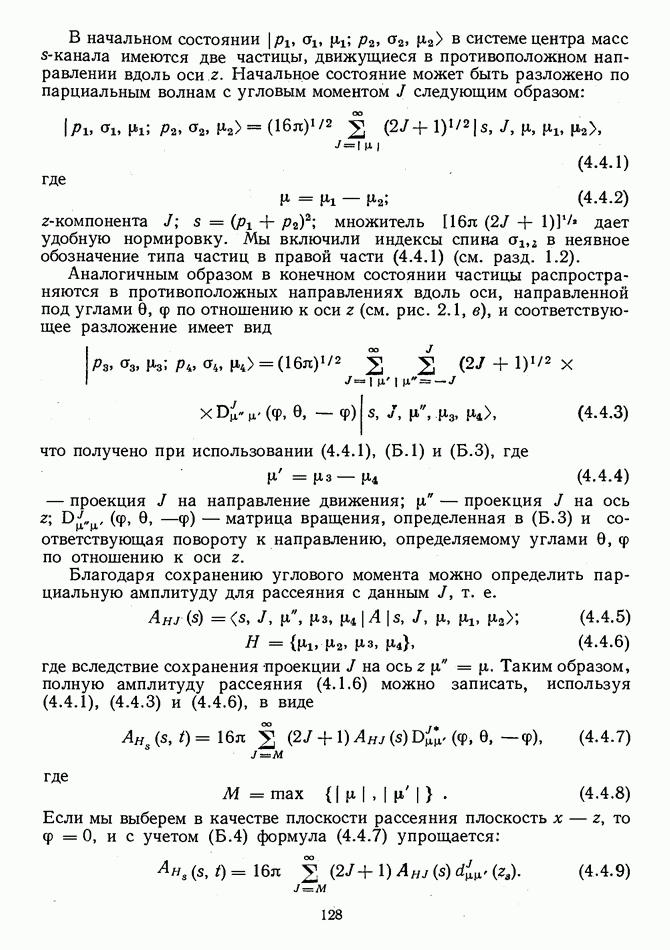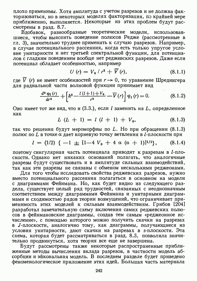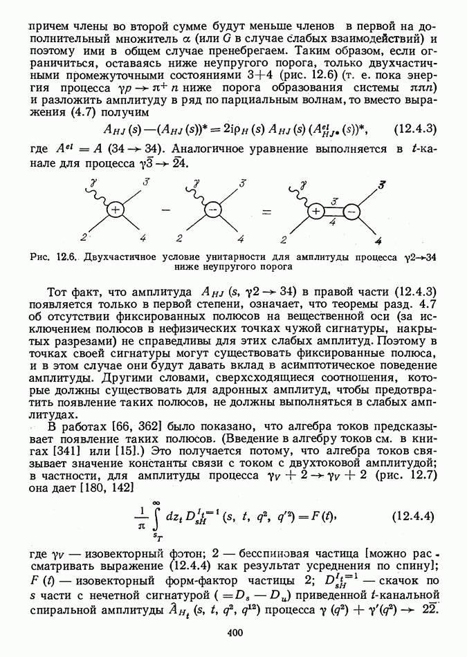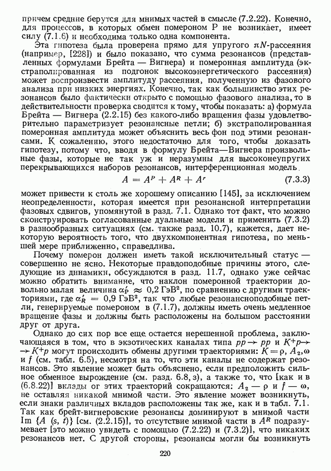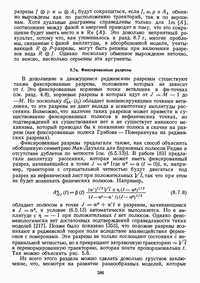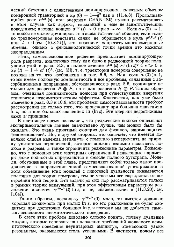 Когда этот фиксированный полюс вносится в условие унитарности, то он сразу реджезуется. При парциальная амплитуда должна стремиться к пределу, даваемому выражением (3.4.14), и удовлетворять соотношению унитарности (2.2.8), которое приводит, если написать его в виде ряда по степеням