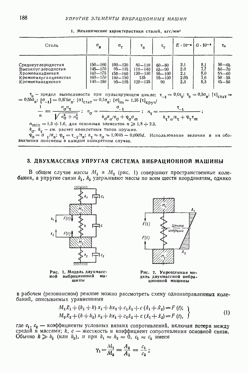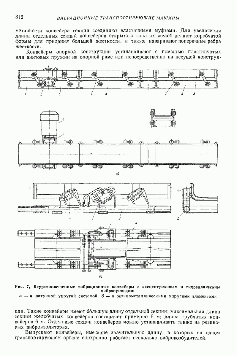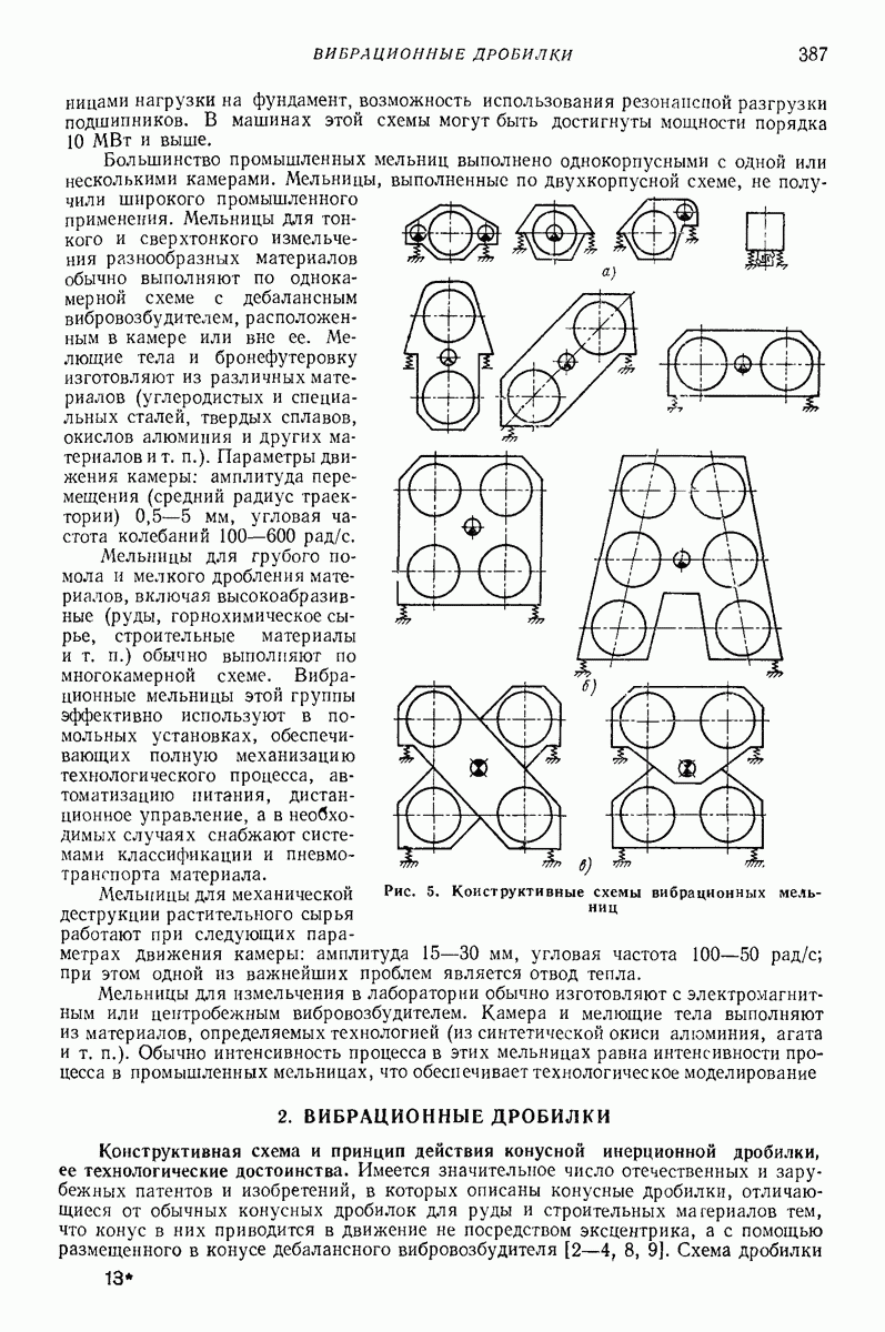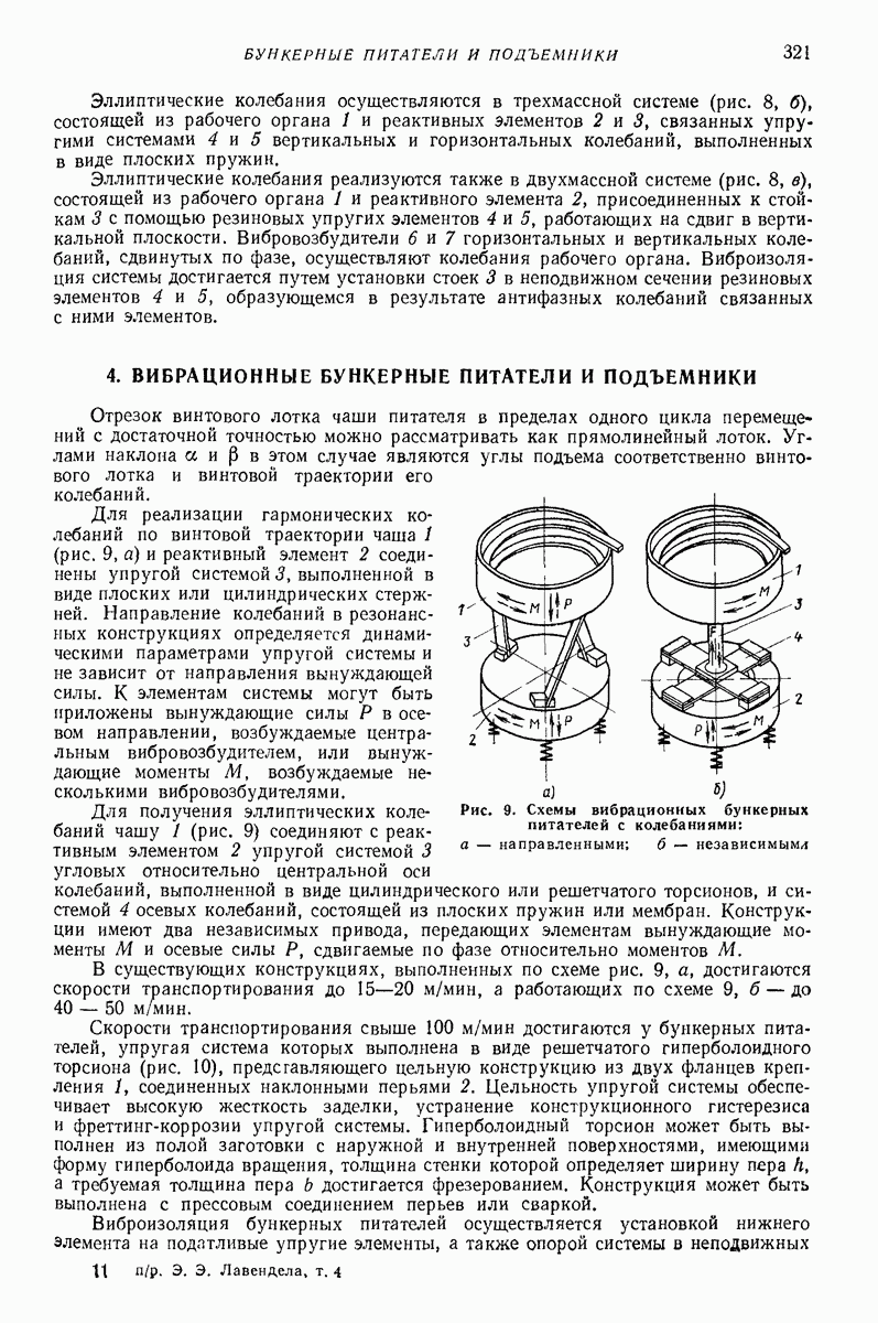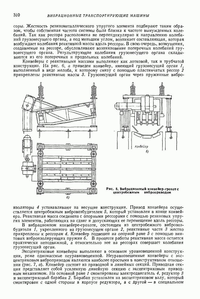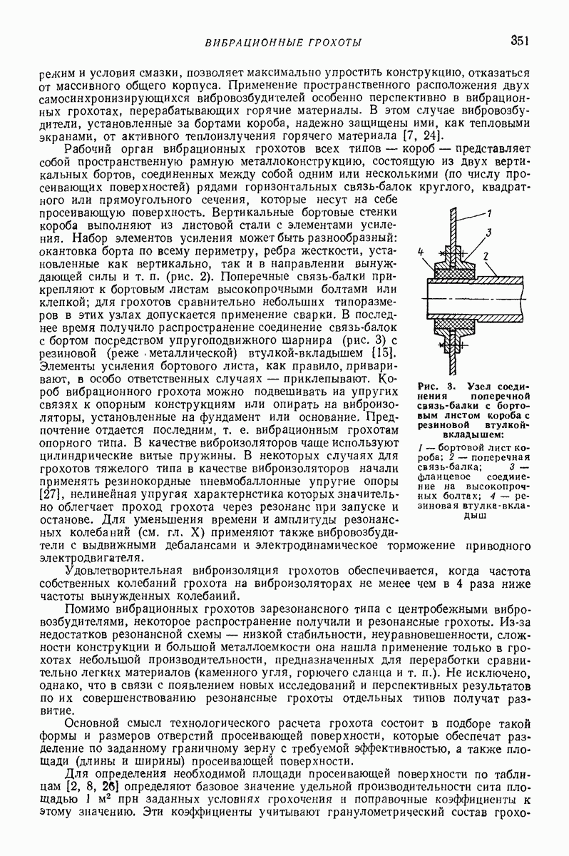 4. ОСОБЕННОСТИ ПРОЕКТИРОВАНИЯ МАШИНОдним из непременных условий успешной разработки и внедрения вибрационной машины является достаточно глубокая изученность соответствующего вибрационного процесса При этом должны быть известны если не оптимальные, то хотя бы приемлемые характер и параметры колебаний, обеспечивающие такое протекание процесса, при котором могут быть получены ощутимые технологические преимущества. При выборе параметров вибрационной машины должны приниматься во внимание пиковые и аварийные нагрузки, а также нагрузки в переходных нестационарных режимах Компоновка вибрационной машины в производственном помещении в совокупности с питающими, подводящими, отводящими и ограждающими устройствами должна допускать возможность кратковременных колебаний машины на внброизолирующих опорах с амплитудами, в несколько раз превышающими номинальные амплитуды колебаний в установившемся режиме (см гл X) В тех случаях, когда обрабатываемая среда или объект имеют массу, сопоставимую с массой рабочего органа машины, либо обладают значительным энергопоглощением, их необходимо тем или иным способом учитывать при анализе динамической схемы машины и расчете параметров колебаний [2, 11, 13, 14] Особенности проектирования рабочих органов машин. Рабочий орган вибрационной машины является узлом, который непосредственно передает вибрационное воздействие вызванное вибровозбудителями, обрабатываемой среде или объекту Форма и размеры рабочего органа определяются главным образом характером выполняемого машиной технологического процесса и заданной пронзьодительностью В общем случае рабочий орган представляет собой плоскую (деки концентрационных столов, сепараторов) или пространственную (коробы грохотов лотки конвейеров и питателей) металлоконструкции, либо массивное тело (бойки ударно вибрационных машин и т. п.) произвольной формы Основным требованием к конструкциям рабочих органов вибрационных машин (помимо чисто технологических) являются достаточная жесткость и уровень выносливости При достаточной жесткости обеспечиваются колебания рабочего органа с частотой вынуждающей силы как единого твердого тела и гарантируется отсутствие существенных дополнительных упругих колебаний рабочего органа, отдельных его элементов или участков (см также гл VII) Такие дополнительные упругие колебания рабочего органа возникают, как правило, на частоте вынуждающей силы или на кратных ей Вызывая дополнительные воздействия на обрабатываемую среду или объект, упругие колебания рабочего органа чаще нарушают нормальный ход технологического процесса и приводят, как правило, к появлению в элементах рабочего органа дополнительных знакопеременных напряжений Обычно необходимая жесткость рабочего органа достигается правильным выбором геометрических форм и размеров элементов, введением в конструкцию специальных элементов жесткости ребер, окантовок, поясов, распорок Число разъемных соединений должно быть по возможности минимальным Зачастую стремление сделать рабочий орган вибрационной машины универсальным сборно разборным (блочным) для быстрой переналадки или для унификации однотипных машин нескольких типоразмеров приводит к появлению большого числа разъемных соединений, в этих случаях жесткость рабочего органа существ